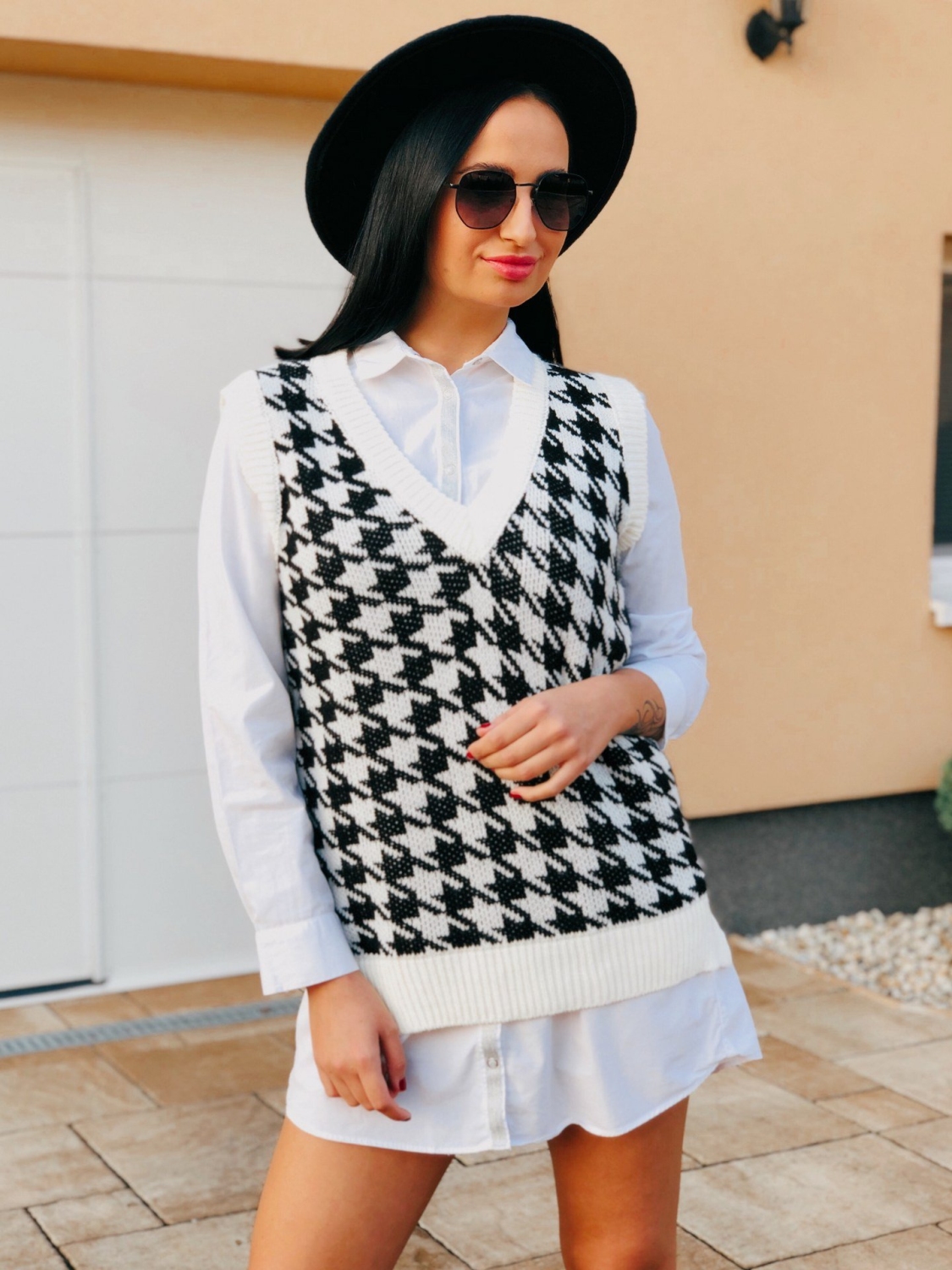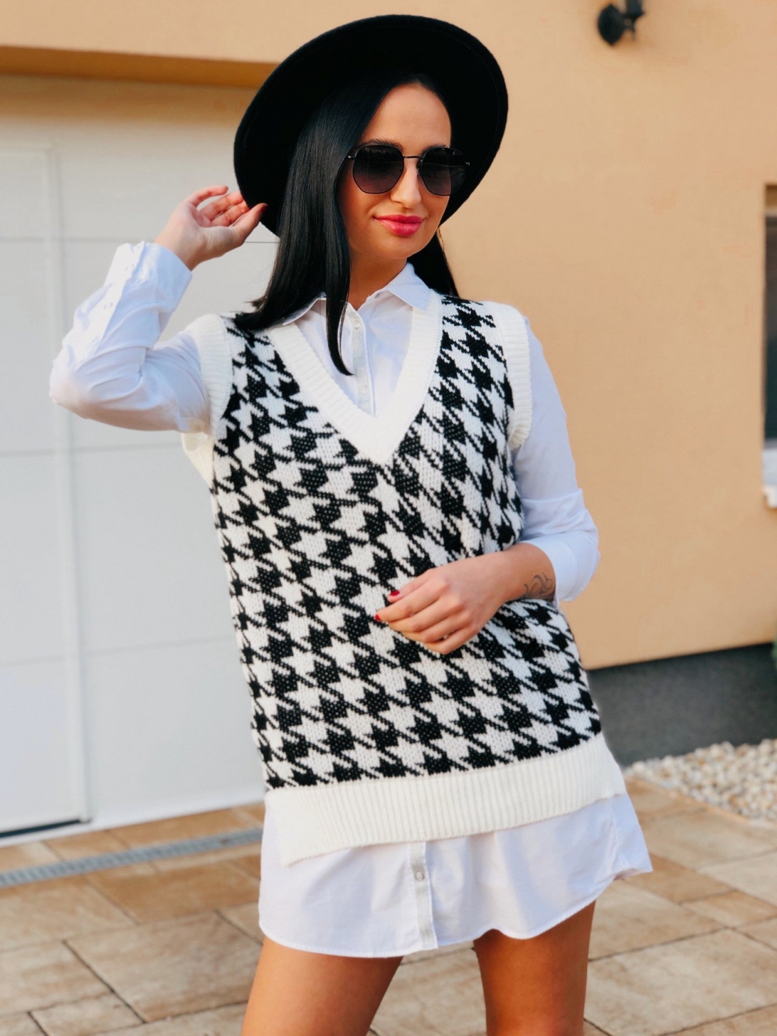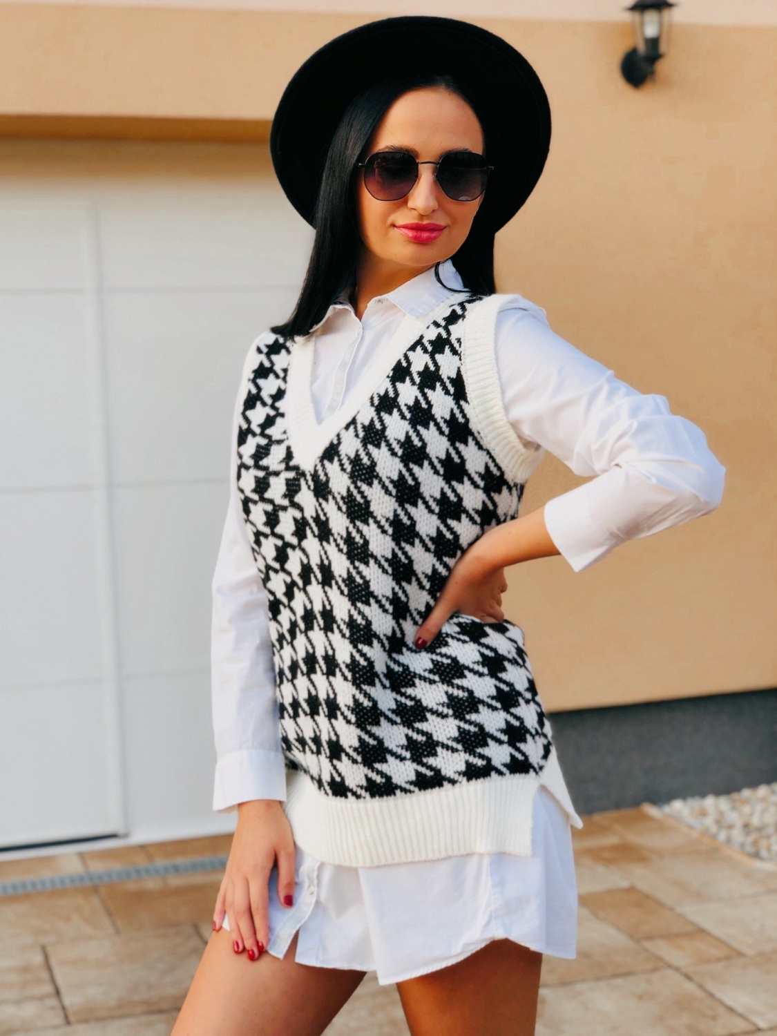 Dámska pletená vesta môže byť vašou tajnou zbraňou. Nielen, že poskytuje dodatočnú vrstvu tepla, bez toho aby pridala veľa na objeme, ale je to kúsok, ktorý si naozaj zaslúži predponu „univerzálny“. Noste ju k roláku a džínsom na jeseň alebo ku koženej sukni v zime, na jar bude skvelá k tričku s lodičkovým výstrihom a boyfriend džínsom. Pletená vesta bude vašim stálym spoločníkom. Modelka je vysoká 175 cm a oblečenú má veľkosť UNI.