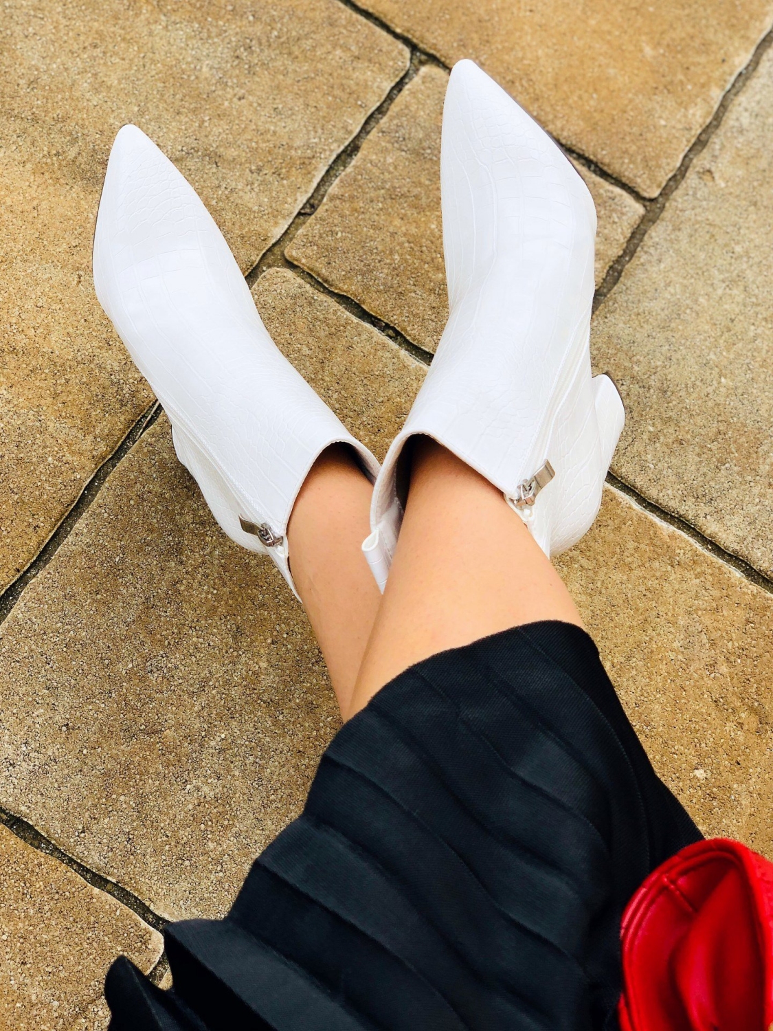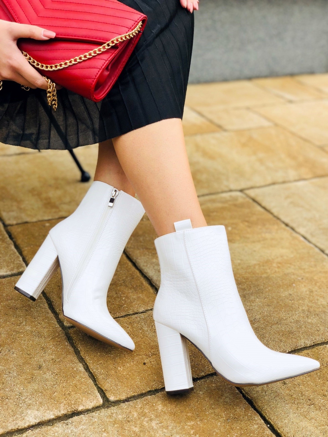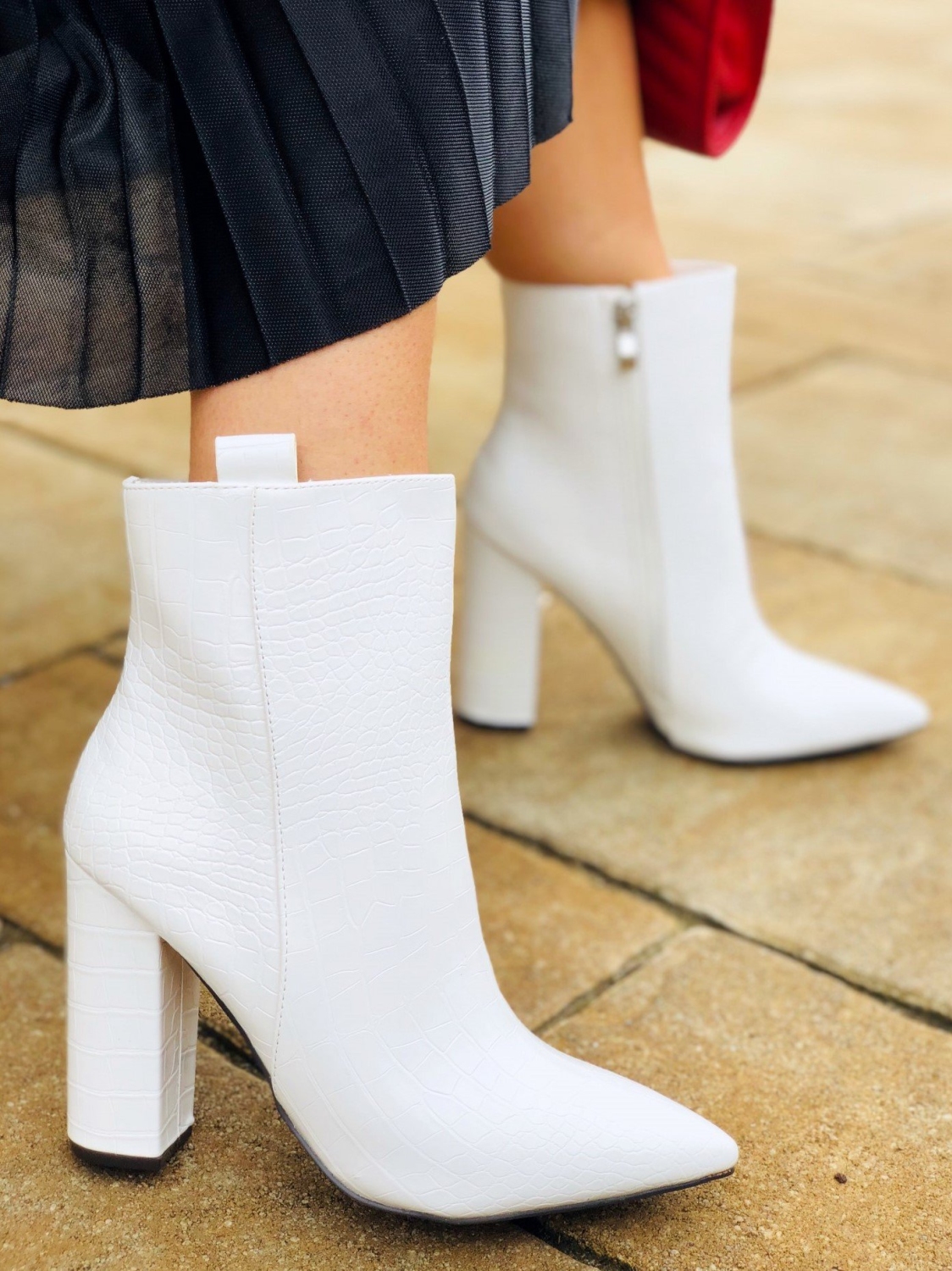 Dámske členkové čižmy v bielej farbe s hadím vzorom. Vďaka elegantnému strihu a hrubému 11 cm opätku budete vyzerať veľmi štýlovo. Vnútro má zateplené a zapínanie je na zips. Tento skvelý kúsok túto sezónu nesmie chýbať vo Vašom šatníku. Trendový model na každodenné nosenie. Môžete ich kombinovať podľa vlastného vkusu, či už s nohavicami alebo aj k sukni. Zapínanie zboku na zips. (Ak sa rozhodujete medzi dvoma veľkosťami, zvoľte si väčšiu).