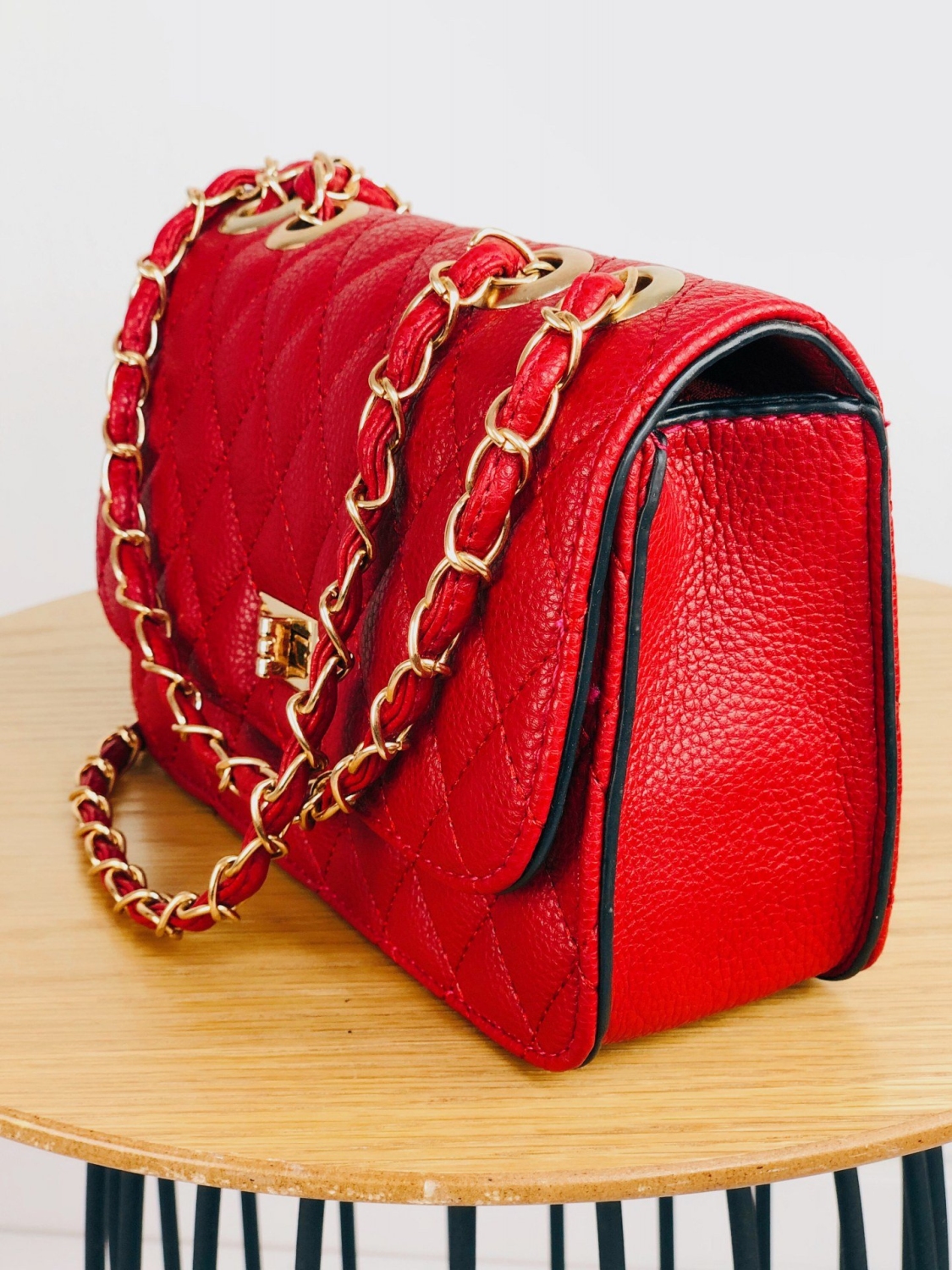 Dámska kabelka, ktorá je štýlovým trendy kúskom. V červenej farbe si ju rozhodne zamilujete a stane sa Vaším obľúbeným doplnkom ku každému outfitu. Kabelka je prepracovaná do detailov ako z vonkajšej strany, tak i zvnútra. Zapínanie vpredu na cvok. Skombinujete ju s akýmkoľvek štýlom.