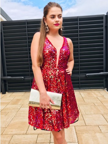 Dámske červené spoločenské šaty Mallia, ktoré z vás spravia oslnivú dámu. Šaty sú idelálne na rôzne spoločenské podujatia, keď dáma, ako vy, chce zažiariť. Veľmi exkluzívny a neopakovateľný kúsok z našej ponuky. Šaty sú z kvalitného materiálu. Zapínanie vzadu na zips. Modelka je vysoká 170 cm a má oblečenú veľkosť 38.
