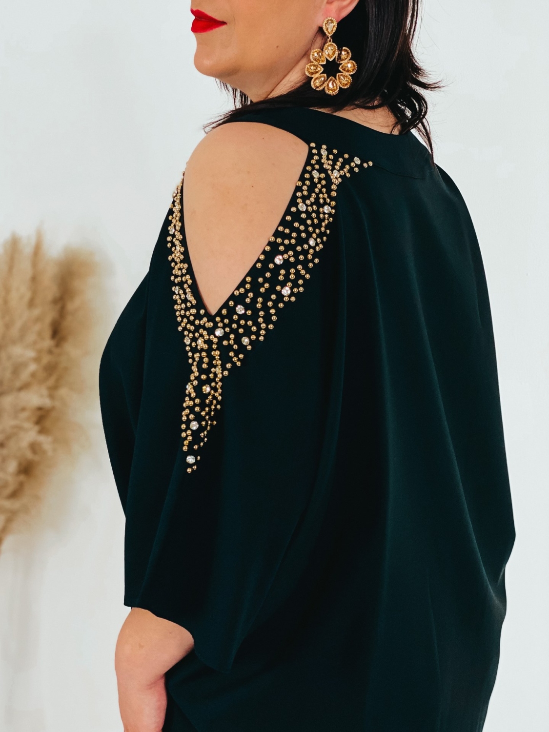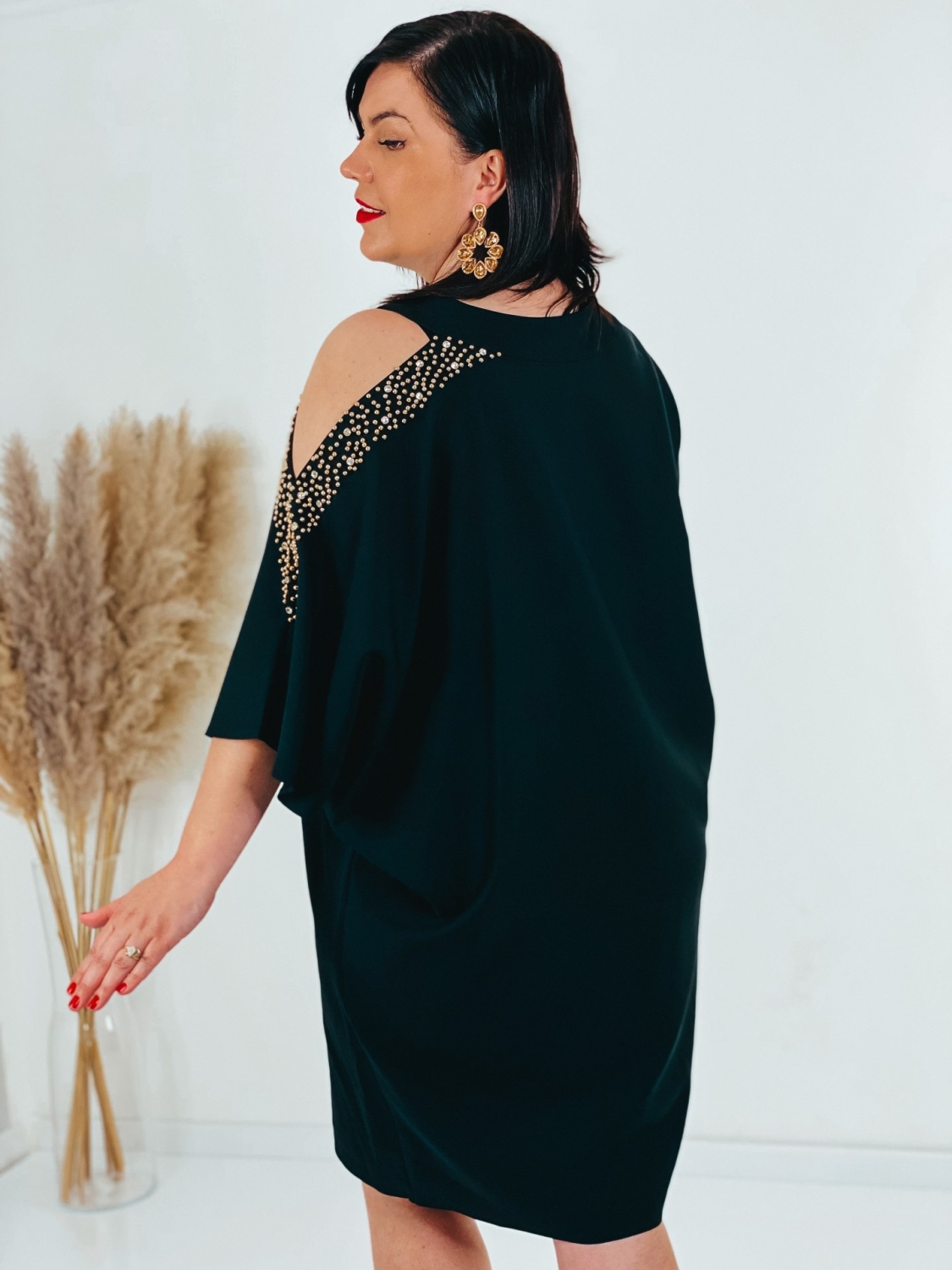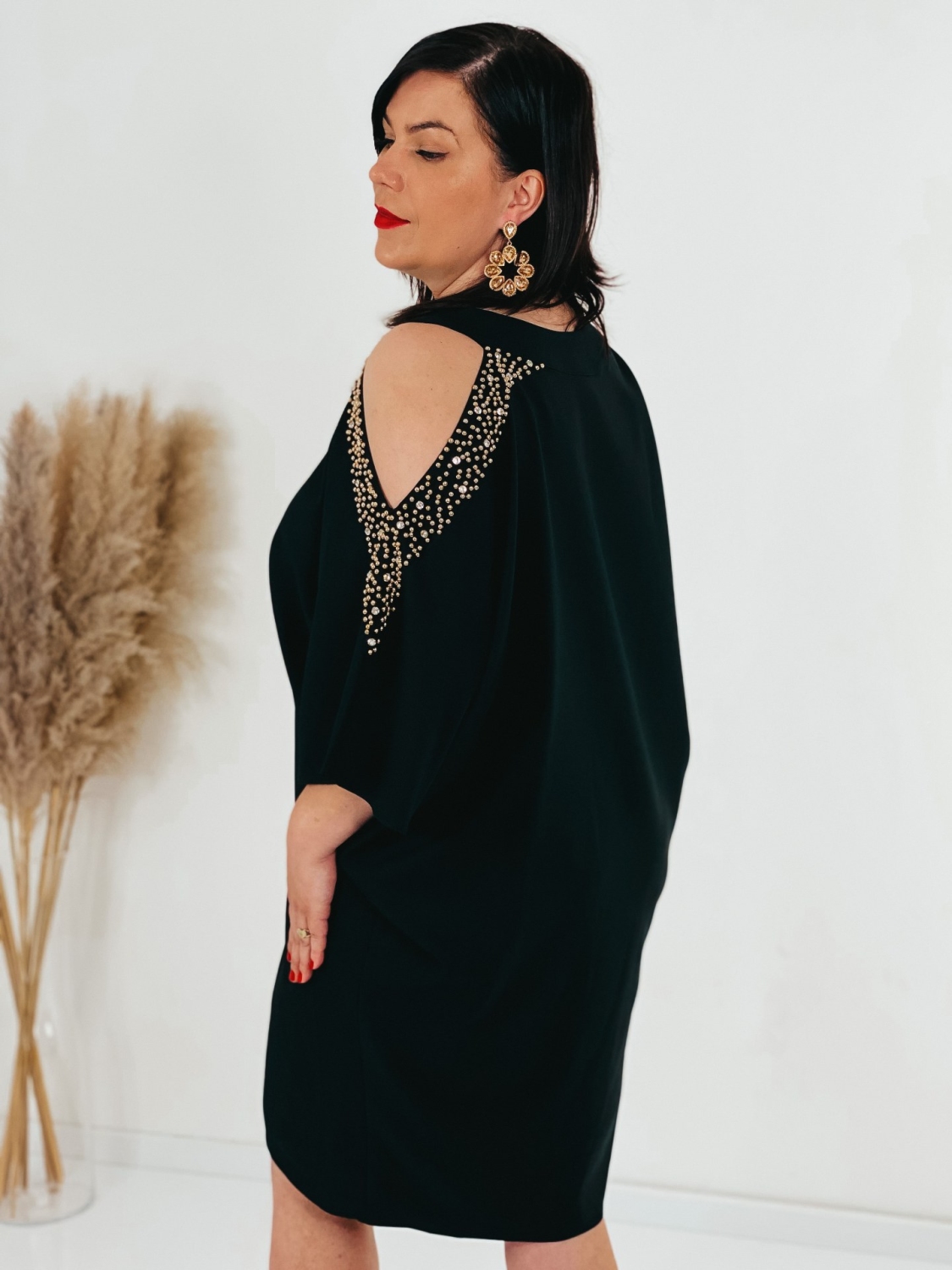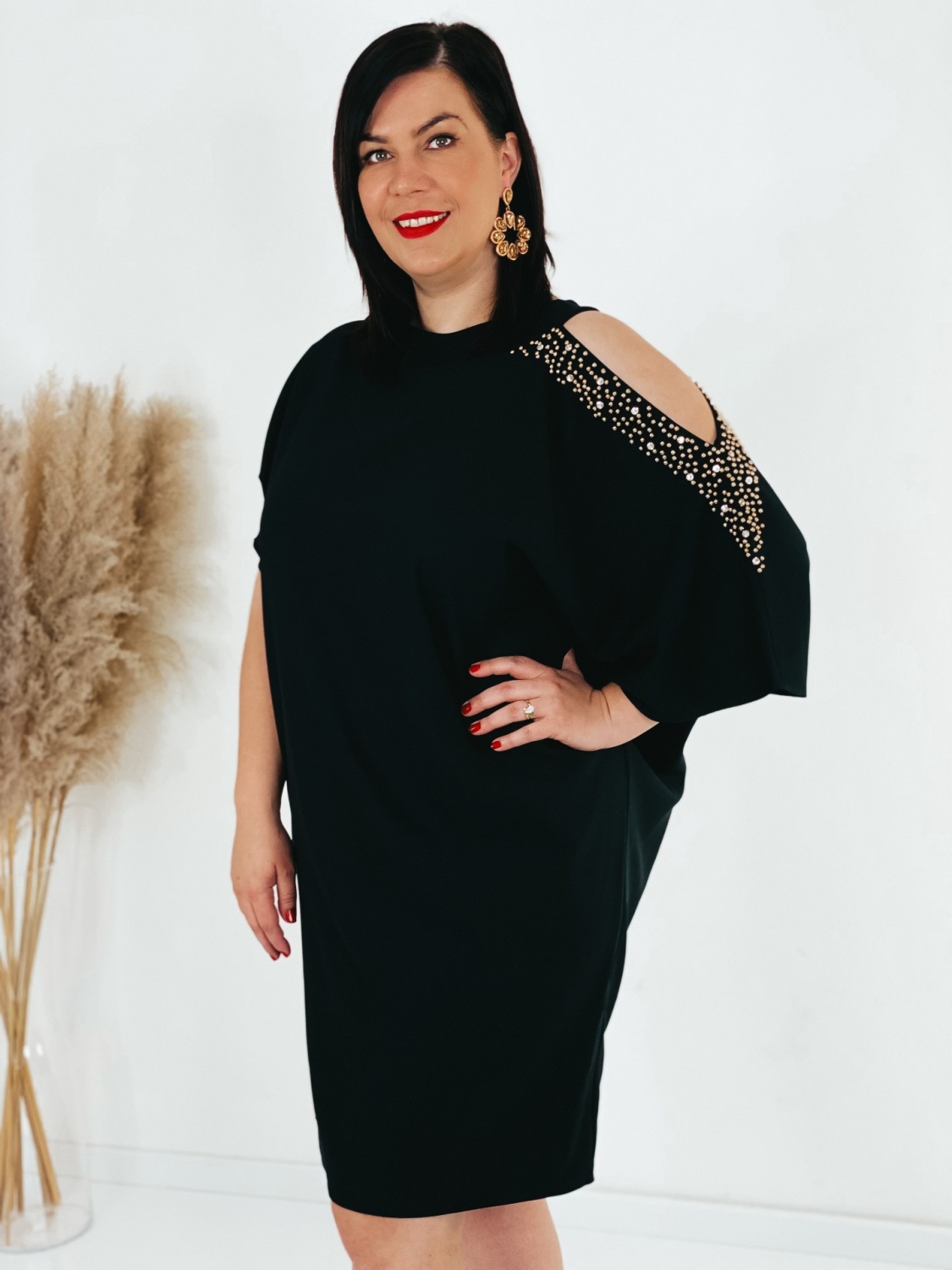 Exkluzívne krátke spoločenské šaty pre moletky s ozdobnými kamienkami na rukávoch a s vykrojením. Šaty v ktorých zažiari každá dáma. Veľmi luxusný a štýlový kúsok z našej ponuky, ktorý očarí každú z Vás a samozrejme aj ostatných okolo Vás. Vhodné sú na rôzne spoločenské udalosti ako je svadba či stužková slávnosť. Doplnené sú okruhlým výstrihom. Šaty sú bez zapínania. Šaty sú v oversize strihu. Vďaka tomu sa skvelo prispôsobia postave. Modelka meria 178 cm a má oblečenú veľkosť 44.