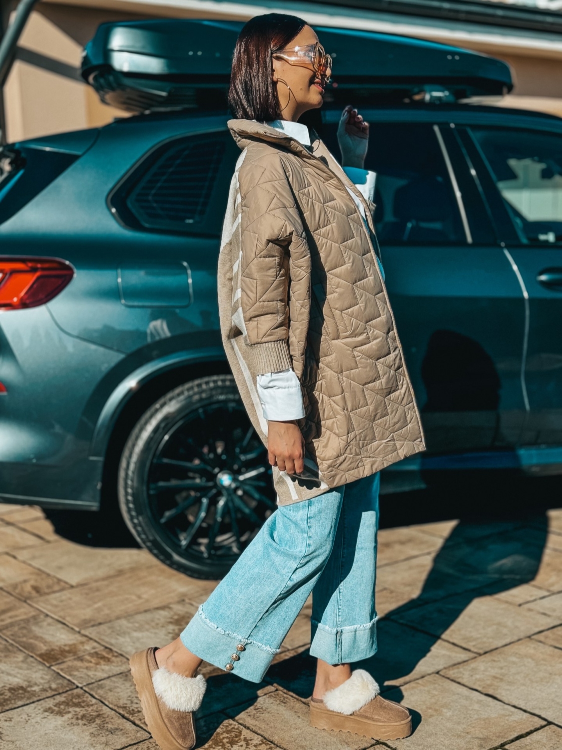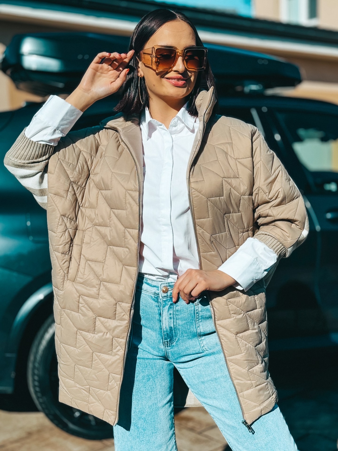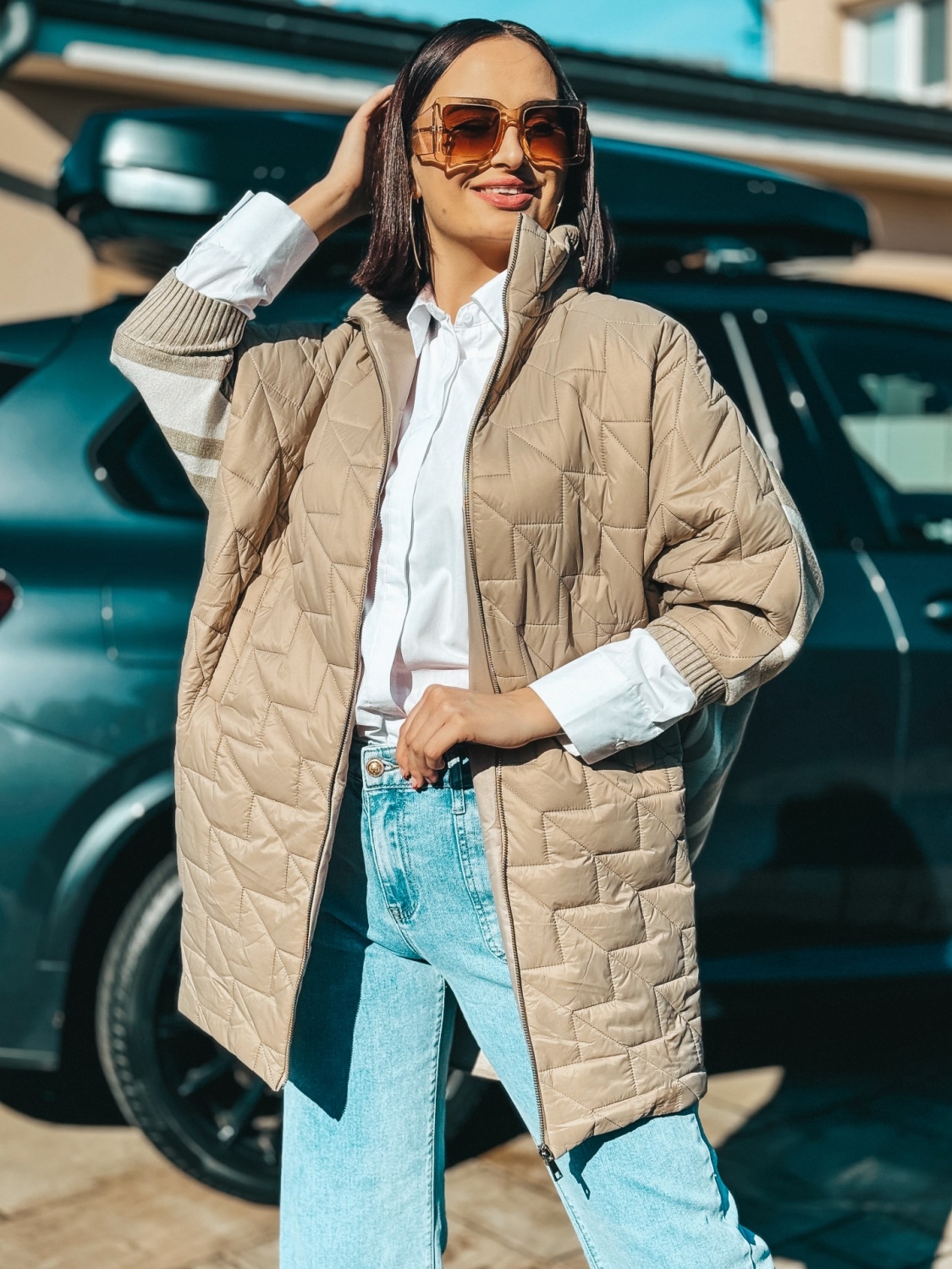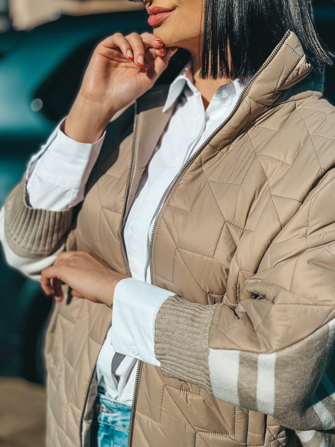Dámska prechodná bunda s trojštvrťovými rukávmi a zapínaním na zips. Zadný diel tejto bundy je vyrobený z úpletového materiálu. Bunda je doplnená vreckami na oboch stranách. Ihneď Vás ochráni počas sychravého počasia. Zaručene trendy kúsok pre každú ženu. Bezpochýb ju využijete ku rôznym outfitom nie len v jari a jeseni, ale aj počas teplejších zimných dní. Prechodná bunda je "musthave" kúsok, ktorá nesmie chýbať v žiadnom šatníku. Bunda pôsobí nadčasovo a žensky, preto dodá Vášmu outfitu ten správny šmrnc. Modelka je vysoká 175 cm a oblečenú má veľkosť S/M.