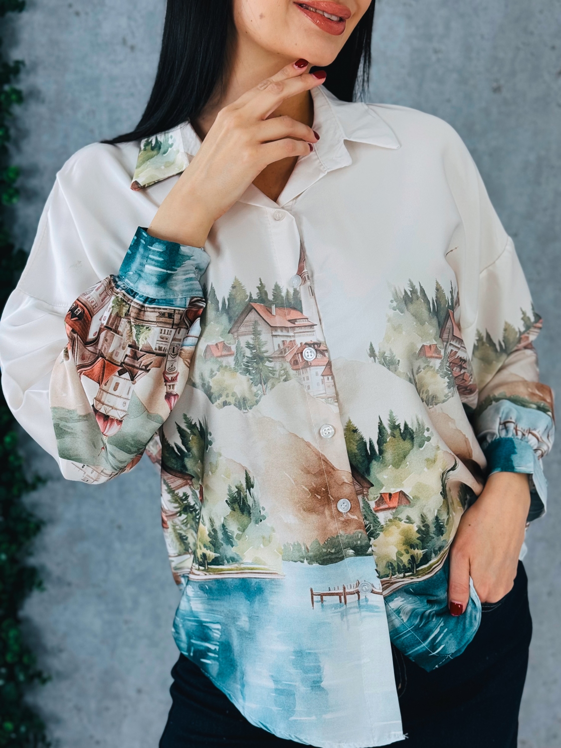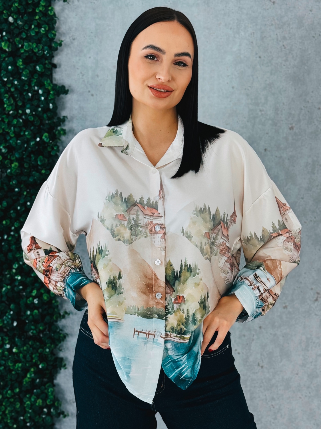 Dámska blúzka s dlhými rukávmi je elegantný a štýlový kúsok, ktorý zaujme na prvý pohľad svojím vzorovaným dizajnom a jemne hravými detailmi, blúzka je vyrobená z príjemného, ľahkého a pohodlného materiálu, ktorý je vhodný na celodenné nosenie, jej strih je klasický s mierne voľnejším padnutím, ktoré lichotí rôznym typom postavy, vpredu sa nachádza praktické zapínanie na gombíky, ktoré umožňuje jednoduché obliekanie a dodáva blúzke elegantný a sofistikovaný vzhľad, dlhé rukávy sú pohodlné, mierne nadýchané pri zápästí a doplnené jemnými manžetami, ktoré dotvárajú celkový vzhľad a pridávajú blúzke jemný detail, vzorovaný motív po celej ploche blúzky pôsobí moderne, sviežo a originálne, a dodáva outfitu osobitý charakter, strih blúzky je vhodný na kombinovanie s nohavicami, sukňou alebo rifľami, čím sa stáva univerzálnym kúskom pre každodenné nosenie, do práce, na voľný čas alebo spoločenské príležitosti, a jej dizajn spája pohodlie, štýl a výrazný vizuálny efekt, vďaka čomu je ideálnym doplnkom šatníka každej ženy, ktorá chce vyzerať moderne, sviežo a elegantne zároveň.