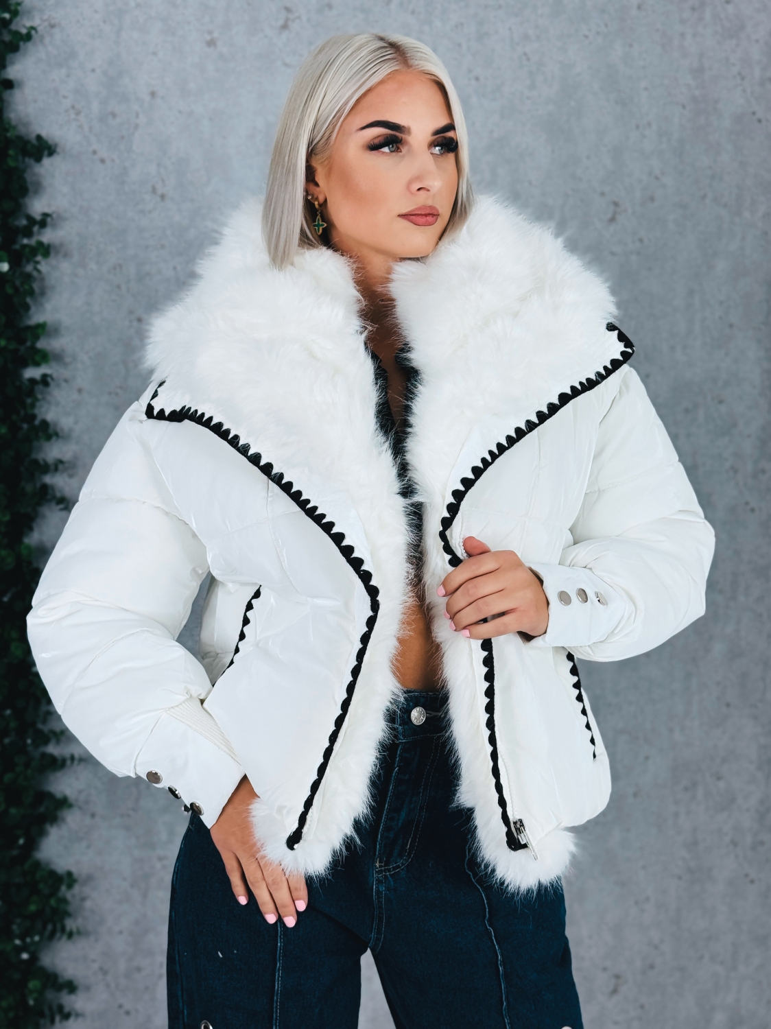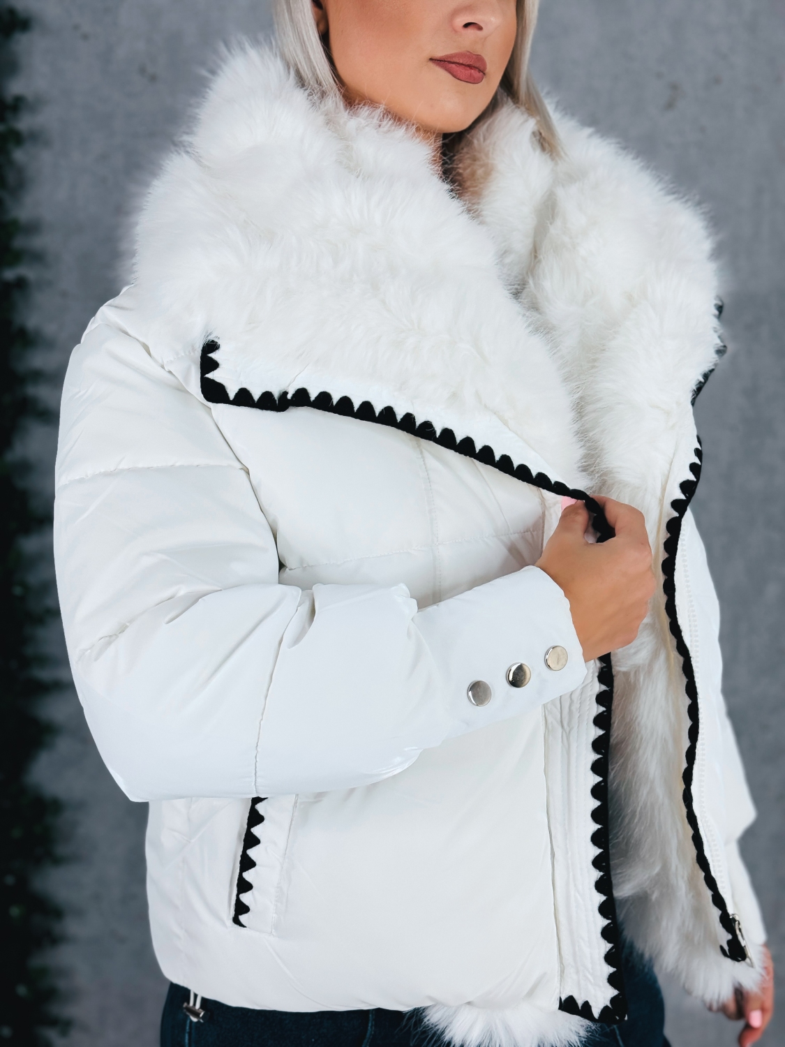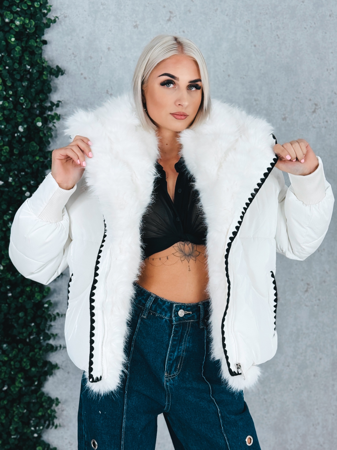 Dámska zimná bunda s kožušinou – luxusný štýl a dokonalé teplo v jednom! Táto prešívaná dámska zimná bunda je stelesnením elegancie a komfortu. Jej vnútro zdobí jemná, hustá kožušina, ktorá je po celej dĺžke a vpredu len čiastočne pri zapínaní, čo jej dodáva jedinečný vzhľad a výnimočné tepelné vlastnosti. Bunda je vyrobená z kvalitného, odolného materiálu, ktorý chráni pred chladom, vetrom aj vlhkosťou. Moderný prešívaný dizajn krásne tvaruje postavu a zvýrazňuje ženské línie, zatiaľ čo bohatá kožušina na kapucni dodáva outfitu dotyk luxusu. Pri zapínaní jemne vykúka kožušina, čo pôsobí veľmi štýlovo a elegantne. Bunda je vhodná na bežné nosenie, do mesta, aj na zimné prechádzky – skrátka ideálny kúsok, s ktorým vynikneš aj v mraze.