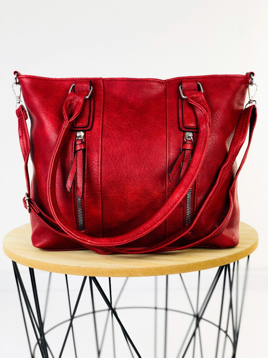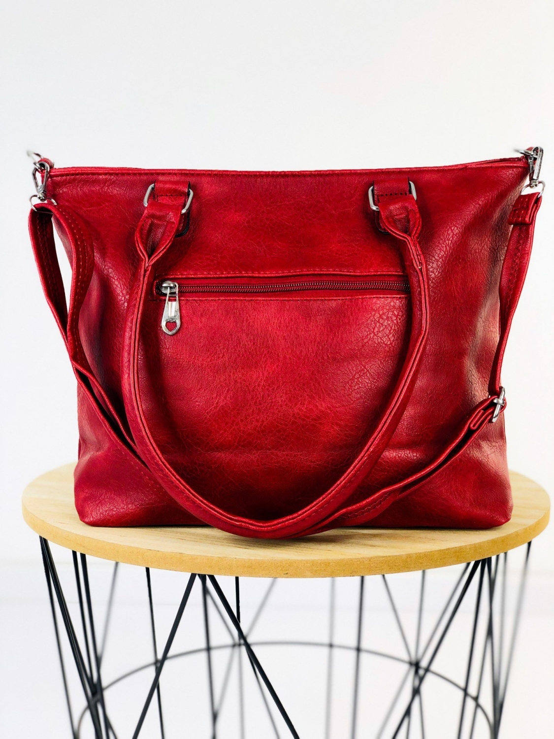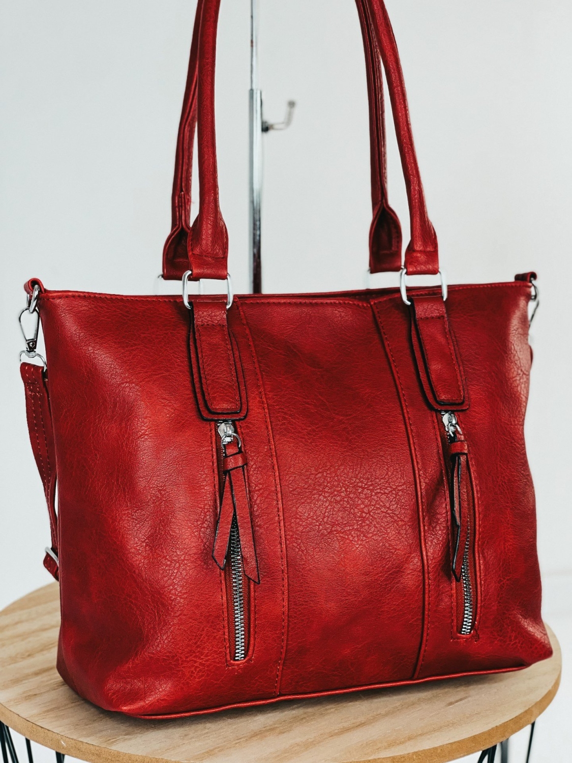 Dámska kabelka v bordovej farbe s remienkom, ktorú už nebudete chcieť odložiť. Stane sa Vaším obľúbeným kúskom. Je ideálnym doplnkom ku každému outfitu. Pevný materiál a dostatočný priestor vo vnútri Vám zabezpečí dostatok priestoru na bežné veci, diár, kozmetiku a podobne. Túto čiernu kabelku s remienkom môžete nosiť v bežný deň do práce a pod. Zapínanie kabelky je na zips. Vzadu vrecko, ktoré sa taktiež zapína na zips.