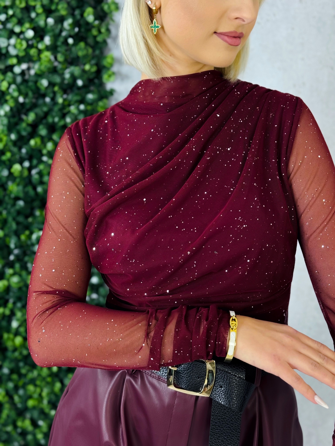 Dámska trblietavá blúzka s priesvitnými rukávmi – spojenie ženskosti, elegancie a moderného štýlu. Táto blúzka je navrhnutá pre ženy, ktoré milujú jemné detaily, no zároveň chcú zaujať už na prvý pohľad. Trblietavý povrch vytvára nádherný efekt, ktorý sa mení s každým pohybom tela. Nielenže dodáva outfitu luxusný charakter, ale zároveň pôsobí veľmi decentne a vkusne. Priesvitné rukávy prinášajú do celého dizajnu romantiku a ľahkosť. Ich jemná štruktúra krásne kontrastuje so zdobeným predným dielom, vďaka čomu vzniká dokonalá harmónia medzi eleganciou a moderným trendom. Rukávy sú príjemné na dotyk, neškrtia a dodávajú blúzke vzdušnosť, ktorú oceníš počas celého dňa a večera. Strih blúzky je navrhnutý tak, aby lichotil postave – krásne ju zvýrazní, no zároveň poskytuje komfort a dostatok voľnosti. Hodí sa k sukniam aj nohaviciam, na slávnostné príležitosti, večerné udalosti, ale aj na bežné dni, keď chceš vyzerať výnimočne bez veľkej námahy. Tento model je ideálny pre ženy, ktoré chcú do svojho šatníka priniesť kúsok, ktorý sa neopozerá, ľahko kombinuje a vždy vytvorí ten správny „wow“ efekt.