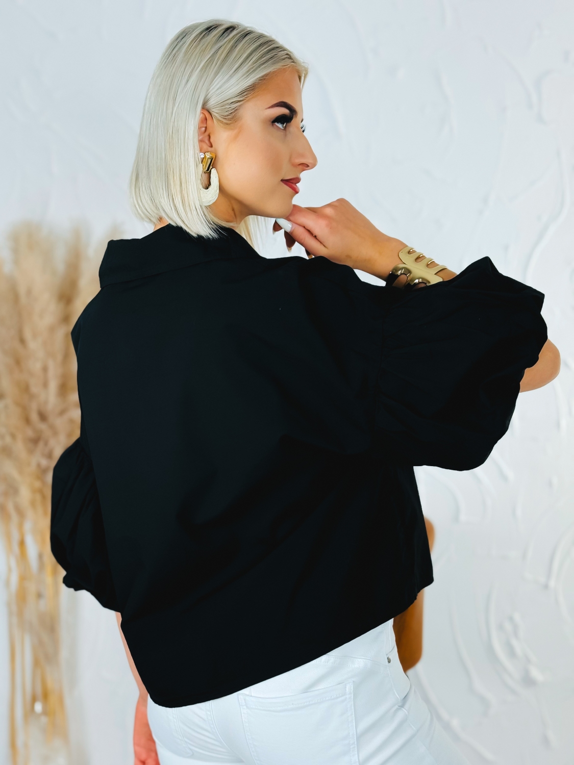 Dámska košeľa s balónovými rukávmi a zapínaním na gombíky vpredu je štýlový a zároveň praktický kúsok, ktorý spája klasický dizajn s modernými detailmi. Kratší strih pôsobí sviežo a trendy, pričom pekne zvýrazní pás a ľahko sa kombinuje s nohavicami alebo sukňami s vyšším pásom. Balónové rukávy dodávajú košeli výrazný a ženský charakter, vďaka čomu pôsobí elegantne, no zároveň zaujímavo a originálne. Klasické zapínanie na gombíky vpredu zachováva jej nadčasový vzhľad a umožňuje jednoduché nosenie aj vrstvenie podľa potreby. Materiál zo 100 % bavlny zabezpečuje maximálne pohodlie počas celého dňa, je priedušný, príjemný na dotyk a vhodný aj na citlivejšiu pokožku. Košeľa je ideálna na každodenné nosenie, do práce, na stretnutia aj voľný čas, kde chceš pôsobiť upravene a štýlovo bez zbytočnej námahy.