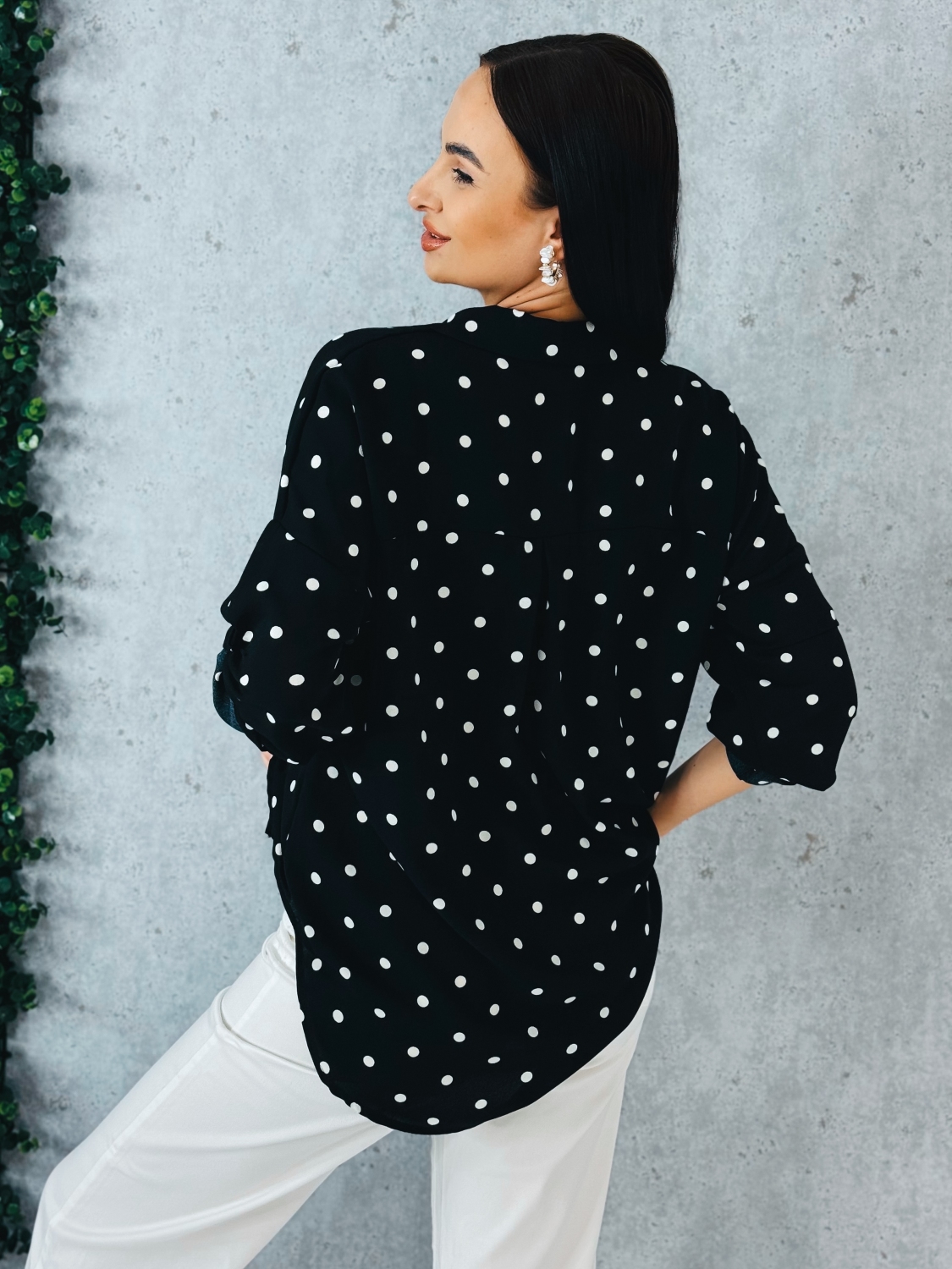 Doprajte si pohodlie a štýl v jednom s touto dámskou blúzkou v oversize strihu, ktorá je ideálnou voľbou pre ženy, ktoré milujú modernú eleganciu a voľnosť pohybu. Vďaka voľnému, vzdušnému strihu blúzka krásne padne na postave a zároveň poskytuje maximálne pohodlie počas celého dňa. Je skvelou voľbou na bežné nosenie, do práce, ale aj na stretnutia s priateľmi či neformálne spoločenské príležitosti. Blúzka je ozdobená jemným bodkovaným vzorom, ktorý dodáva celkovému vzhľadu hravosť a nadčasový šarm. Tento klasický vzor nikdy nevyjde z módy a jednoducho sa kombinuje s rôznymi kúskami vo vašom šatníku. Oversize strih zároveň pôsobí moderne a štýlovo, pričom lichotí rôznym typom postavy. Ľahký a príjemný materiál zabezpečuje komfort pri nosení a krásne splýva pri pohybe.