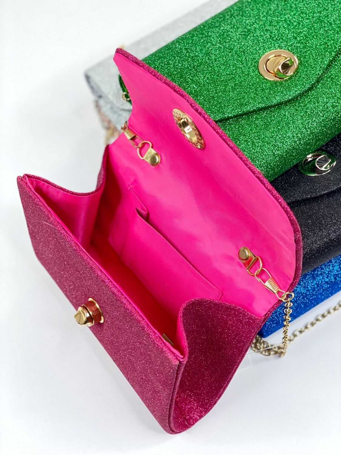 Dámska štýlová spoločenská kabelka v trblietavom prevedení s remienkom, ktorá Vášmu outfitu dodá šmrnc a eleganciu. Je vhodná na akúkoľvek oslavu, svadbu, návštevu divadla či inú slávnostnú udalosť. Kabelka je praktických rozmerov. Zapínanie na cvok.