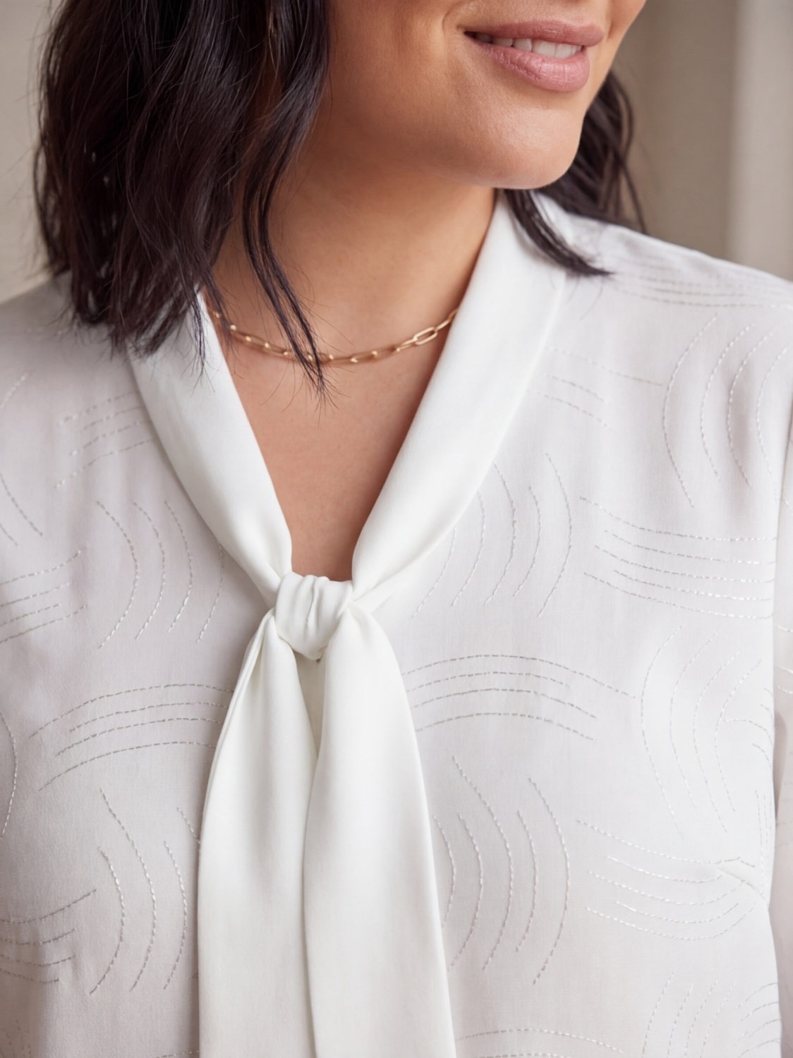 Hľadáte ideálny kúsok, ktorý vás reprezentuje? Táto biela blúzka s viazaním je odpoveďou na otázku, čo si obliecť, keď chcete vyzerať upravene, sviežo a cítiť sa sebavedomo.