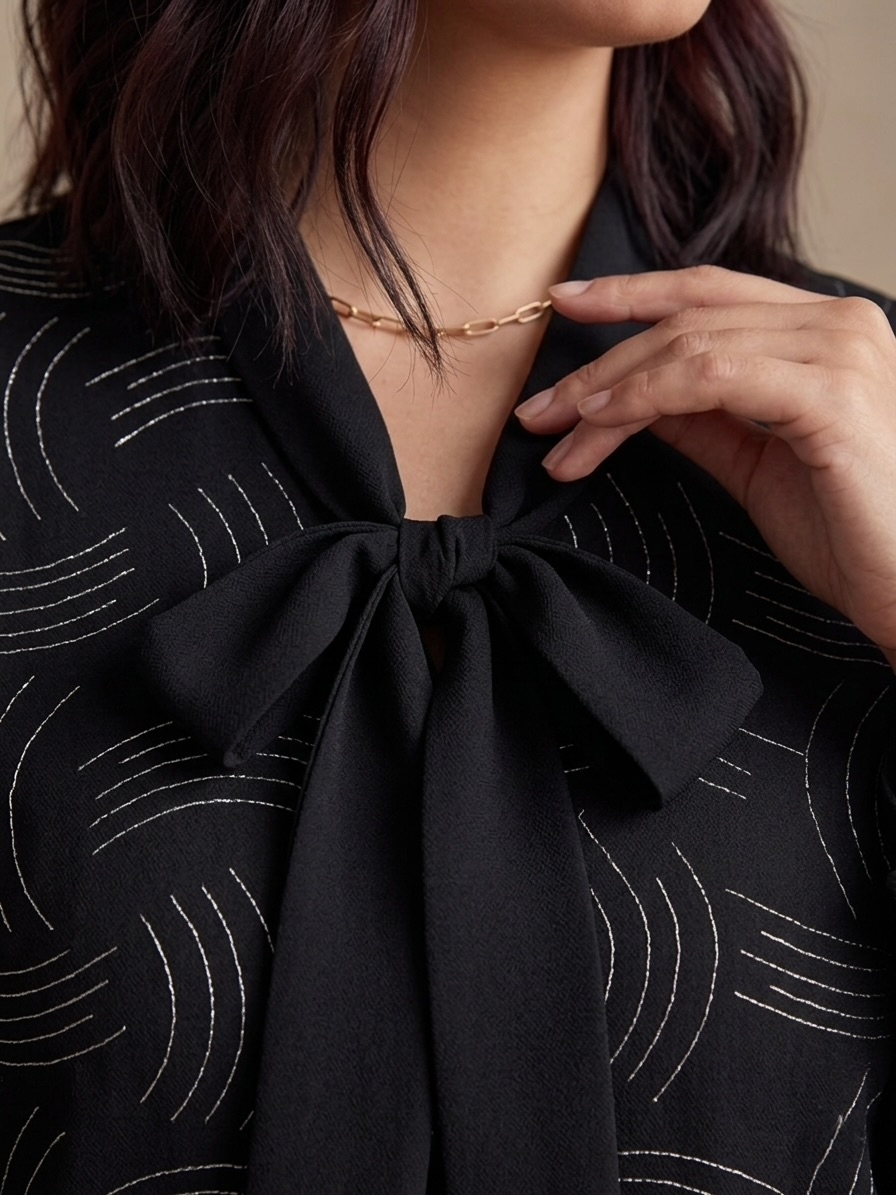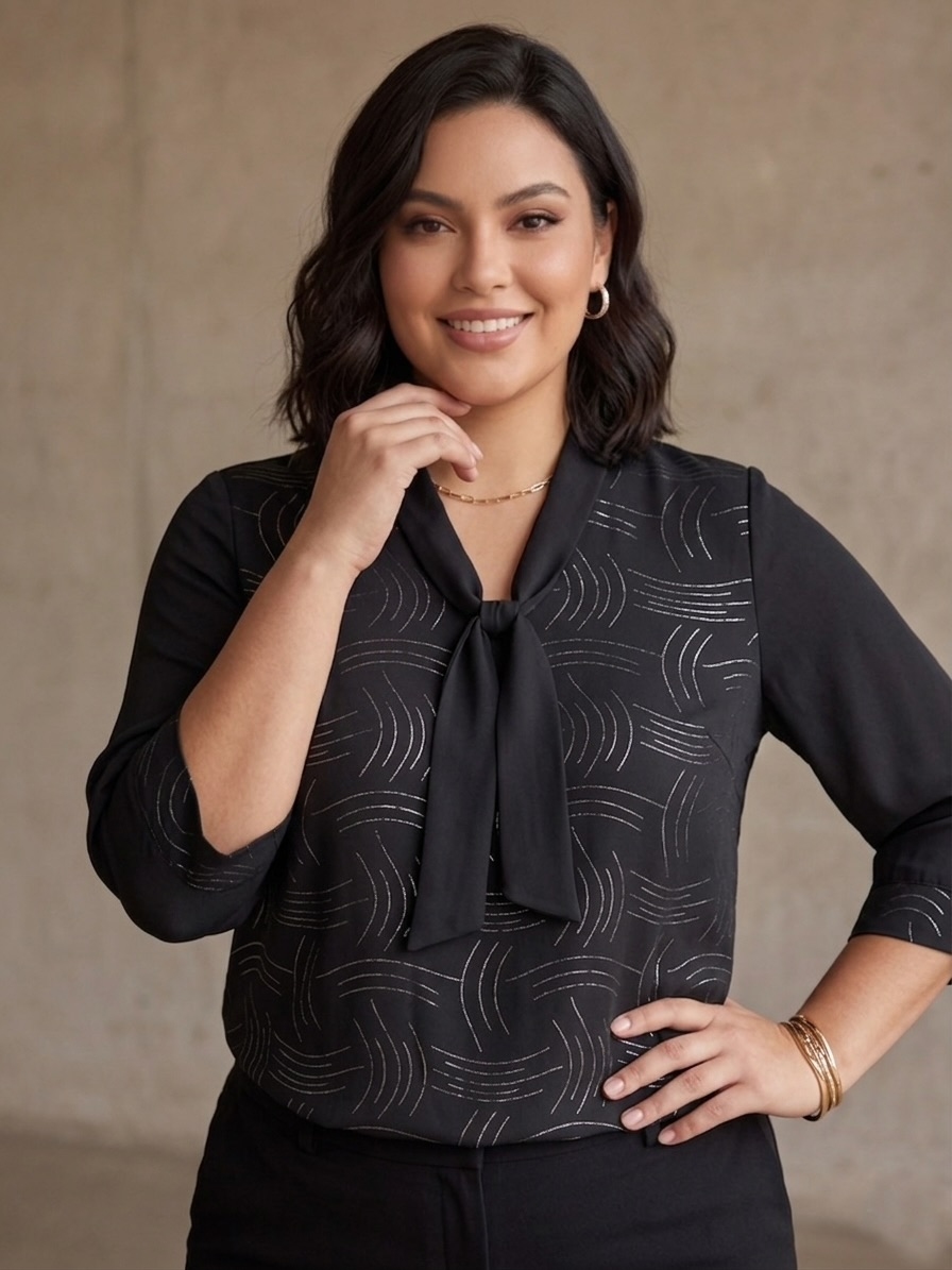Jedinečný dizajn: Jemný metalický vzor v podobe strieborných oblúkov dodáva blúzke luxusný vzhľad a jemný odlesk pri každom pohybe.