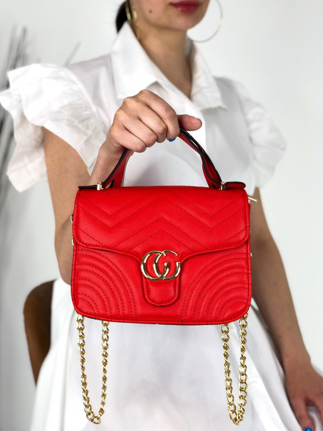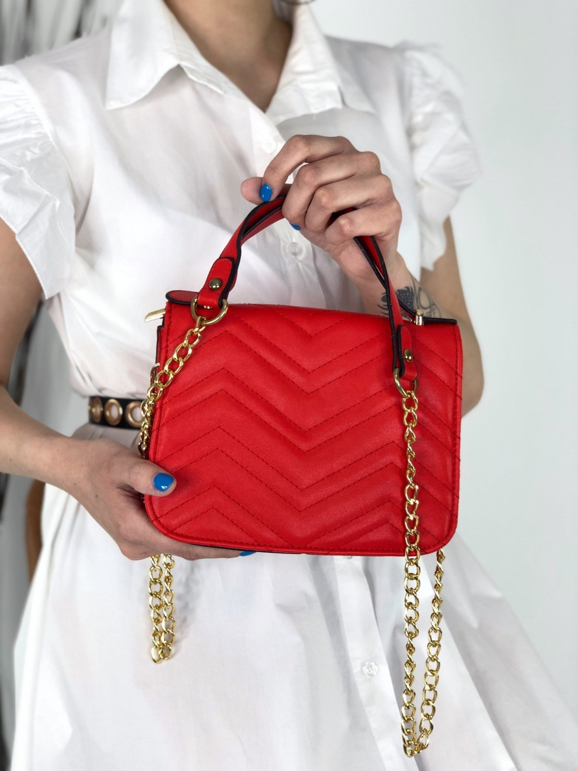 Dámska kabelka so zlatou reťazou, ktorú si rozhodne zamilujete a stane sa Vaším obľúbeným doplnkom ku každému outfitu. Kabelka má krátky remienok na uchopenie. Kabelka je prepracovaná do detailov ako z vonkajšej strany, tak i zvnútra. Skombinujete ju s akýmkoľvek štýlom.