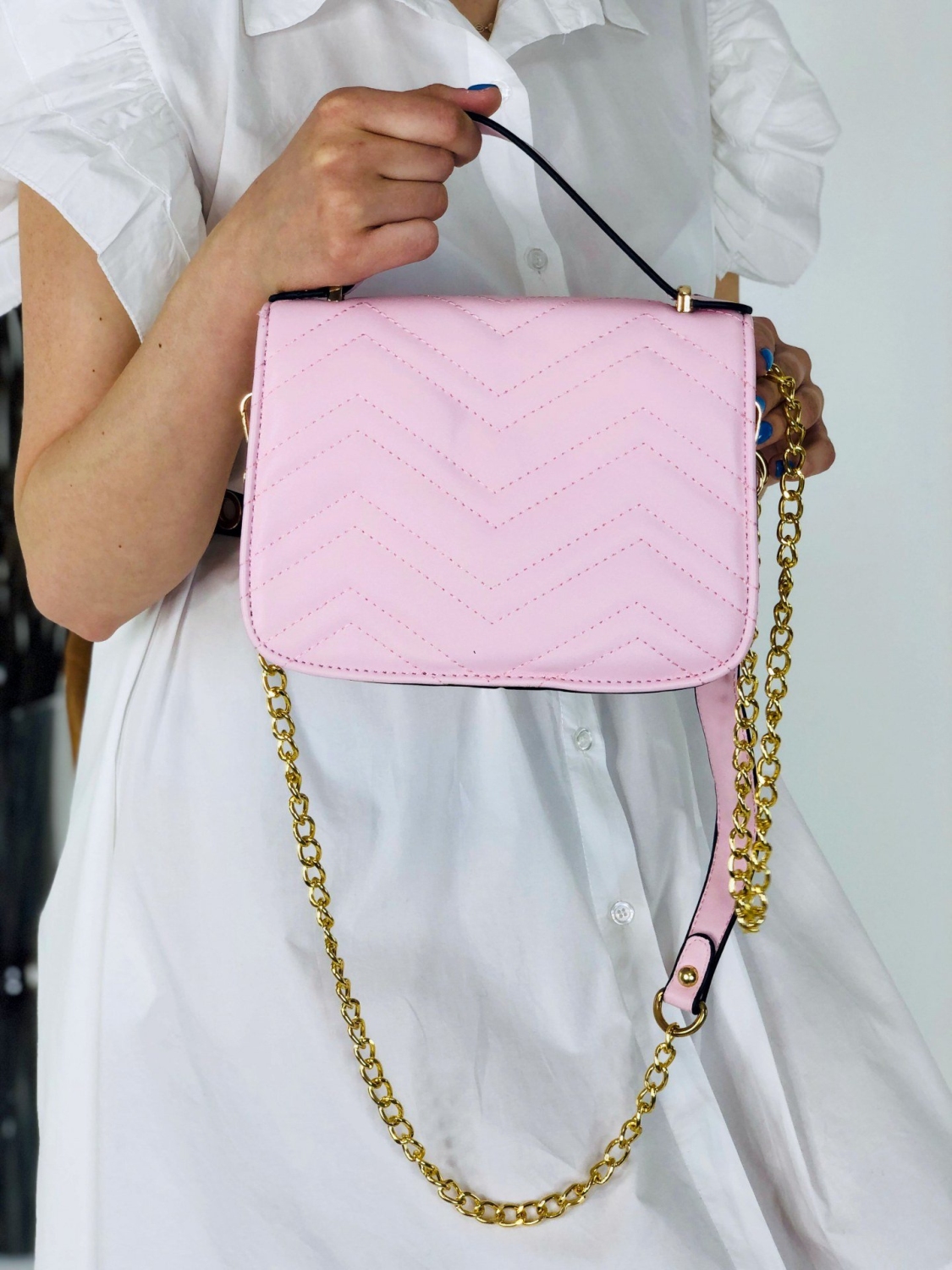 Dámska kabelka so zlatou reťazou, ktorú si rozhodne zamilujete a stane sa Vaším obľúbeným doplnkom ku každému outfitu. Kabelka má krátky remienok na uchopenie. Kabelka je prepracovaná do detailov ako z vonkajšej strany, tak i zvnútra. Skombinujete ju s akýmkoľvek štýlom.