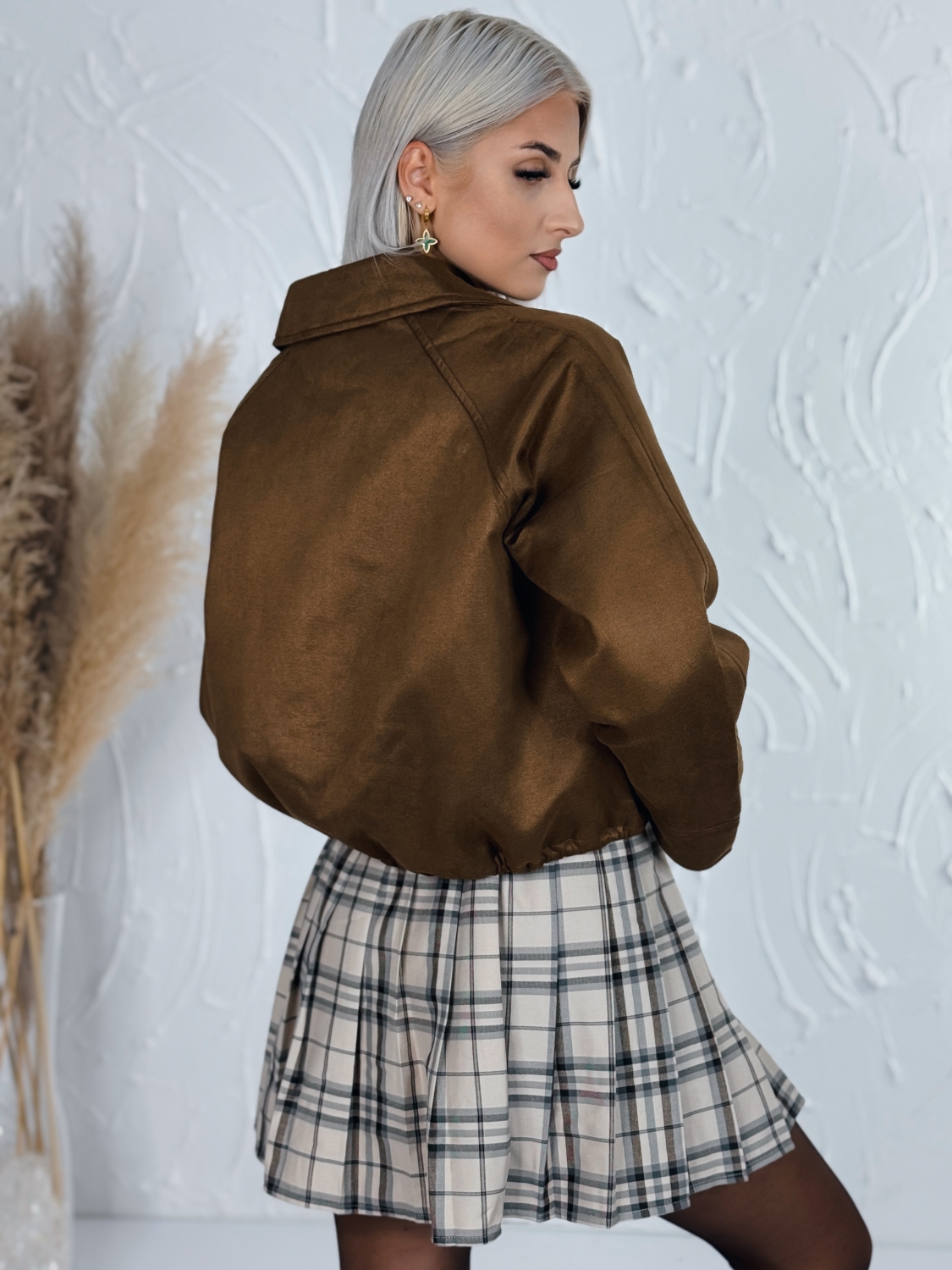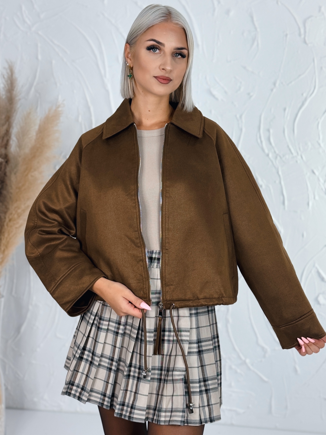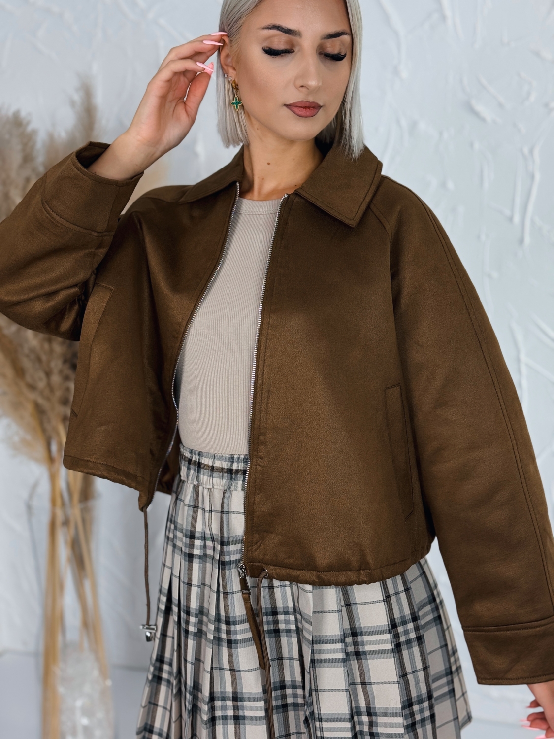 Táto dámska semišová bunda hnedej farby je dokonalým spojením elegancie a ležérneho štýlu, ktorý využijete na rôzne príležitosti. Vyrobená z kvalitného semišu, pôsobí luxusne, príjemne na dotyk a svojím vzhľadom dodáva outfitu šmrnc a sofistikovanosť. Bunda sa zapína na zips, čo jej dodáva moderný a praktický charakter. V páse je možné ju stiahnuť šnúrkou, vďaka čomu si prispôsobíte siluetu podľa vlastných predstáv – buď voľnejšie pre ležérny look, alebo viac na postavu pre zvýraznenie ženských kriviek. Tento detail robí bundu nielen pohodlnou, ale aj veľmi lichotivou. Hnedá farba je univerzálna a ľahko kombinovateľná – perfektne ladí s džínsami, sukňami či šatami a umožňuje vytvárať štýlové kombinácie na každodenné nosenie aj na neformálne stretnutia. Semišová textúra pritiahne pozornosť a dodá outfitu prémiový charakter, takže budete pôsobiť vždy štýlovo a originálne. Je to nadčasový kúsok, ktorý nesmie chýbať v šatníku každej ženy, čo hľadá praktickú, pohodlnú a zároveň elegantnú bundu, ktorá vynikne v každej situácii.
