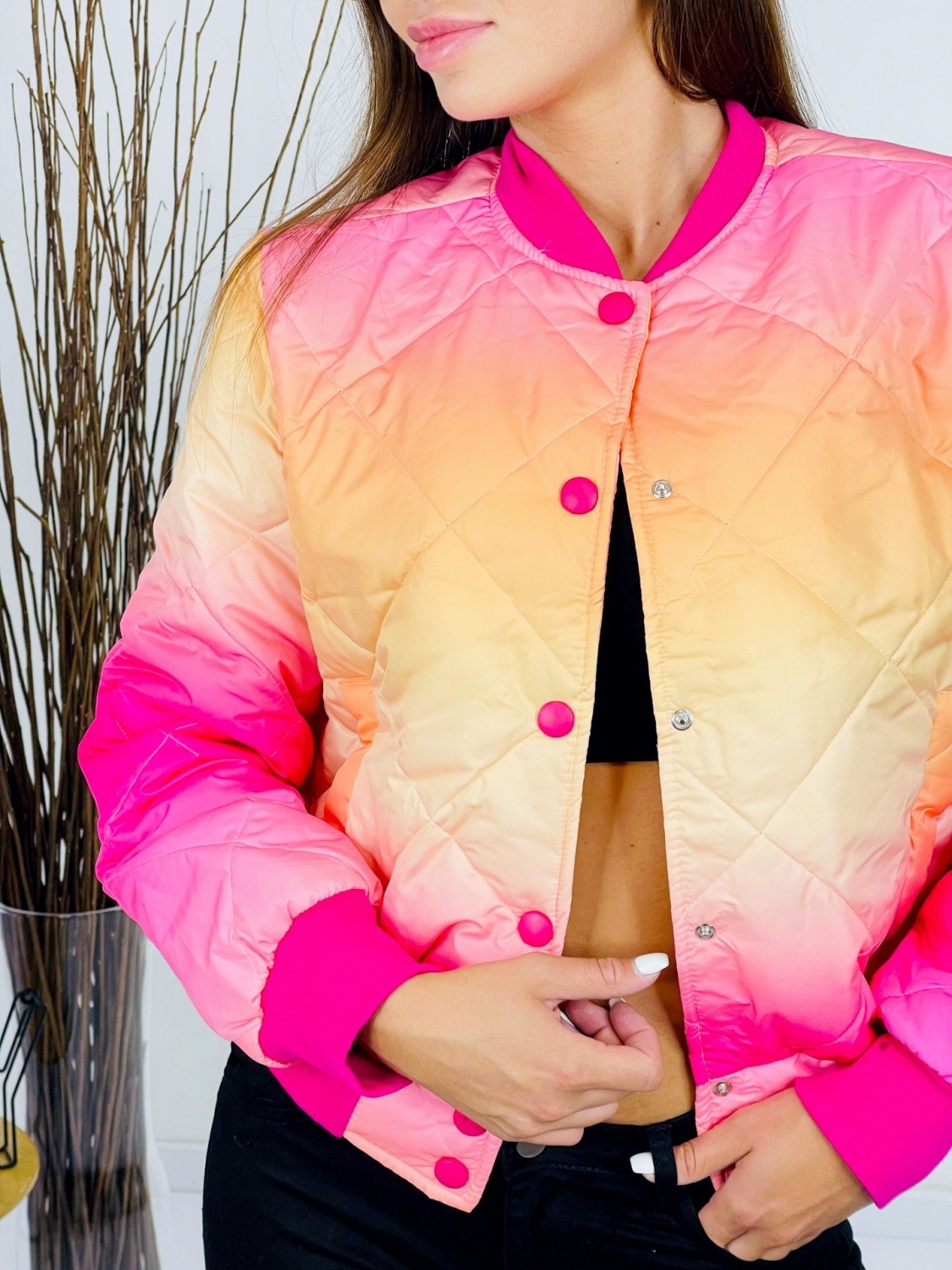 Dámska krátka ružovo-oranžová vesta so zapínaním na cvoky, ktorá Vás ochráni počas sychravého počasia. Zaručene trendy kúsok pre každú ženu, ktorá má rada trendy módu. Bezpochýb ju využijete ku rôznym outfitom. Prechodná bunda je "musthave" kúsok pre prichádzajúcu jeseň a jar. Vesta, ktorá je s dlhým rukávm pôsobí nadčasovo a žensky. Vrecká na oboch stranách. Modelka je vysoká 175 cm a má oblečenú veľkosť S/M. Odosielame ihneď, všetok tovar máme skladom.