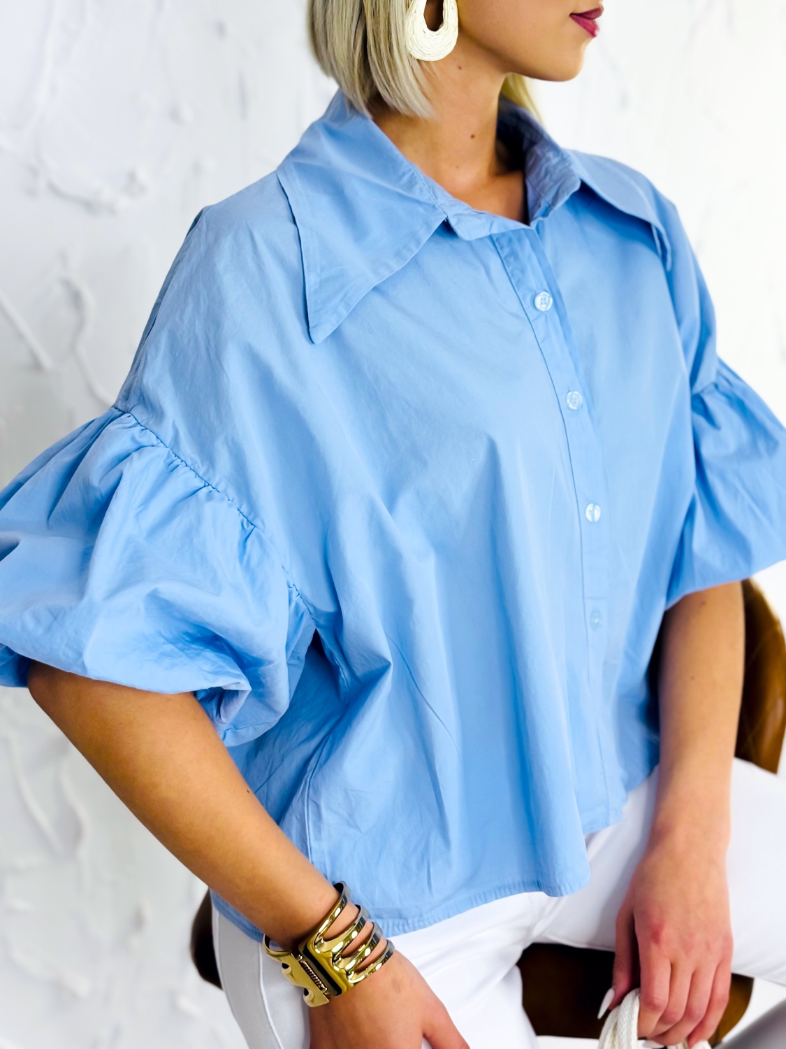 Dámska košeľa s balónovými rukávmi a zapínaním na gombíky vpredu je štýlový a zároveň praktický kúsok, ktorý spája klasický dizajn s modernými detailmi. Kratší strih pôsobí sviežo a trendy, pričom pekne zvýrazní pás a ľahko sa kombinuje s nohavicami alebo sukňami s vyšším pásom. Balónové rukávy dodávajú košeli výrazný a ženský charakter, vďaka čomu pôsobí elegantne, no zároveň zaujímavo a originálne. Klasické zapínanie na gombíky vpredu zachováva jej nadčasový vzhľad a umožňuje jednoduché nosenie aj vrstvenie podľa potreby. Materiál zo 100 % bavlny zabezpečuje maximálne pohodlie počas celého dňa, je priedušný, príjemný na dotyk a vhodný aj na citlivejšiu pokožku. Košeľa je ideálna na každodenné nosenie, do práce, na stretnutia aj voľný čas, kde chceš pôsobiť upravene a štýlovo bez zbytočnej námahy.