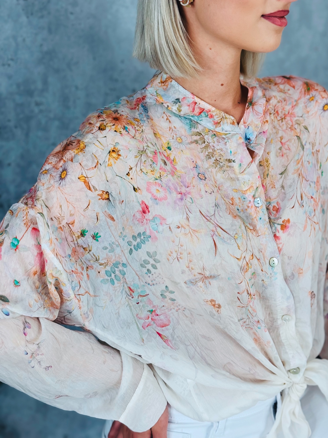Dámska kvetovaná blúzka s gombíkmi a dlhým rukávom je ideálnym kúskom pre ženy, ktoré chcú spojiť eleganciu, pohodlie a svieži ženský štýl. Táto blúzka zaujme na prvý pohľad jemným kvetinovým vzorom, ktorý pôsobí romanticky a zároveň moderne. Vďaka svojej univerzálnosti je vhodná na každodenné nosenie do práce, na stretnutia s priateľmi, ale aj na rôzne spoločenské príležitosti. Blúzka je navrhnutá s dôrazom na detail. Predná časť je zdobená praktickým zapínaním na gombíky, ktoré nielenže uľahčuje obliekanie, ale zároveň dodáva celkovému vzhľadu jemne elegantný nádych. Krátke rukávy zabezpečujú pohodlie počas teplejších dní a umožňujú voľnosť pohybu, vďaka čomu sa budete cítiť príjemne po celý deň. Materiál blúzky je ľahký, priedušný a príjemný na dotyk, čo oceníte najmä počas jarných a letných mesiacov. Blúzku si môžete v páse aj viazať. Strih je navrhnutý tak, aby lichotil postave.