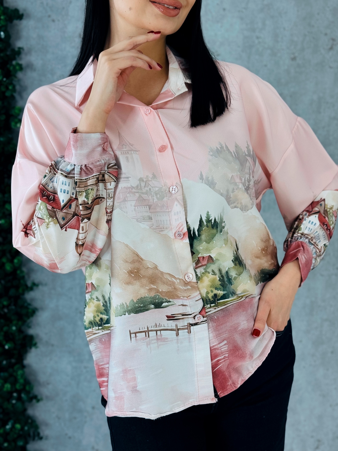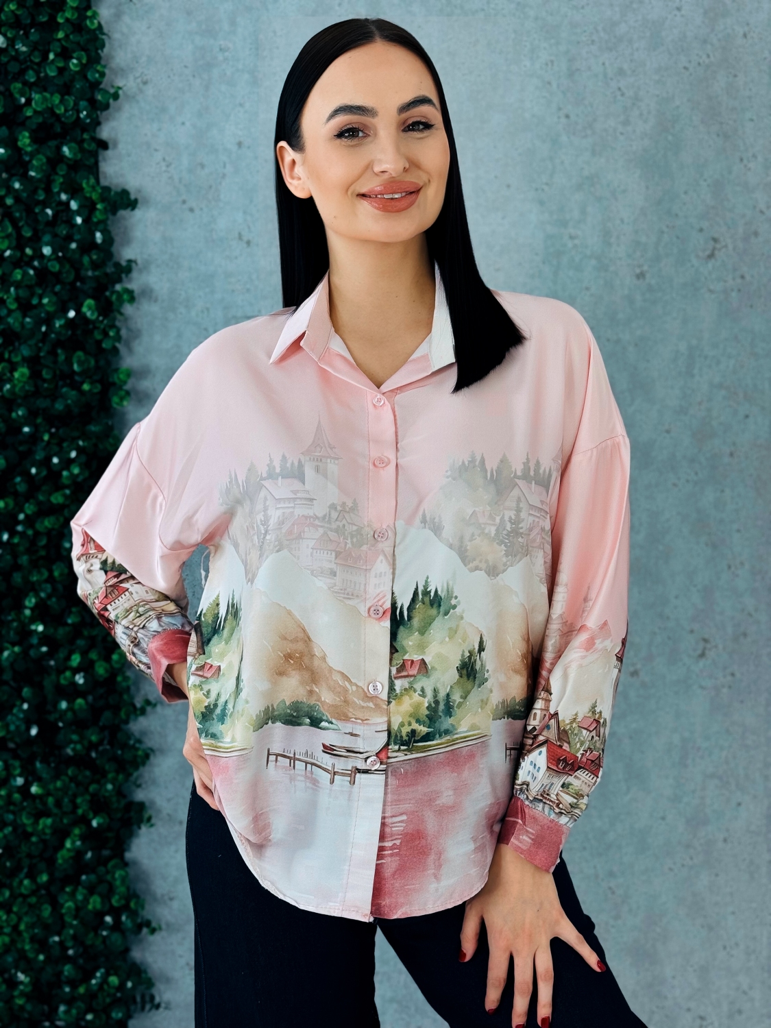 Dámska blúzka s dlhými rukávmi je elegantný a štýlový kúsok, ktorý zaujme na prvý pohľad svojím vzorovaným dizajnom a jemne hravými detailmi, blúzka je vyrobená z príjemného, ľahkého a pohodlného materiálu, ktorý je vhodný na celodenné nosenie, jej strih je klasický s mierne voľnejším padnutím, ktoré lichotí rôznym typom postavy, vpredu sa nachádza praktické zapínanie na gombíky, ktoré umožňuje jednoduché obliekanie a dodáva blúzke elegantný a sofistikovaný vzhľad, dlhé rukávy sú pohodlné, mierne nadýchané pri zápästí a doplnené jemnými manžetami, ktoré dotvárajú celkový vzhľad a pridávajú blúzke jemný detail, vzorovaný motív po celej ploche blúzky pôsobí moderne, sviežo a originálne, a dodáva outfitu osobitý charakter, strih blúzky je vhodný na kombinovanie s nohavicami, sukňou alebo rifľami, čím sa stáva univerzálnym kúskom pre každodenné nosenie, do práce, na voľný čas alebo spoločenské príležitosti, a jej dizajn spája pohodlie, štýl a výrazný vizuálny efekt, vďaka čomu je ideálnym doplnkom šatníka každej ženy, ktorá chce vyzerať moderne, sviežo a elegantne zároveň.