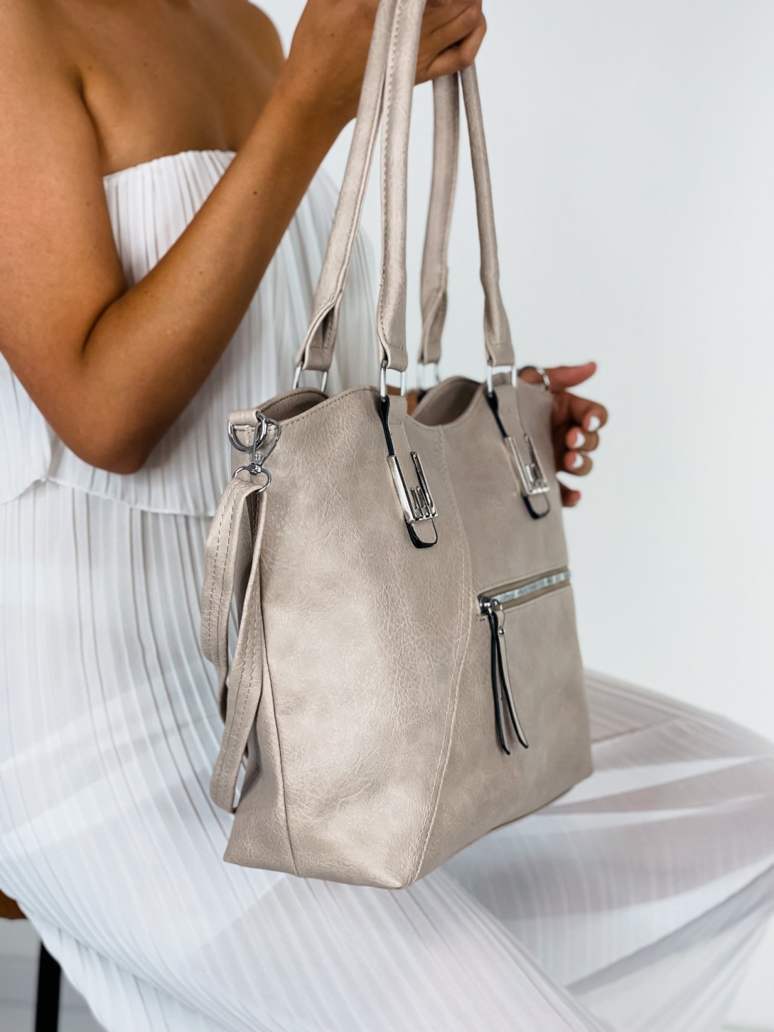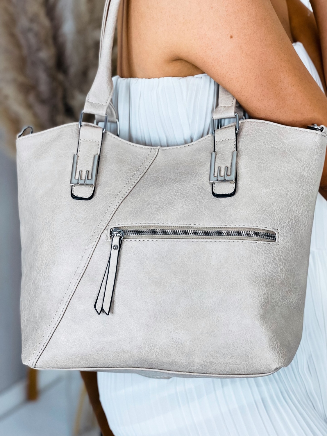 Dámska kabelka s remienkom, ktorú už nebudete chcieť odložiť. Stane sa Vaším obľúbeným kúskom. Je ideálnym doplnkom ku každému outfitu. Pevný materiál a dostatočný priestor vo vnútri Vám zabezpečí dostatok priestoru na bežné veci, diár, kozmetiku a podobne. Túto kabelku s remienkom môžete nosiť v bežný deň do práce a pod. Zapínanie kabelky je na zips. Vpredu a vzadu vrecko, ktoré sa taktiež zapína na zips.