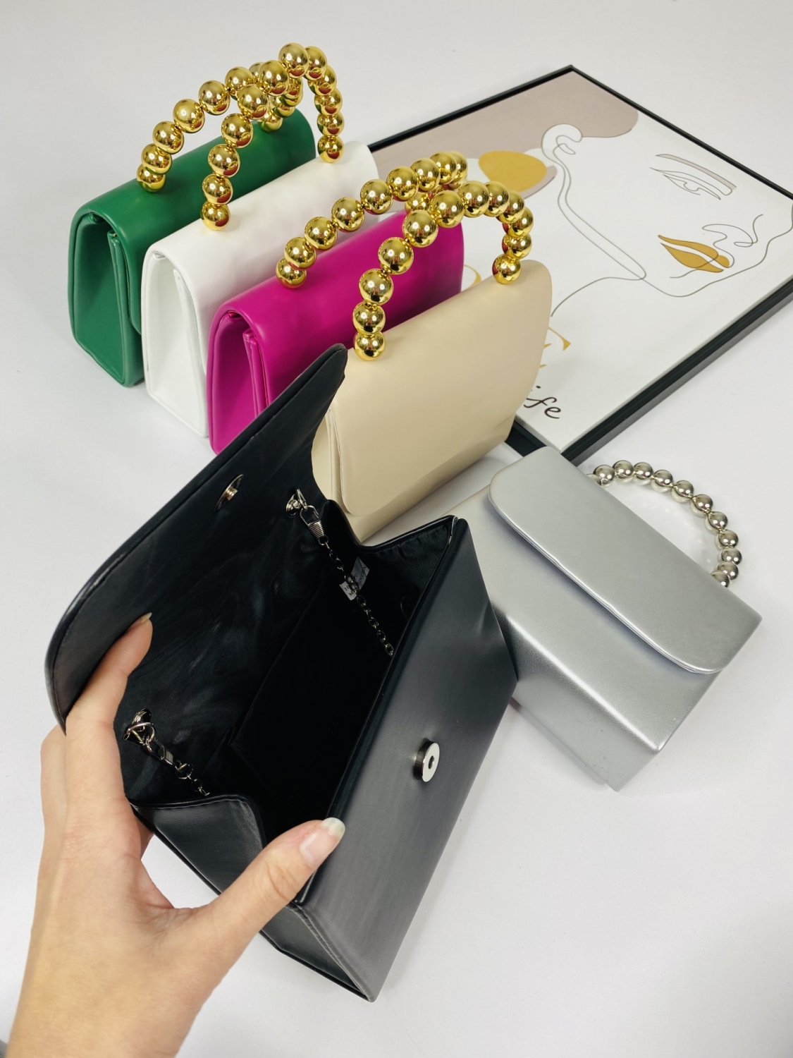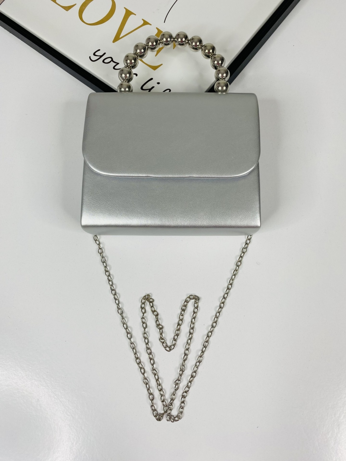Dámska štýlová spoločenská kabelka v TOP prevedení s netradičnou rúčkou z korálikov a tenkou odnímateľnou retiazkou, ktorá Vám dodá šmrnc a eleganciu. Je vhodná na akúkoľvek oslavu, svadbu, návštevu divadla, ale aj na bežný deň k elegantnému outfitu. Kabelka je praktických rozmerov. Zapínanie má na cvok.