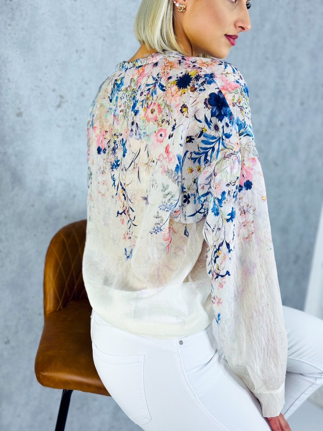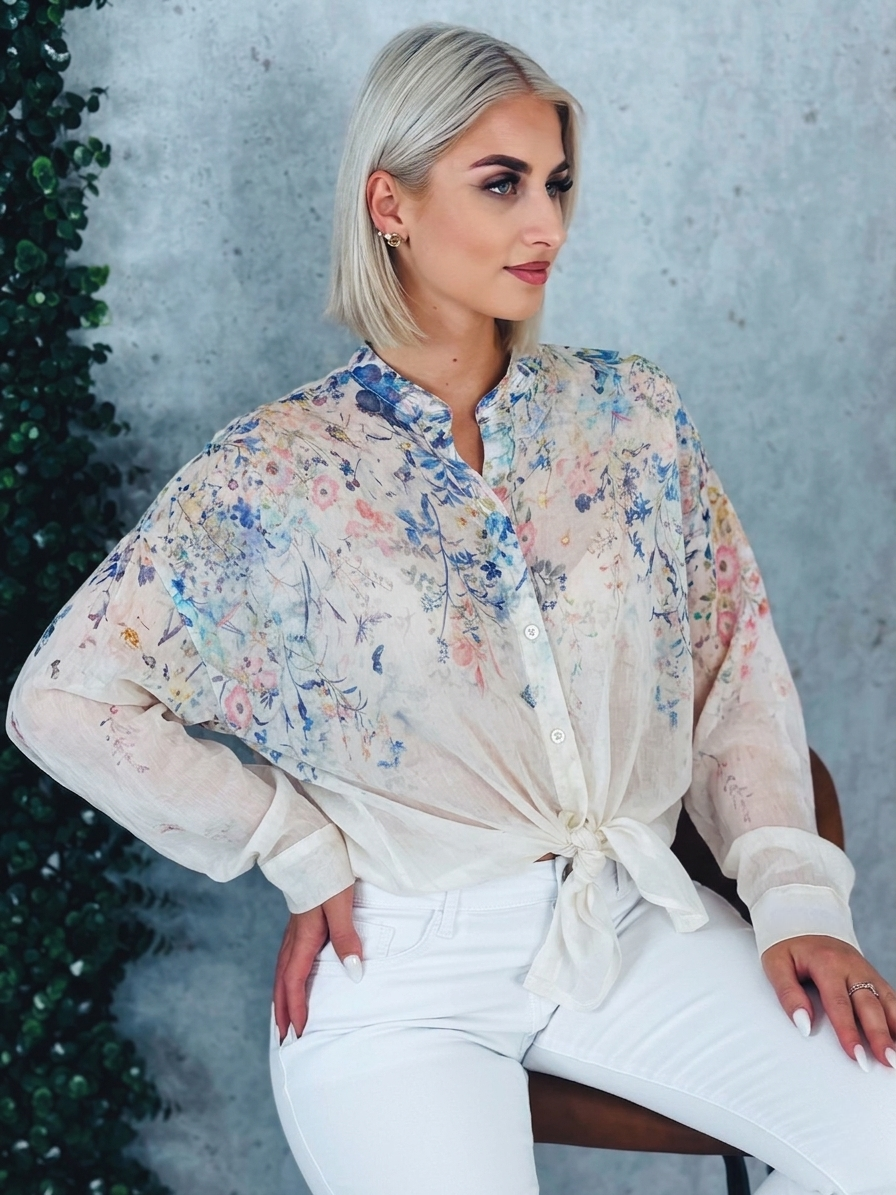 Dámska kvetovaná blúzka s gombíkmi a dlhým rukávom je ideálnym kúskom pre ženy, ktoré chcú spojiť eleganciu, pohodlie a svieži ženský štýl. Táto blúzka zaujme na prvý pohľad jemným kvetinovým vzorom, ktorý pôsobí romanticky a zároveň moderne. Vďaka svojej univerzálnosti je vhodná na každodenné nosenie do práce, na stretnutia s priateľmi, ale aj na rôzne spoločenské príležitosti. Blúzka je navrhnutá s dôrazom na detail. Predná časť je zdobená praktickým zapínaním na gombíky, ktoré nielenže uľahčuje obliekanie, ale zároveň dodáva celkovému vzhľadu jemne elegantný nádych. Krátke rukávy zabezpečujú pohodlie počas teplejších dní a umožňujú voľnosť pohybu, vďaka čomu sa budete cítiť príjemne po celý deň. Materiál blúzky je ľahký, priedušný a príjemný na dotyk, čo oceníte najmä počas jarných a letných mesiacov. Blúzku si môžete v páse aj viazať. Strih je navrhnutý tak, aby lichotil postave.