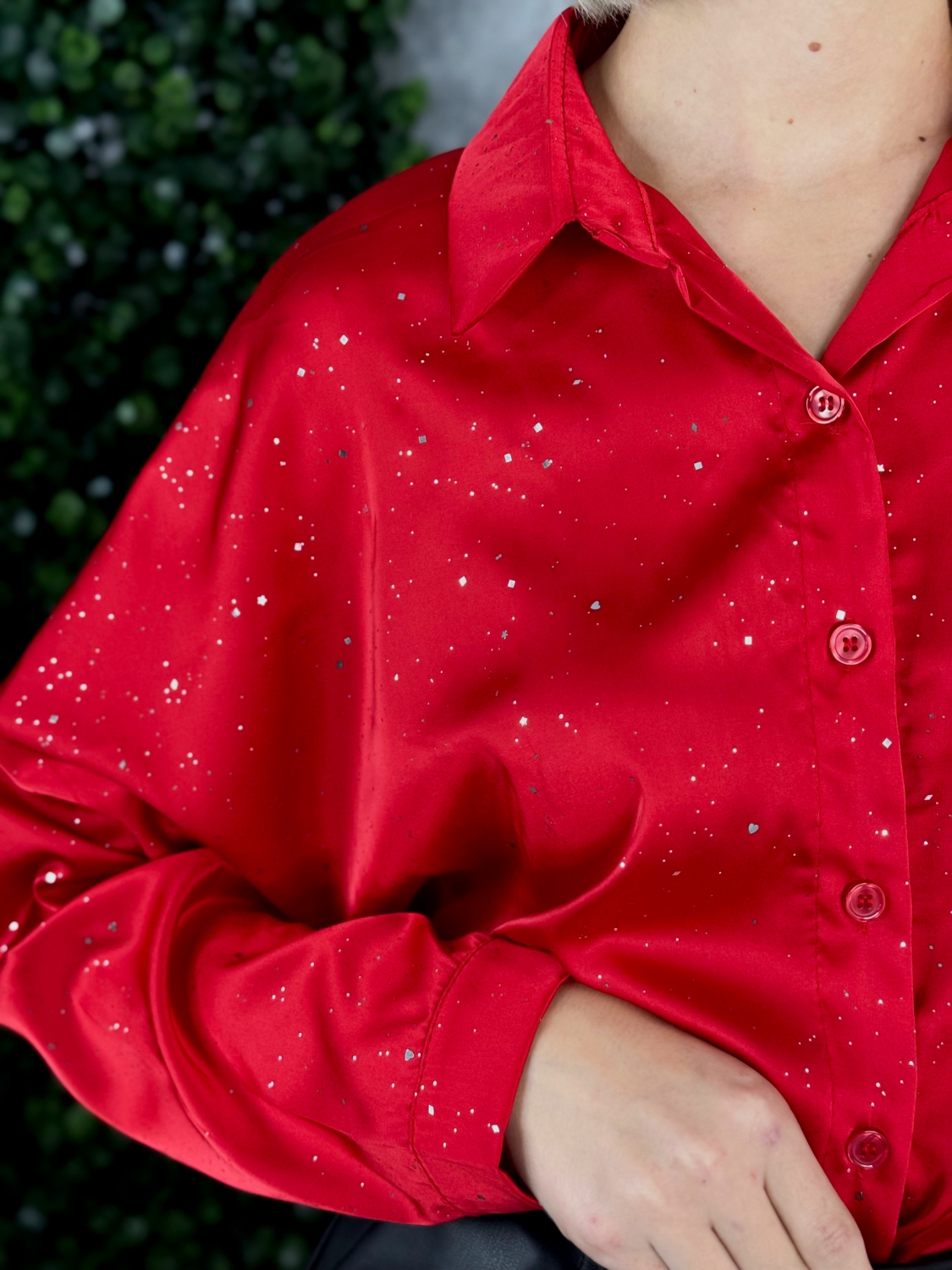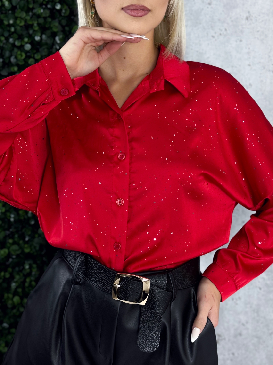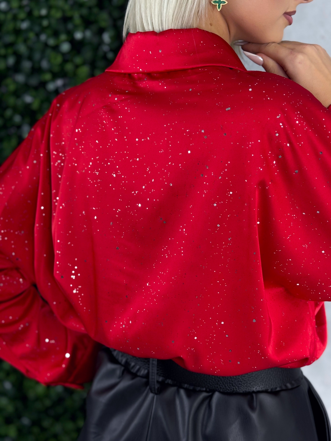 Táto dámska trblietavá saténová blúzka je stelesnením elegancie, luxusu a ženského šarmu. Je navrhnutá pre ženy, ktoré chcú svoj outfit povýšiť na novú úroveň a zároveň sa cítiť pohodlne a sebaisto. Hodí sa perfektne na večerné príležitosti, oslavy, rande či špeciálne eventy, kde chcete zažiariť a zanechať nezabudnuteľný dojem. Blúzka je vyrobená z jemného saténového materiálu, ktorý je hladký, lesklý a príjemný na dotyk. Jeho prirodzený lesk vytvára luxusný efekt a jemne odráža svetlo pri každom pohybe, čím dodáva celému outfitu sofistikovanú trblietavosť. Tento elegantný materiál sa krásne prispôsobí postave a pôsobí ženským, jemne padavým dojmom. Trblietavý efekt je decentný, no výrazný – dodáva blúzke nádych glamour štýlu.