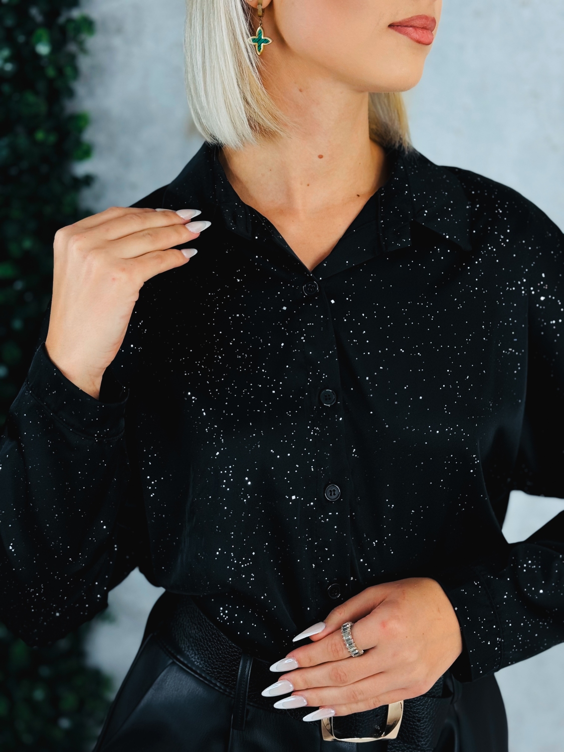 Táto dámska trblietavá saténová blúzka je stelesnením elegancie, luxusu a ženského šarmu. Je navrhnutá pre ženy, ktoré chcú svoj outfit povýšiť na novú úroveň a zároveň sa cítiť pohodlne a sebaisto. Hodí sa perfektne na večerné príležitosti, oslavy, rande či špeciálne eventy, kde chcete zažiariť a zanechať nezabudnuteľný dojem. Blúzka je vyrobená z jemného saténového materiálu, ktorý je hladký, lesklý a príjemný na dotyk. Jeho prirodzený lesk vytvára luxusný efekt a jemne odráža svetlo pri každom pohybe, čím dodáva celému outfitu sofistikovanú trblietavosť. Tento elegantný materiál sa krásne prispôsobí postave a pôsobí ženským, jemne padavým dojmom. Trblietavý efekt je decentný, no výrazný – dodáva blúzke nádych glamour štýlu.