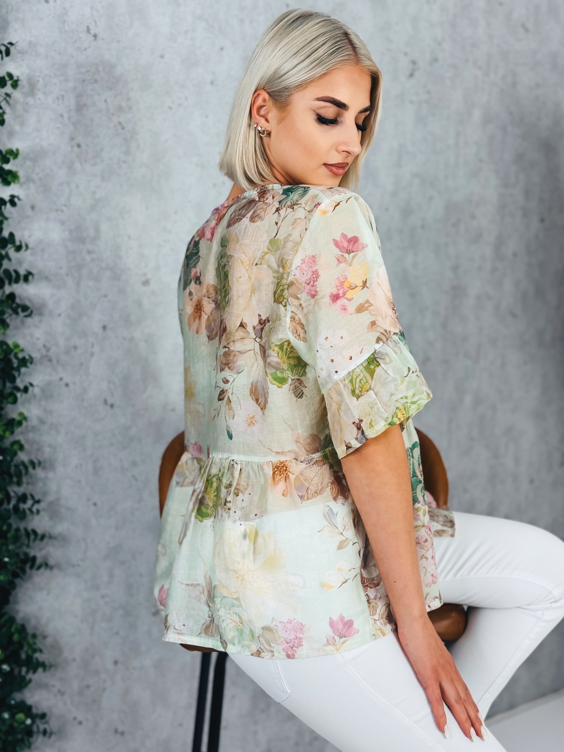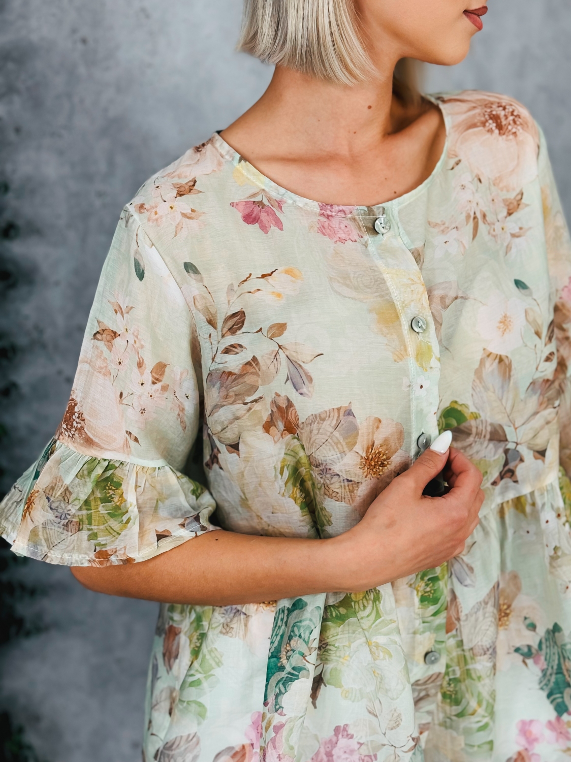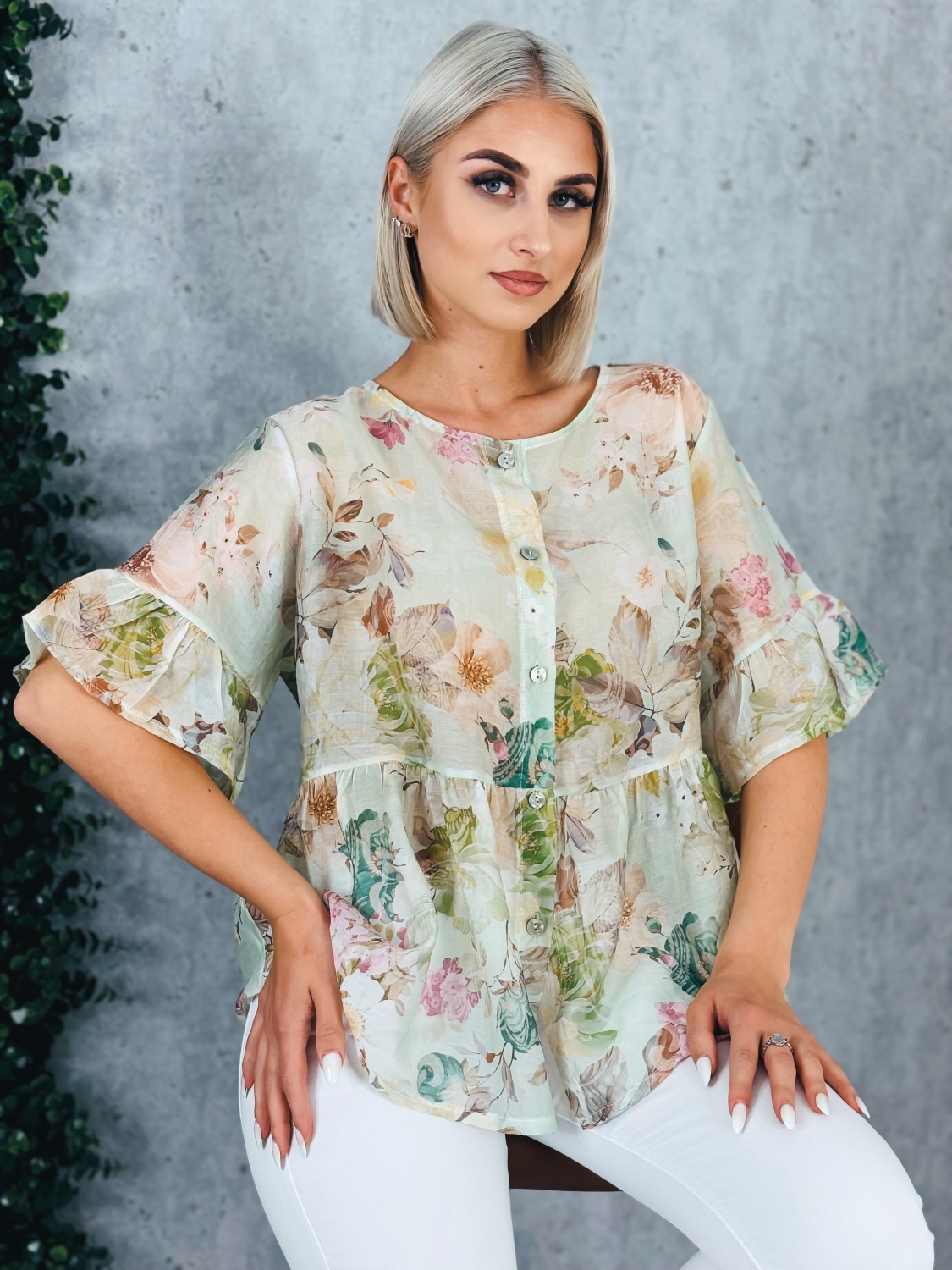 Dámska kvetovaná blúzka s gombíkmi a krátkym rukávom je ideálnym kúskom pre ženy, ktoré chcú spojiť eleganciu, pohodlie a svieži ženský štýl. Táto blúzka zaujme na prvý pohľad jemným kvetinovým vzorom, ktorý pôsobí romanticky a zároveň moderne. Vďaka svojej univerzálnosti je vhodná na každodenné nosenie do práce, na stretnutia s priateľmi, ale aj na rôzne spoločenské príležitosti. Blúzka je navrhnutá s dôrazom na detail. Predná časť je zdobená praktickým zapínaním na gombíky, ktoré nielenže uľahčuje obliekanie, ale zároveň dodáva celkovému vzhľadu jemne elegantný nádych. Krátke rukávy zabezpečujú pohodlie počas teplejších dní a umožňujú voľnosť pohybu, vďaka čomu sa budete cítiť príjemne po celý deň. Materiál blúzky je ľahký, priedušný a príjemný na dotyk, čo oceníte najmä počas jarných a letných mesiacov. Strih je navrhnutý tak, aby lichotil postave.