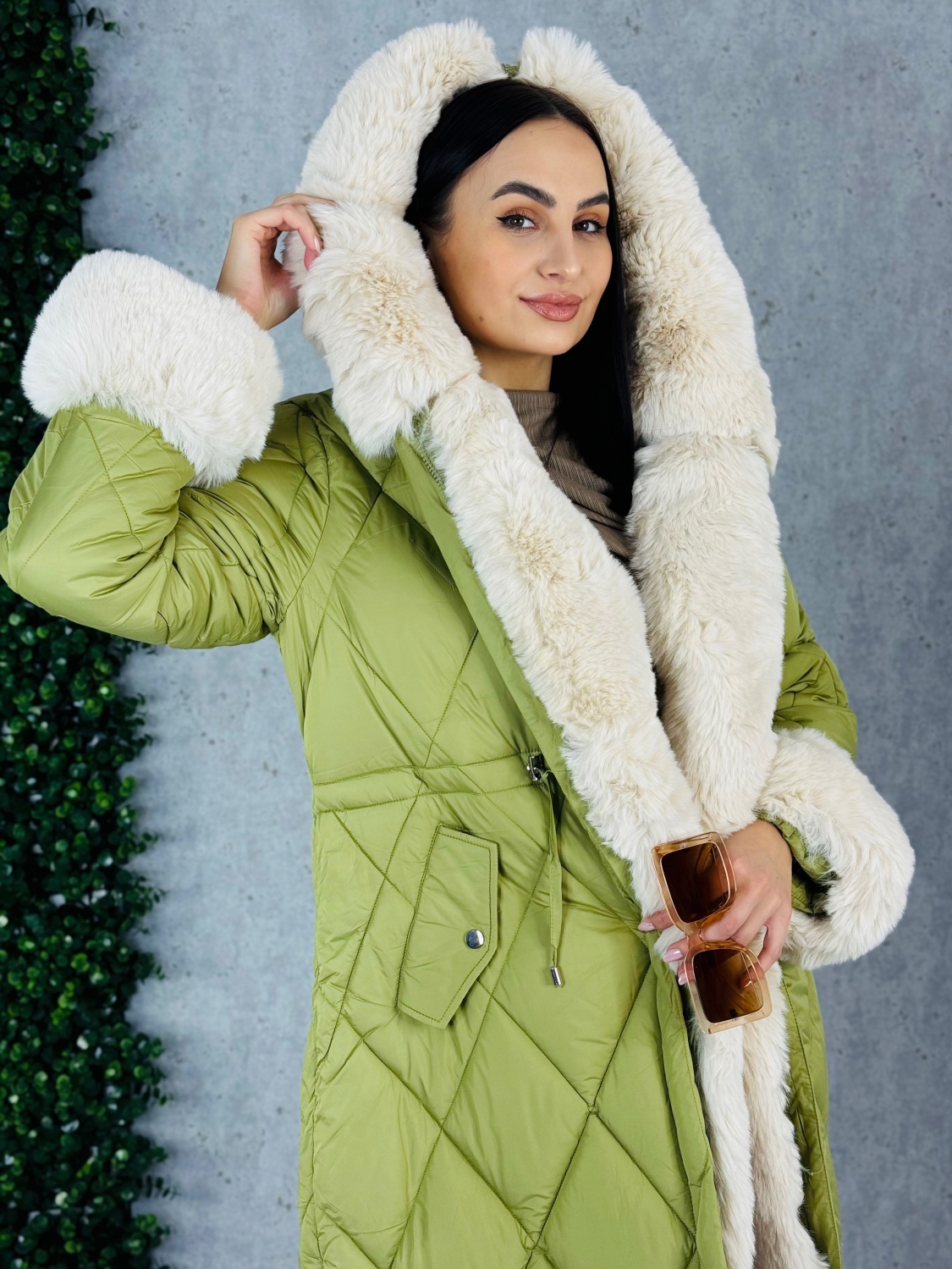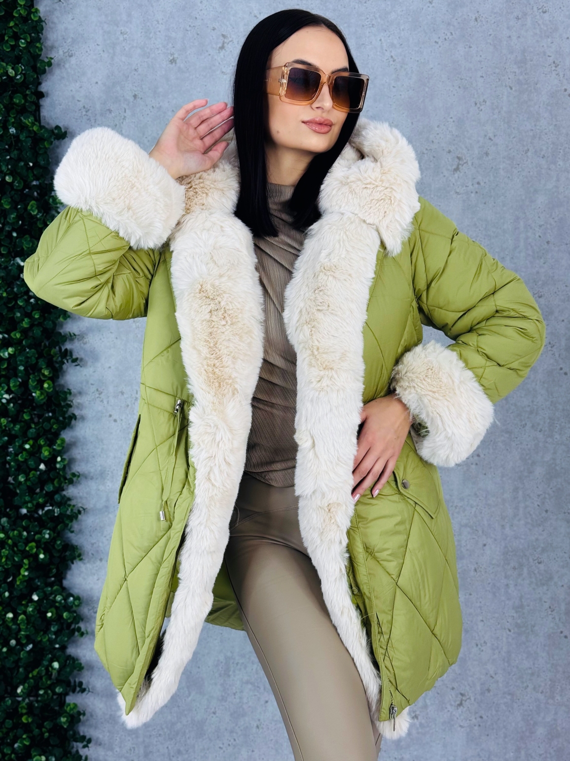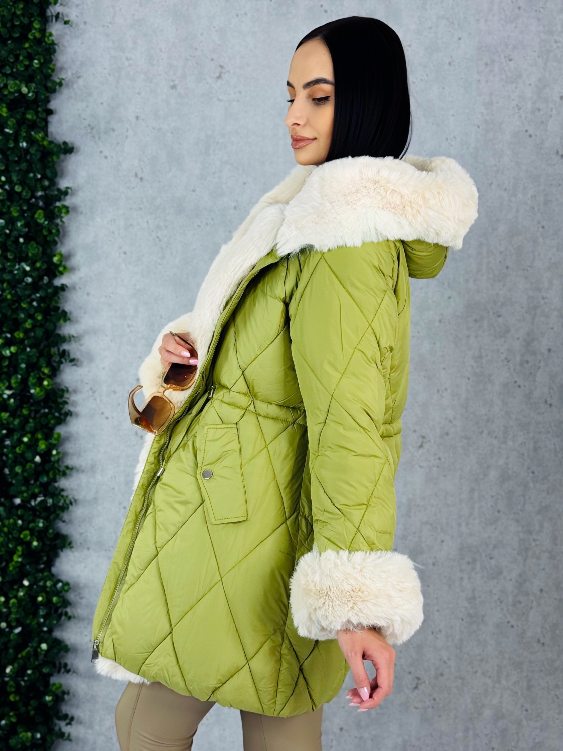 Dámska exkluzívna prešívaná zimná vetrovka s odnímateľnou kožušinou v prednej časti. Vetrovka je kvalitná a precízne prepracovaná. Bunda má zapínanie na zips a v páse je možné ju stiahnuť. Zateplený kožušinový límec okolo zapínania pôsobí veľmi luxusne a extravagantne. Tento límec je možné odopnúť. Kapucňa je strede zdobená zipsom, ktorý je možné prípadne rozopnúť, čo dodá bunde zaujímavý efekt. V tejto vetrovke Vám rozhodne zima nebude. Dĺžka vetrovky je nad kolená. Vetrovku je možné nosiť k akémukoľvek outfitu - či si ju oblečiete k športovému outfitu alebo svetríkovým šatám, vždy to bude trefa do čierneho. Na oboch stranách bundy sú vrecká. Vo vnútri vetrovky je gumička, ktorá slúži na stiahnutie v páse. Rukávy sú ozdobené umelou kožušinou, čo dodáva vetrovke luxusný look, je možné ich odopnúť. Perfektný materiál je túto sezónu v kurze, tak neváhajte a kúpte si aj vy tento #musthave kúsok. Trendy kúsok, ktorý vám nebude prekážať ani pri žiadnej fyzickej aktivite. Pohodlie v každých podmienkach. Modelka je vysoká 175 cm a má oblečenú veľkosť M.