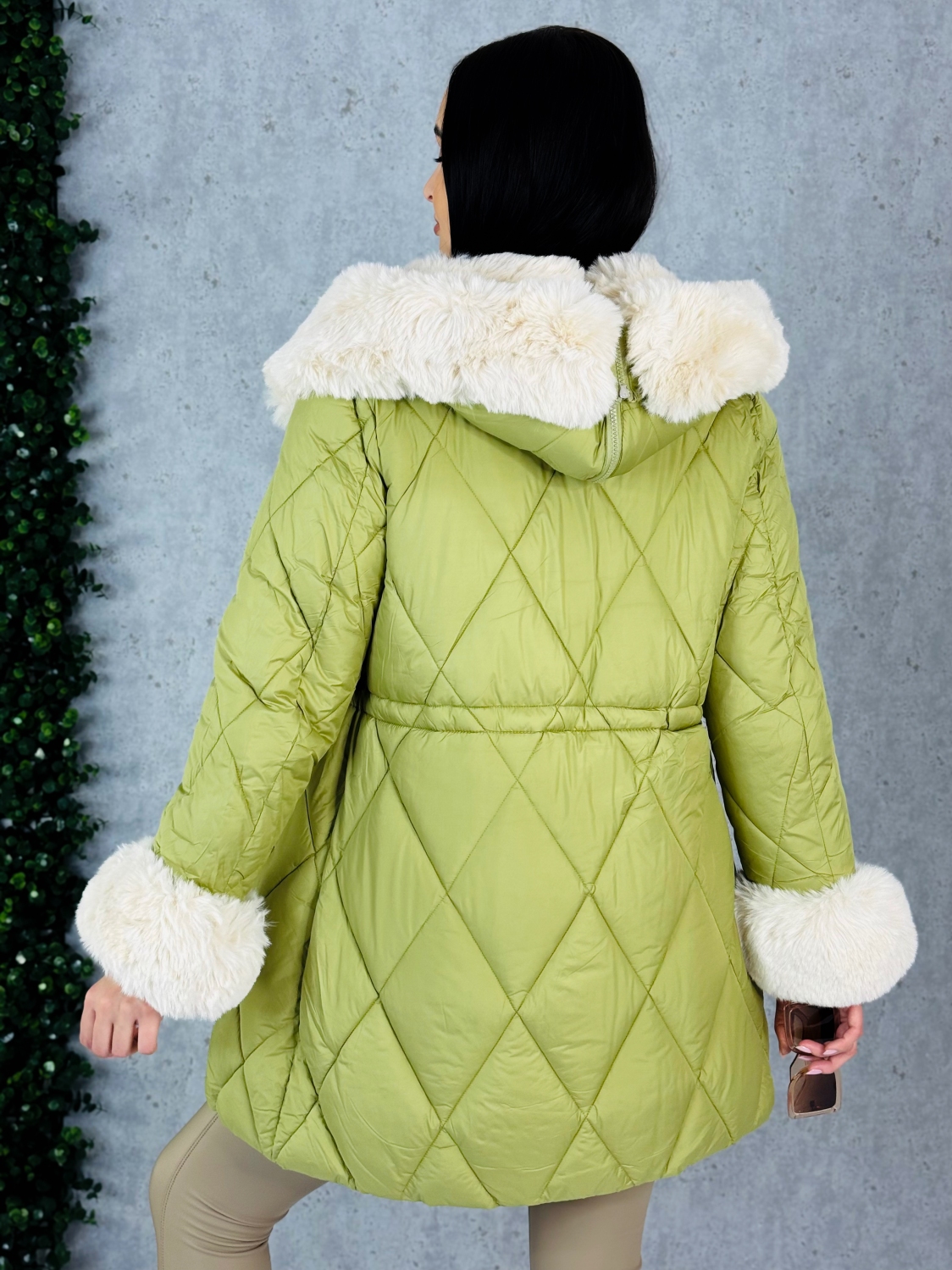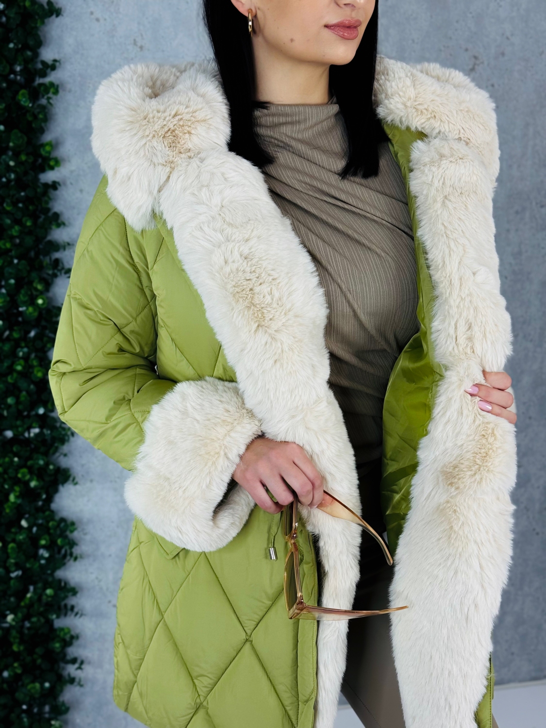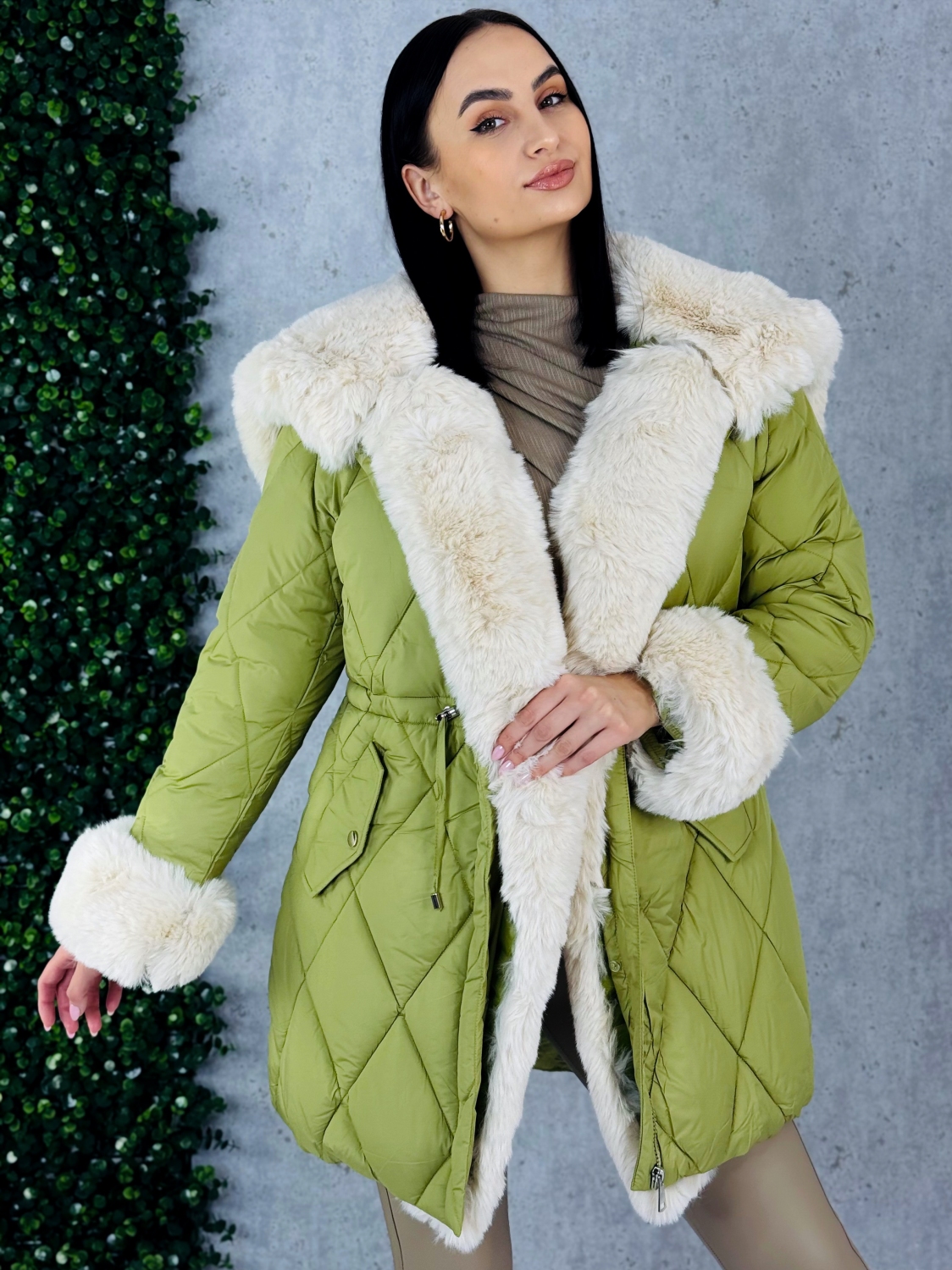 Dámska exkluzívna prešívaná zimná vetrovka s odnímateľnou kožušinou v prednej časti. Vetrovka je kvalitná a precízne prepracovaná. Bunda má zapínanie na zips a v páse je možné ju stiahnuť. Zateplený kožušinový límec okolo zapínania pôsobí veľmi luxusne a extravagantne. Tento límec je možné odopnúť. Kapucňa je strede zdobená zipsom, ktorý je možné prípadne rozopnúť, čo dodá bunde zaujímavý efekt. V tejto vetrovke Vám rozhodne zima nebude. Dĺžka vetrovky je nad kolená. Vetrovku je možné nosiť k akémukoľvek outfitu - či si ju oblečiete k športovému outfitu alebo svetríkovým šatám, vždy to bude trefa do čierneho. Na oboch stranách bundy sú vrecká. Vo vnútri vetrovky je gumička, ktorá slúži na stiahnutie v páse. Rukávy sú ozdobené umelou kožušinou, čo dodáva vetrovke luxusný look, je možné ich odopnúť. Perfektný materiál je túto sezónu v kurze, tak neváhajte a kúpte si aj vy tento #musthave kúsok. Trendy kúsok, ktorý vám nebude prekážať ani pri žiadnej fyzickej aktivite. Pohodlie v každých podmienkach. Modelka je vysoká 175 cm a má oblečenú veľkosť M.