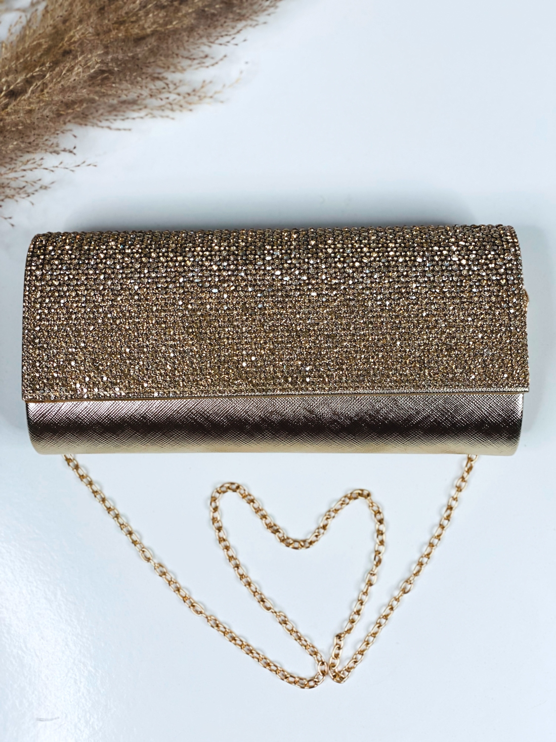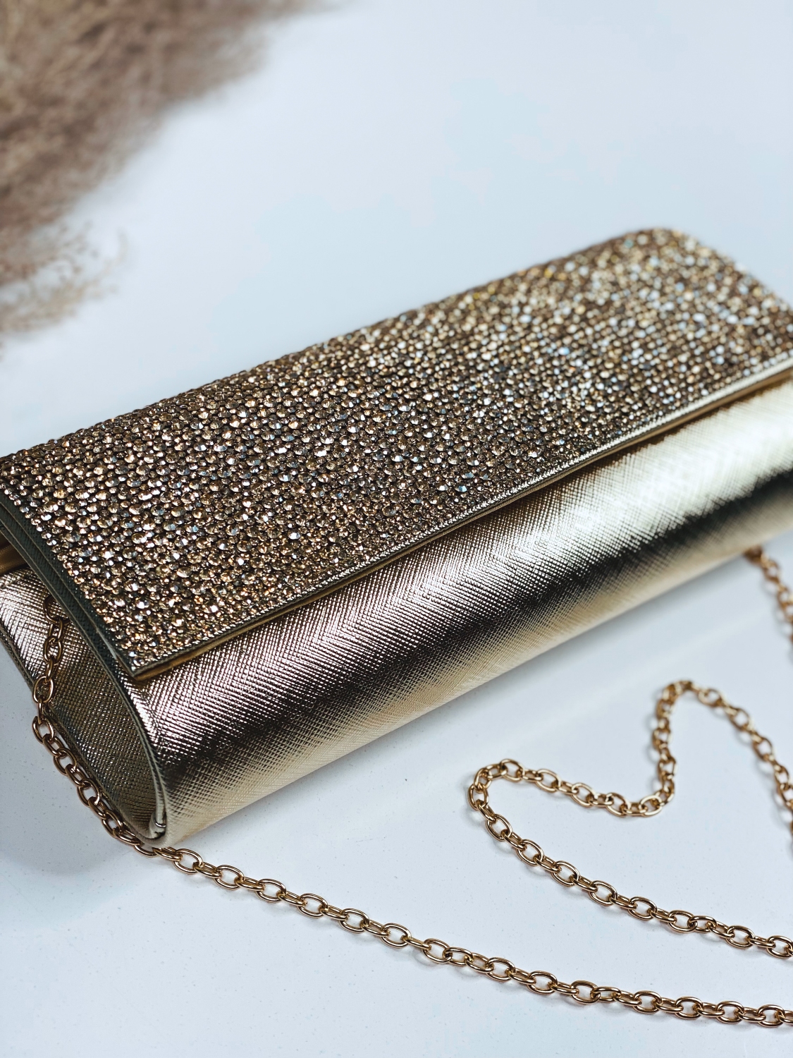 Výnimočné chvíle si žiadajú výnimočné doplnky. Táto elegantná spoločenská kabelka je stvorená pre ženy, ktoré milujú lesk, štýl a štipku luxusu. Je bohato zdobená trblietavými kamienkami, ktoré nádherne odrážajú svetlo a pri každom pohybe vytvárajú očarujúcu hru odleskov. Kompaktný, no premyslený tvar ponúka dostatok miesta na všetky nevyhnutnosti – rúž, telefón či drobné zrkadielko. Praktický remienok umožňuje nosenie v ruke ako elegantné psaníčko, alebo pohodlne cez rameno, keď si želáte mať ruky voľné. Tento spoločenský kúsok dokonale doplní večerné šaty, kokteilové outfity aj elegantný nohavicový kostým. Kabelka pôsobí noblesne, no zároveň moderne – ideálna na ples, svadbu, večeru či galavečer.