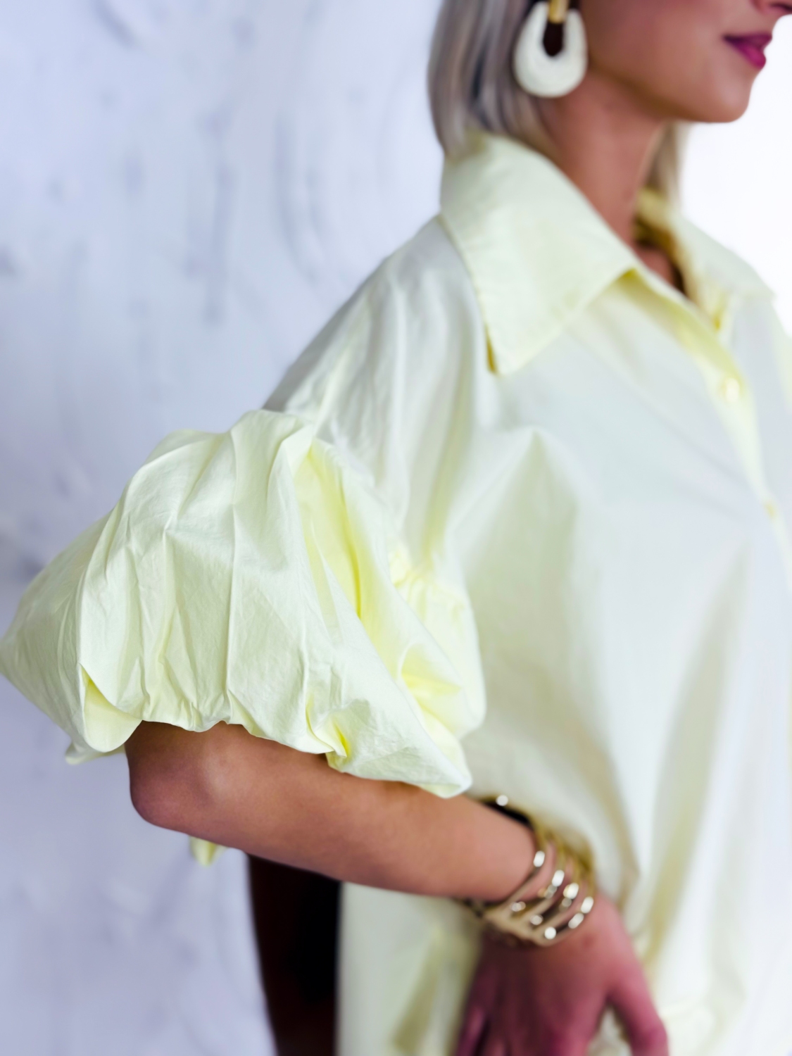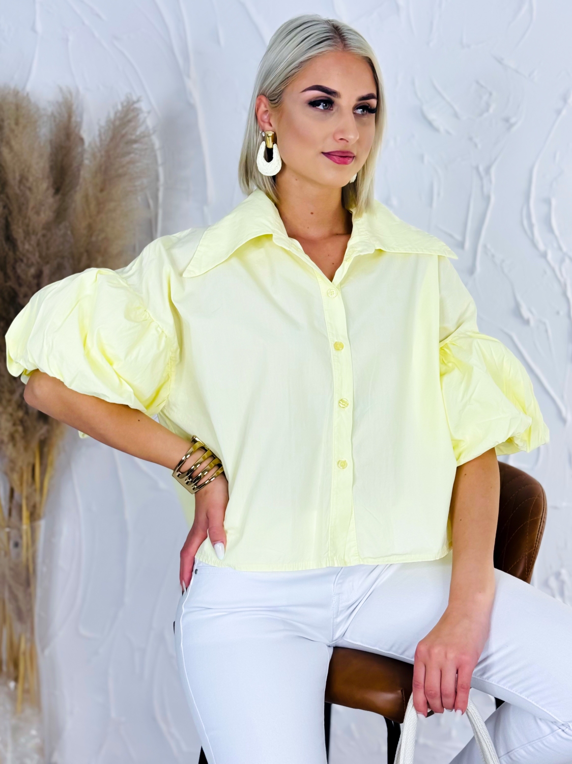 Dámska košeľa s balónovými rukávmi a zapínaním na gombíky vpredu je štýlový a zároveň praktický kúsok, ktorý spája klasický dizajn s modernými detailmi. Kratší strih pôsobí sviežo a trendy, pričom pekne zvýrazní pás a ľahko sa kombinuje s nohavicami alebo sukňami s vyšším pásom. Balónové rukávy dodávajú košeli výrazný a ženský charakter, vďaka čomu pôsobí elegantne, no zároveň zaujímavo a originálne. Klasické zapínanie na gombíky vpredu zachováva jej nadčasový vzhľad a umožňuje jednoduché nosenie aj vrstvenie podľa potreby. Materiál zo 100 % bavlny zabezpečuje maximálne pohodlie počas celého dňa, je priedušný, príjemný na dotyk a vhodný aj na citlivejšiu pokožku. Košeľa je ideálna na každodenné nosenie, do práce, na stretnutia aj voľný čas, kde chceš pôsobiť upravene a štýlovo bez zbytočnej námahy.
