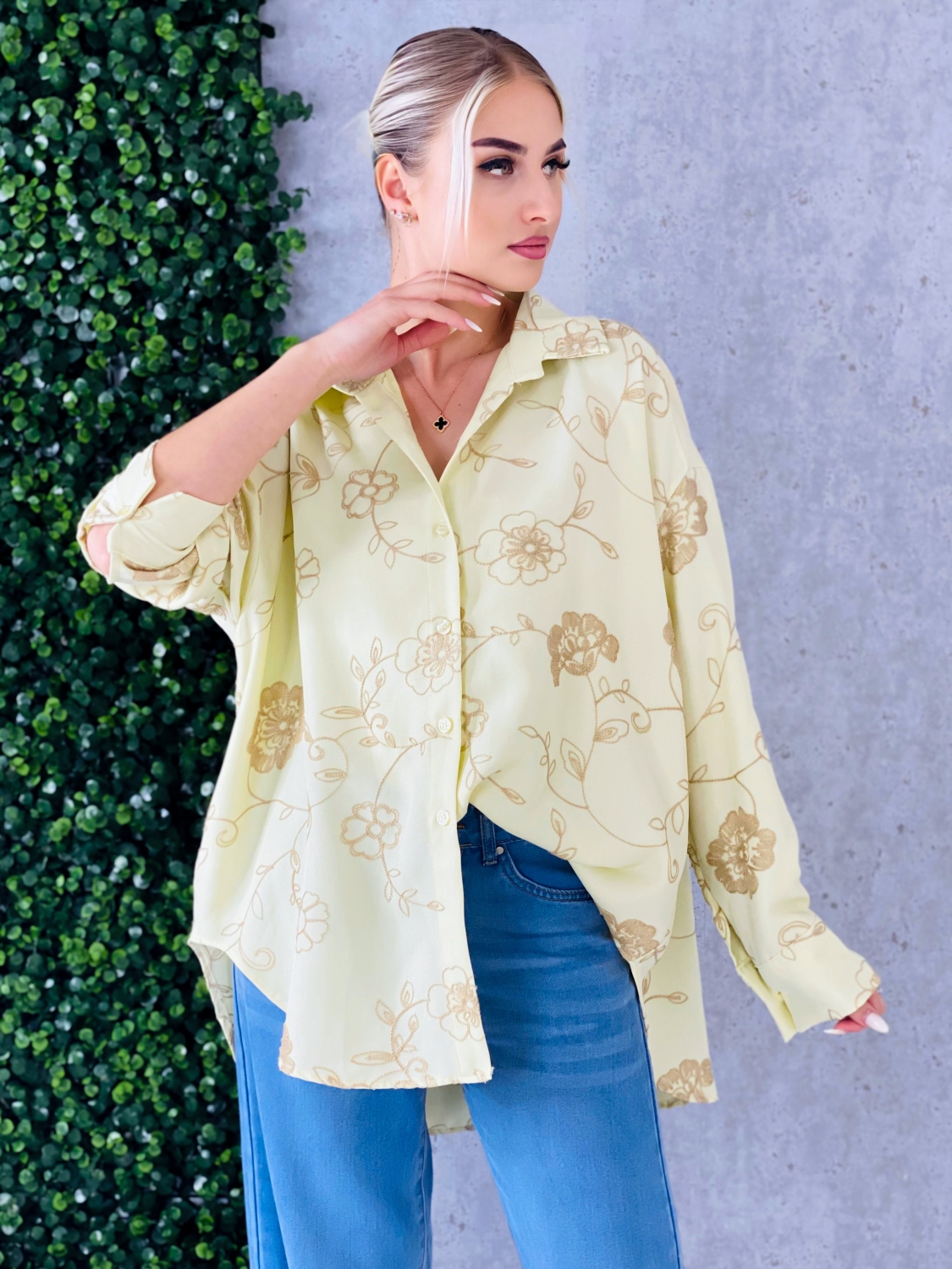 Dámska žltá blúzka s nášivkami je štýlový a originálny kúsok, ktorý zaujme na prvý pohľad svojou jasnou farbou, ktorá rozžiari každý outfit a dodá mu svieži a energický vzhľad, blúzka je vyrobená z príjemného, jemného a ľahko priedušného materiálu, ktorý je pohodlný na nosenie počas celého dňa, má klasický, mierne voľný strih, ktorý lichotí rôznym typom postavy, a zároveň elegantne padá, pričom zadná časť blúzky je o niečo dlhšia ako predná, čo vytvára moderný efekt a opticky predlžuje postavu, vpredu sa nachádza praktické zapínanie na gombíky, ktoré umožňuje jednoduché obliekanie a zároveň dodáva blúzke jemný detail, blúzka je zdobená originálnymi nášivkami, ktoré jej dodávajú hravý a moderný charakter, strih a dĺžka sú ideálne na kombinovanie s nohavicami, sukňou alebo rifľami, čo z nej robí univerzálny kúsok vhodný na každodenné nosenie, do práce, na voľný čas alebo na spoločenské príležitosti, a celkový dizajn blúzky spája pohodlie, štýl a originálne detaily, vďaka čomu sa stáva neodolateľnou súčasťou šatníka každej ženy, ktorá chce vyzerať sviežo, moderne a zároveň elegantne.