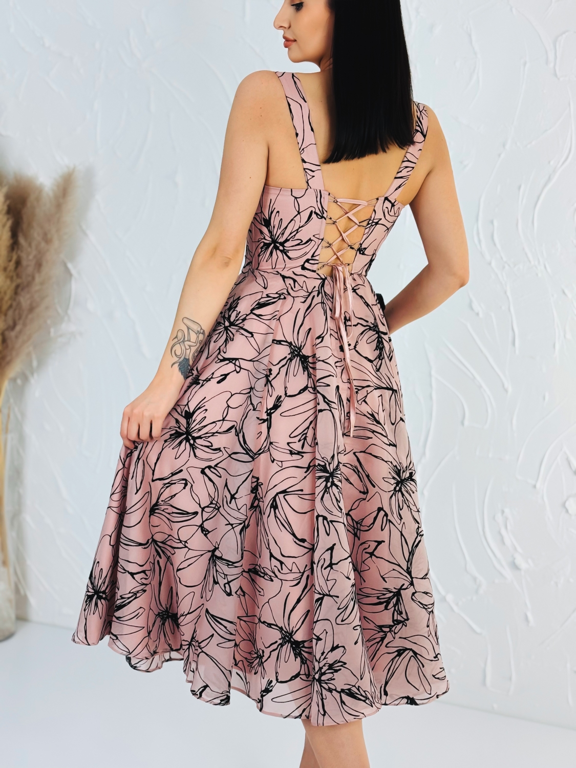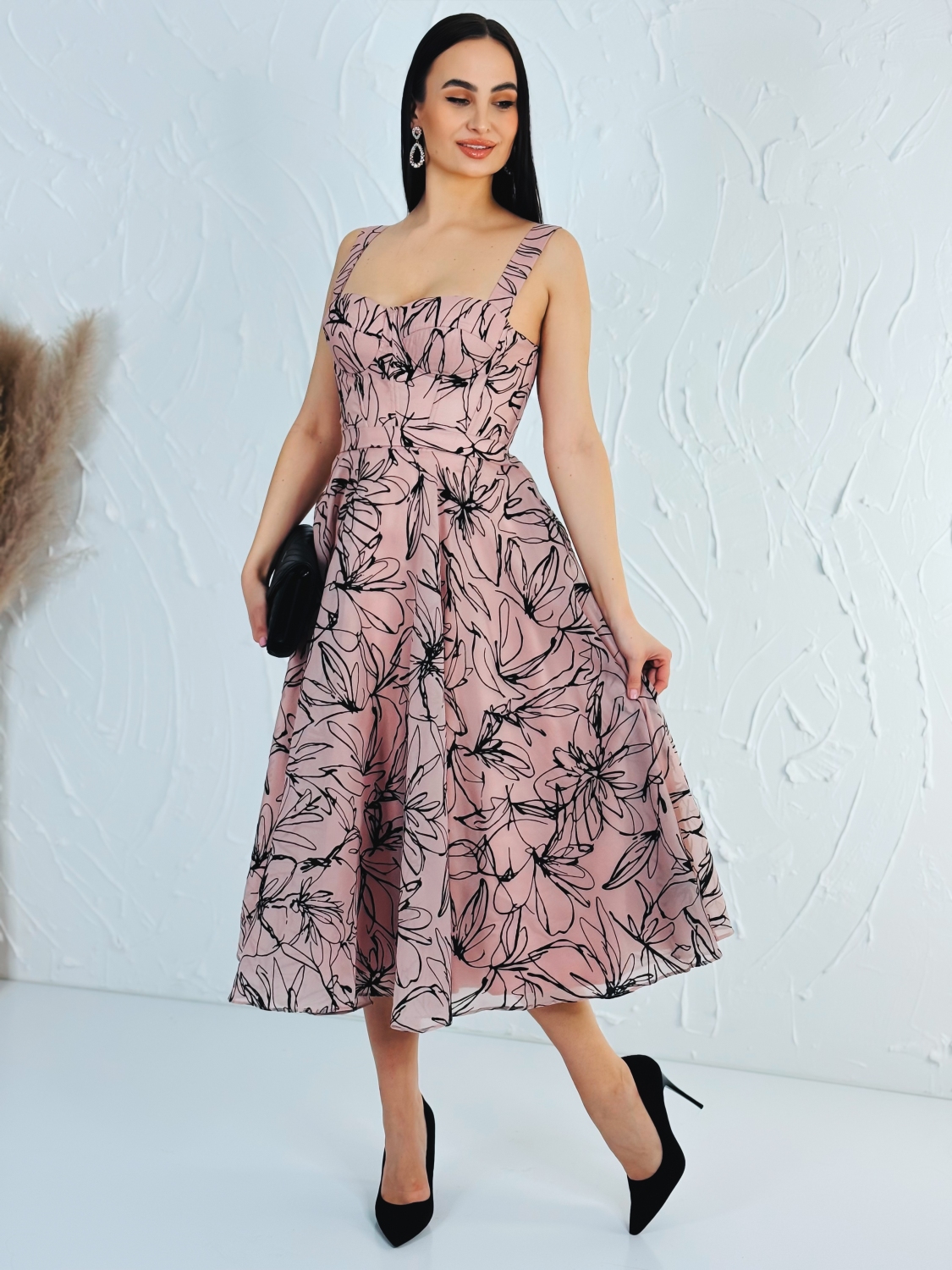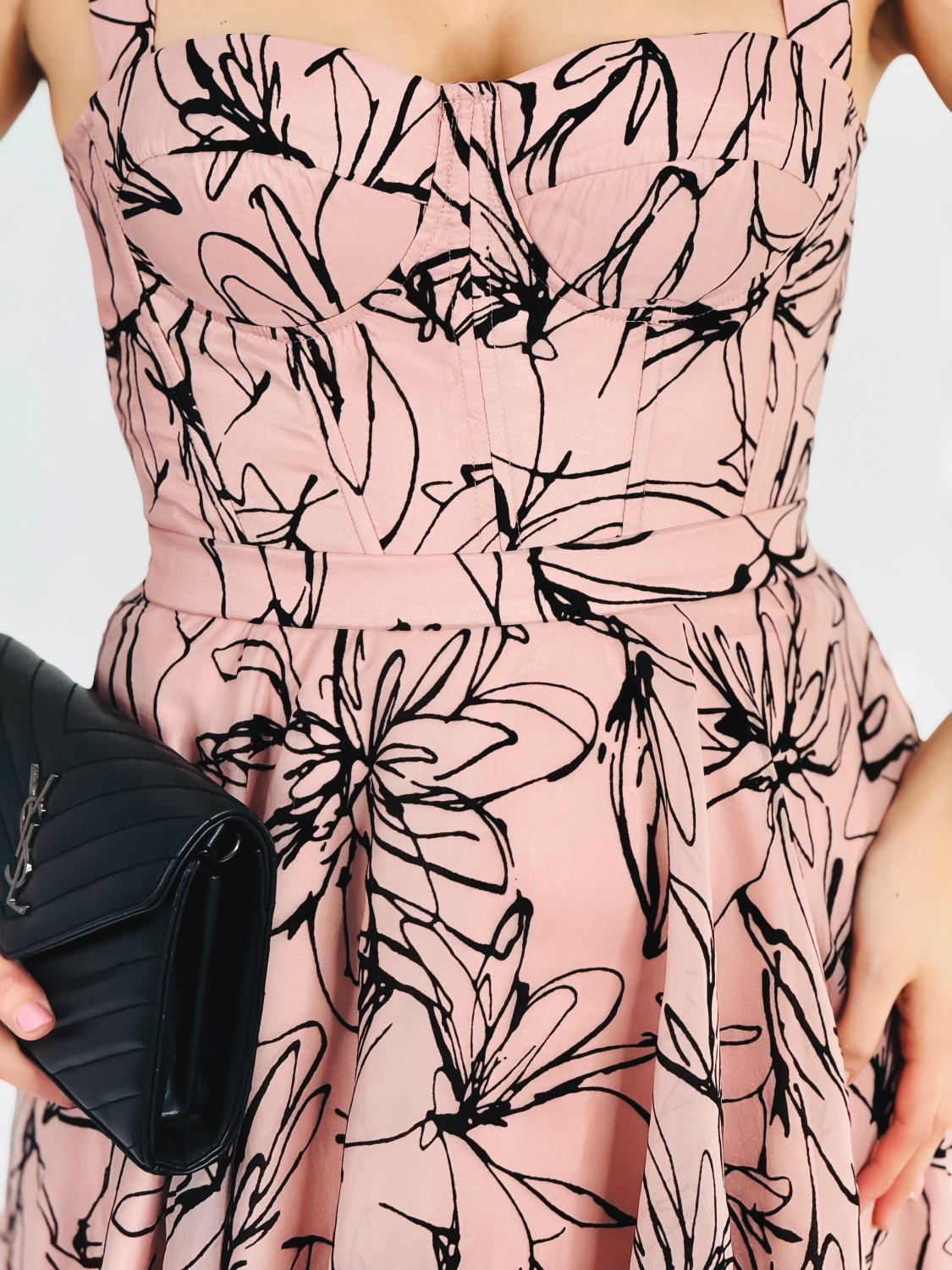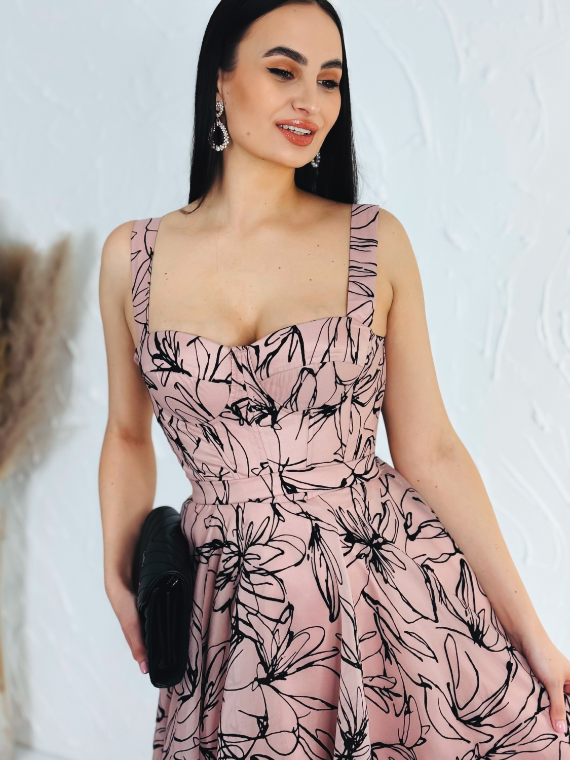 Tieto dámske midi šaty sú stelesnením ženskosti, elegancie a nadčasového štýlu. Jemný béžovo-púdrový základ v kombinácii s kontrastným kvetinovým vzorom pôsobí romanticky a zároveň veľmi vkusne. Korzetový vrch krásne tvaruje postavu, zvýrazňuje dekolt a dodáva šatám luxusný nádych. Áčková midi sukňa s ľahkosťou splýva pri pohybe, vďaka čomu pôsobia šaty vzdušne a elegantne. Model je ideálny na spoločenské udalosti, oslavy, svadby, plesy, letné večierky či výnimočné príležitosti, kde chcete zažiariť bez zbytočnej okázalosti. Šaty sa nádherne kombinujú s jemnými sandálkami, lodičkami aj elegantným bolerkom či kožúškom. Príjemný materiál zabezpečuje komfort počas celého nosenia a pôsobí luxusne aj naživo. Ak hľadáte šaty, ktoré zvýraznia vašu ženskosť, dodajú sebavedomie a zároveň budú pôsobiť jemne a noblesne, tento midi model je tou správnou voľbou. Naživo sú ešte krajšie a zanechajú nezabudnuteľný dojem.