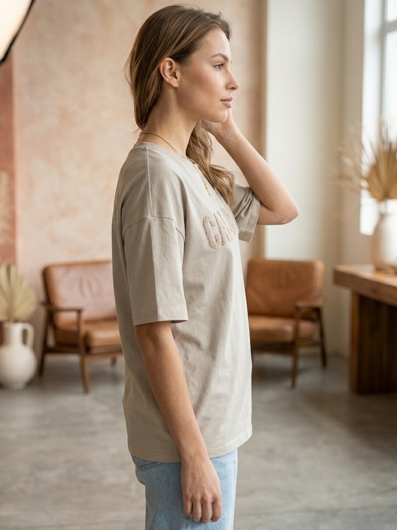 Dámske bavlnené tričko s krátkym rukávom v modernom oversize strihu je ideálnou voľbou pre ženy, ktoré milujú pohodlie, voľnosť pohybu a nadčasový štýl. Trendový voľnejší strih krásne sedí na postave, pôsobí ležérne a zároveň štýlovo, vďaka čomu sa tričko ľahko kombinuje s rôznymi outfitmi na každý deň. Predná časť je doplnená výrazným nápisom California, ktorý dodáva tričku svieži a uvoľnený vibe. Tričko je vyrobené z kvalitného bavlneného materiálu, ktorý je príjemný na dotyk, mäkký, priedušný a pohodlný počas celého dňa. Bavlna je obľúbená pre svoje prirodzené vlastnosti, dobre sa nosí, nedráždi pokožku a je vhodná aj na každodenné používanie. Krátky rukáv zabezpečuje komfort najmä počas teplejších dní, no tričko sa výborne hodí aj pod mikinu, bundu alebo košeľu v chladnejšom období.Oversize strih je momentálne veľmi obľúbený, pretože poskytuje maximálne pohodlie a zároveň pôsobí moderne a štýlovo. Tričko môžete nosiť k rifliam, legínam, šortkám či sukni a vytvoriť tak športový, mestský alebo casual outfit podľa vlastného štýlu. Je vhodné na bežné nosenie, voľný čas, nákupy, cestovanie aj oddych.
