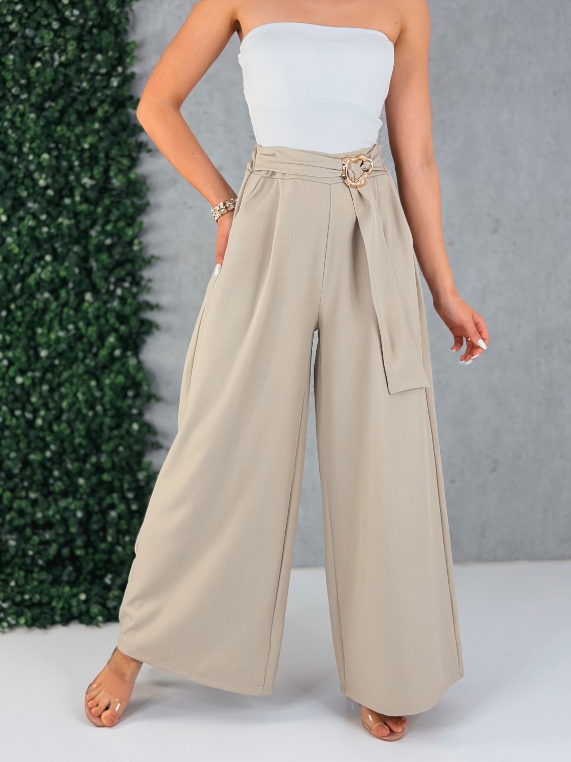 Dámske široké nohavice elegantné so sťahovaním v páse sú univerzálny kúsok, ktorý dokonale sadne postave od XS po XL a stane sa neoddeliteľnou súčasťou každého moderného šatníka. Ich premyslený strih vyniká voľnými, splývavými nohavicami, ktoré pôsobia žensky, vzdušne a zároveň veľmi sofistikovane. Vďaka pružnému pásu so sťahovaním sa nohavice prispôsobia rôznym typom postavy, zvýraznia pás a zabezpečia maximálne pohodlie počas celého dňa, či už ich nosíš do práce, na stretnutie alebo na večernú príležitosť. Materiál je príjemný na dotyk, ľahký a dobre drží tvar, čo zaručuje elegantný vzhľad bez zbytočného krčenia. Široké nohavice opticky predlžujú nohy a vytvárajú štíhlu siluetu, pričom poskytujú voľnosť pohybu, ktorú oceníš najmä počas dlhého nosenia. Tento model je ideálny na kombinovanie s jednoduchým topom, košeľou alebo sakom, vďaka čomu si vieš vytvoriť outfit presne podľa príležitosti – od ležérnej elegancie až po formálnejší look. Vďaka svojej univerzálnosti a nadčasovému dizajnu sú tieto nohavice skvelou voľbou pre ženy, ktoré hľadajú spojenie štýlu, komfortu a variability. Stačí zmeniť doplnky a obuv a z jedného kúsku vytvoríš množstvo rôznych outfitov, ktoré budú vždy pôsobiť upravene, žensky a moderne.