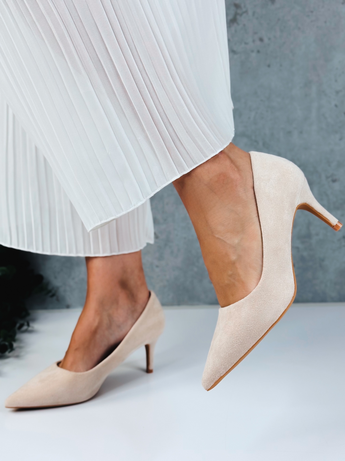 Tieto dámske béžové semišové lodičky sú dokonalou voľbou pre ženy, ktoré milujú nadčasový štýl a pohodlie v jednom. Ich jemný semišový povrch pôsobí luxusne a veľmi vkusne, vďaka čomu sa stanú ideálnym doplnkom nielen na spoločenské udalosti, ale aj do práce či na bežné nosenie. Neutrálna béžová farba krásne ladí s akýmkoľvek outfitom a opticky predlžuje nohy, čím vytvára elegantnú a ženskú siluetu. Opätok s výškou 7 cm je ideálny kompromis medzi štýlom a komfortom – dodá ti výšku a sebavedomie, no zároveň zabezpečí pohodlie aj počas celodenného nosenia. Klasický strih a precízne spracovanie robia z týchto lodičiek univerzálny kúsok, ktorý nikdy nevyjde z módy a vždy dodá tvojmu looku ten správny šmrnc.