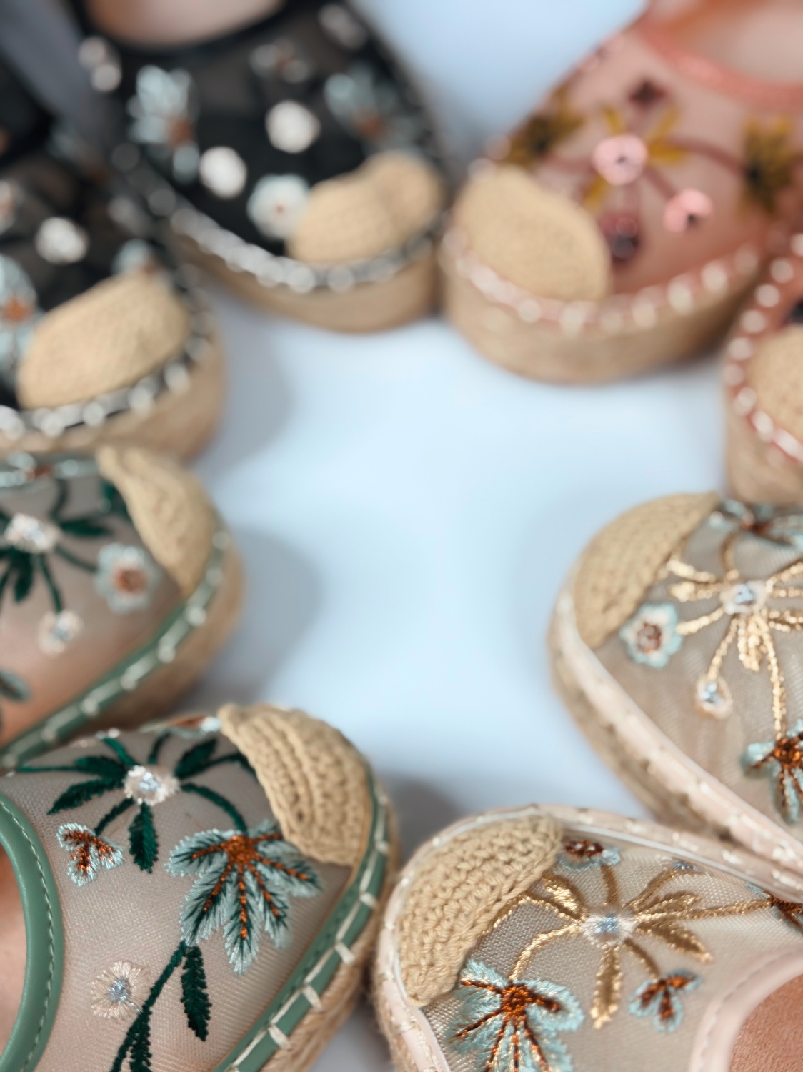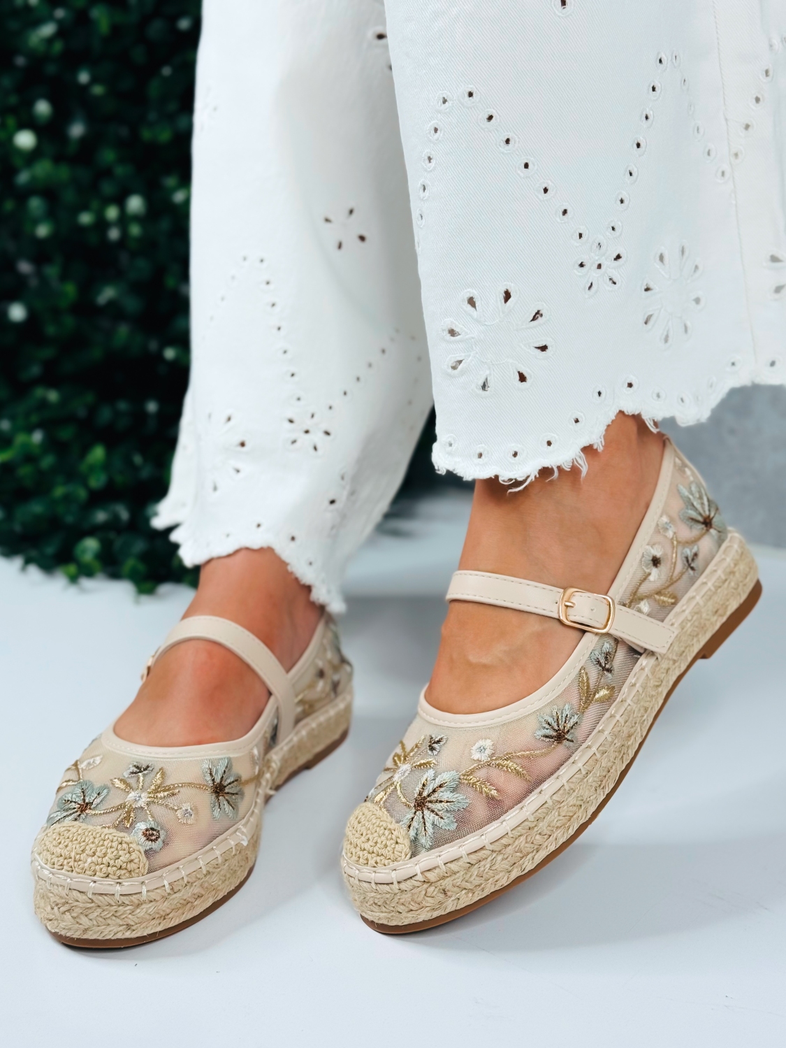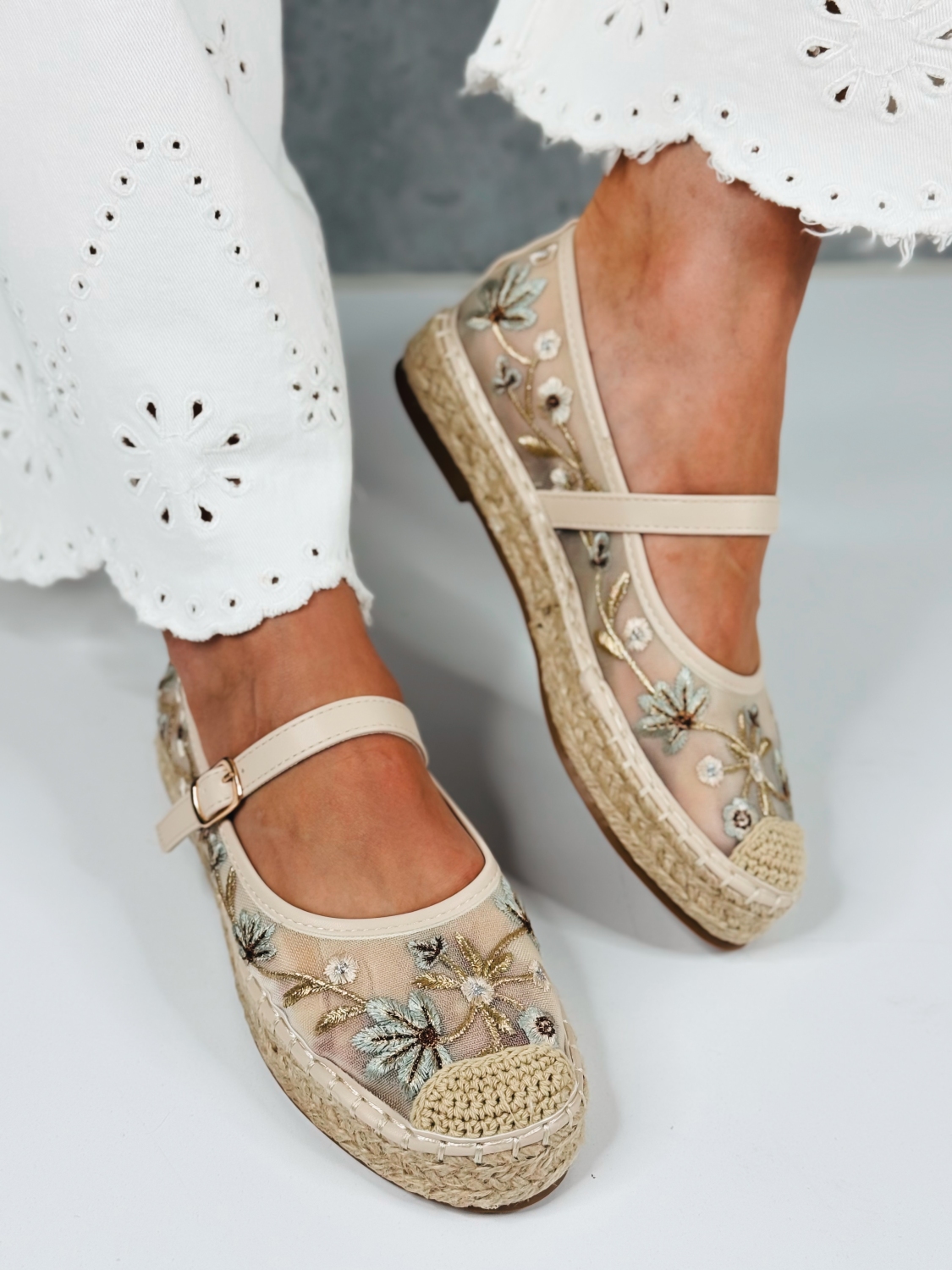 Tieto dámske vyšívané espadrilky sú stelesnením jemnosti, romantiky a letnej elegancie. Ich jedinečný dizajn vyniká krásnou kvetinovou výšivkou na prednej časti, ktorá dodáva obuvi originálny a ženský charakter. Precízne spracovaná výšivka pôsobí luxusne a zároveň hravo, čím dokonale oživí každý outfit. Zvršok espadriliek je vyrobený z príjemného textilného materiálu, ktorý je ľahký, priedušný a ideálny na teplé dni. Vnútro topánok poskytuje komfort pri nosení, zatiaľ čo klasická espadrilková podrážka s prírodným vzhľadom dodáva modelu autentický letný štýl. Remienok okolo členka zabezpečuje stabilitu a pevné držanie nohy, pričom zároveň pôsobí veľmi elegantne a zvýrazňuje ženskosť. Vďaka nemu espadrilky perfektne sedia na nohe a sú vhodné aj na dlhšie prechádzky či celodenné nosenie.