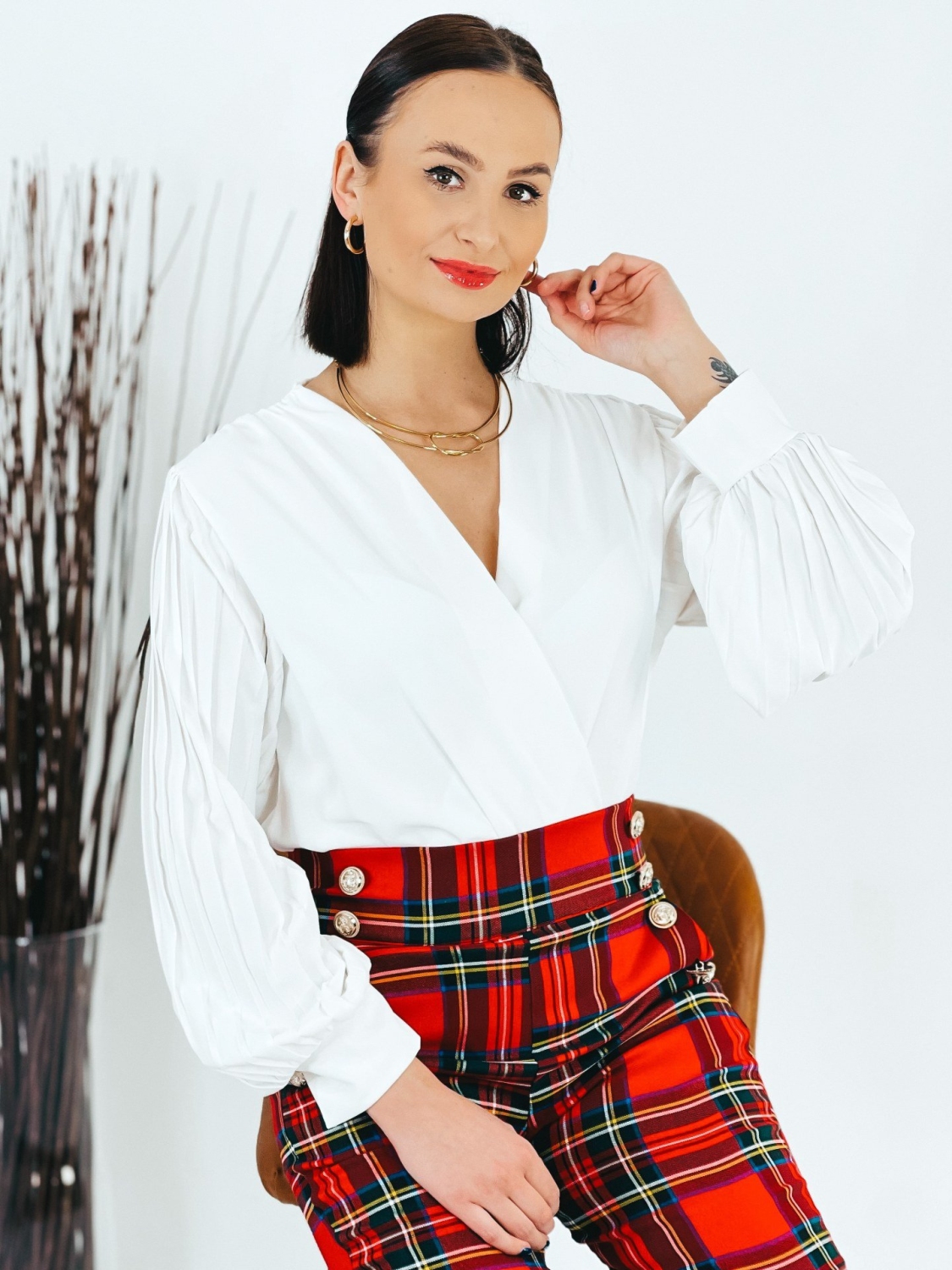 Dámske body v bielej farbe Vám zaiste vykúzli dokonalý outfit. Neveríte? Tak si ich skúste! Možnosť vrátenia do 14 dní. Tieto mega trendy body perfektne zoštíhlia postavu a Vy sa v nich budete cítiť pohodlne a sexy! Materiál je pohodlný a padavé rukávy zaistia komfort. Ak teda hľadáte niečo vkusné a elegantné, tieto body sú tou správnou voľbou. Ich kúpu určite neoľutujete, pretože si ich doladíte ku akémukoľvek outfitu. Modelka je vysoká 175 cm a oblečenú má veľkosť UNI.