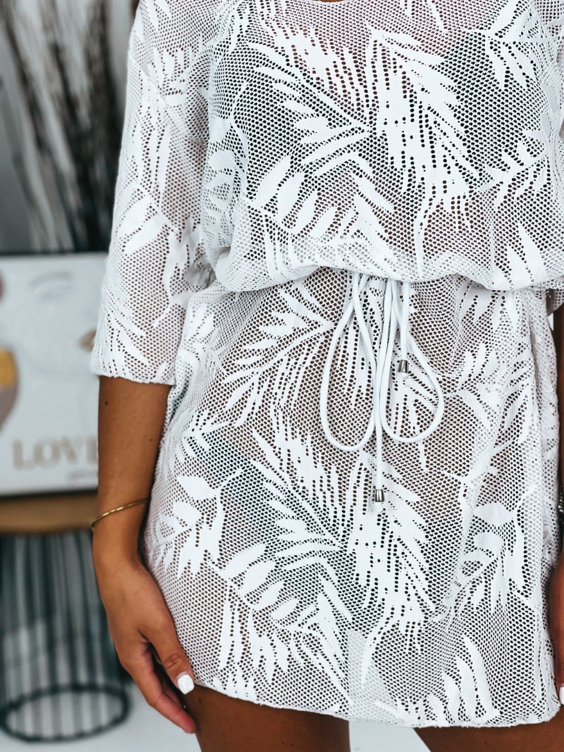 Dámske čipkované biele kimono s viazaním v páse. Plážové kimono je všestranný kúsok, ktorý Vám túto sezónu nesmie v šatníku chýbať. Obliecť si ho môžete na bežný deň, alebo na plavky k vode (ako prehoz na plavky). Plážove kimono je neodmysliteľná súčasť plážovej výbavy na toto a určite aj budúce leto, povynná výbava na každú letnú dovolenku, či pobyt pri vode. Letné kimono si obľúbi každá z Vás. Je zložené z pohodlného a elastického materiálu. Modelka má výšku 173 cm a oblečenú má veľkosť M. Doručenie ihneď, všetok tovar skladom.