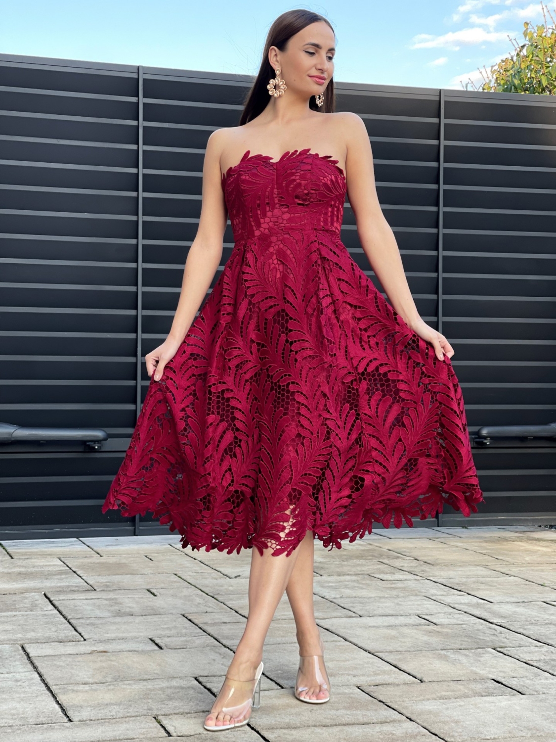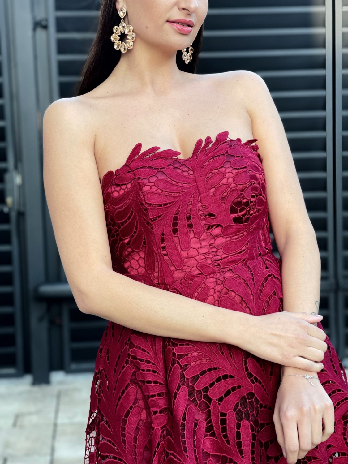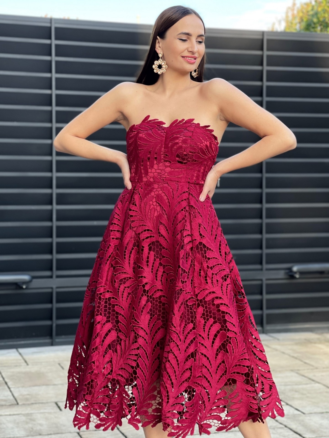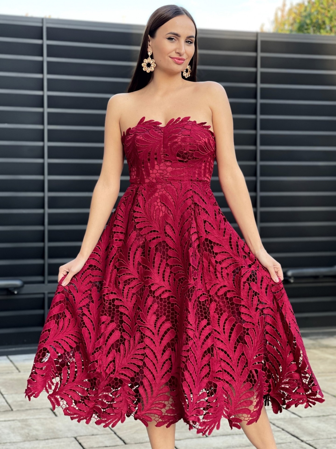 Dámske exkluzívne spoločenské, dlhé šaty na ramienka, ktoré sú doplnené čipkou. Vhodné aj na redový tanec. Nádherná a neodolateľná bordová farba Vás okamžite dostane. Dokonalé šaty, na dokonalú príležitosť - sen každej slečny, ženy, dámy. Príjemný materiál, ktorý sa skvelo prispôsobí postave. Šaty sú z príjemného a kvalitného materiálu. Tento model využijete na spoločenské príležitosti ako svadby a oslavy. Zapínanie je vzadu na zips a šnurovačku. Šaty majú aj nastaviteľné odnímateľné ramienka. Šaty môžete doplniť spoločenskou kabelkou a lodičkami. V týchto šatách upútate každé očko.
