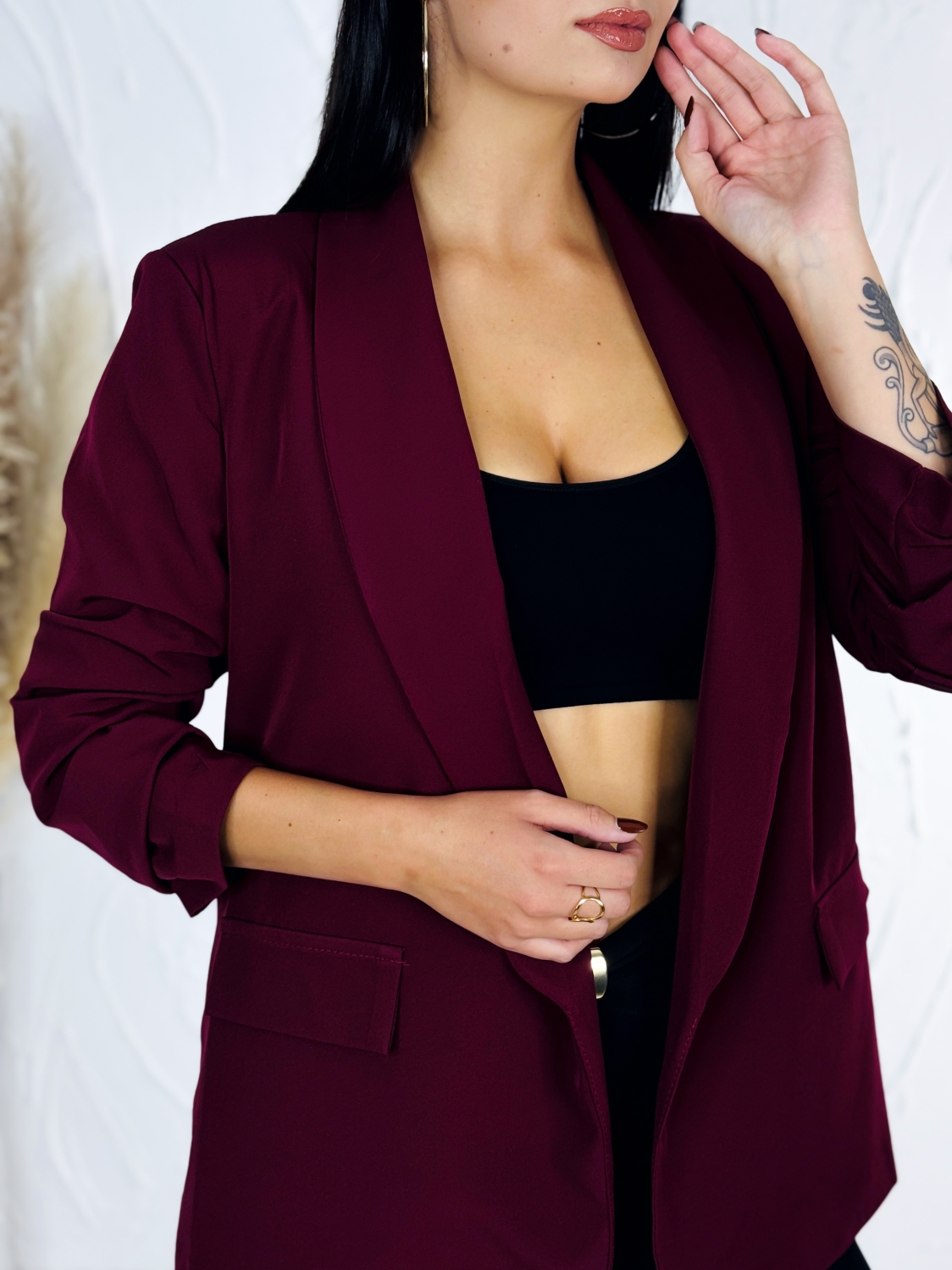 Dámske exkluzívne sako, ktoré je v jednoduchom prevedení a bez zapínania. Sako vhodné do práce aj na rande do mesta. Zaujímavá je aj štruktúra saka, ktorá Vás dostane. Nadčasové a mimoriadne praktické. Vyrobené z kvalitného a pohodlného materiálu. Vrecká na oboch stranách sú falošné. Dámske sako nemusíte nosiť výlučne k sukni či elegantným nohaviciam. Môžete k nemu doladiť aj ležérny outfit s teniskami. Modelka je vysoká 175 cm a oblečenú má veľkosť UNI.