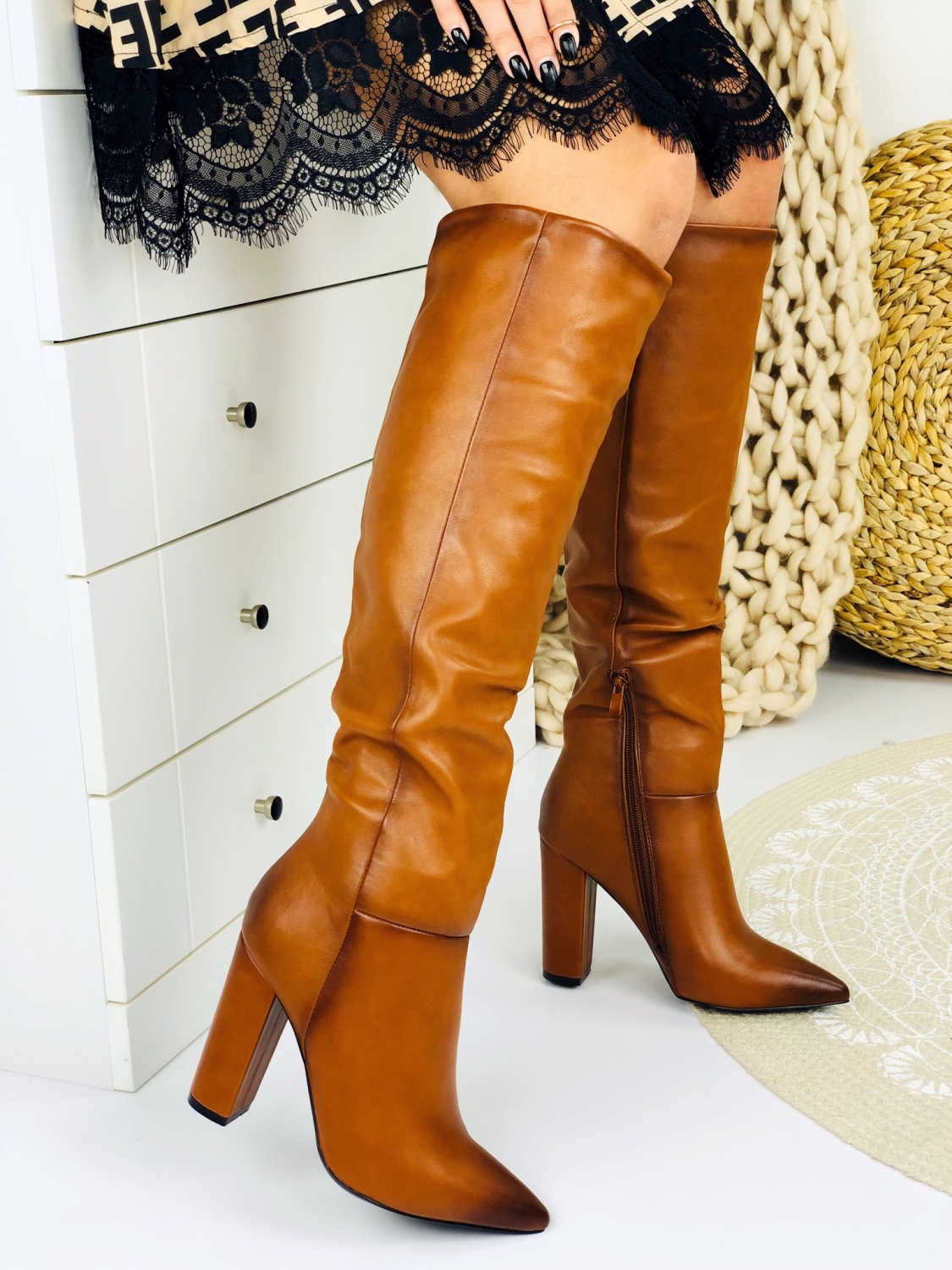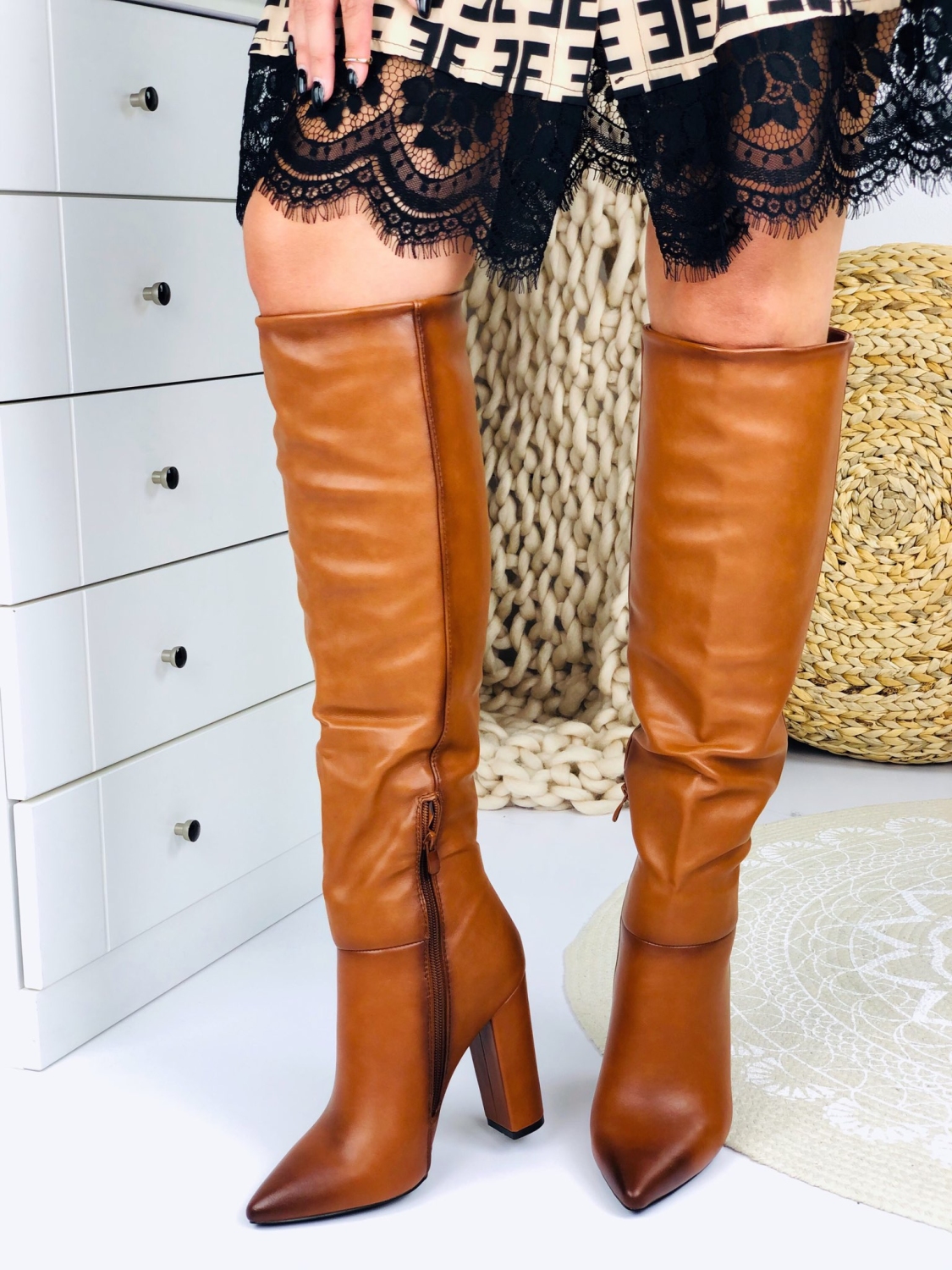 Dámske vysoké čižmy pod kolená v camel farbe. Vďaka elegantnému strihu a hrubému 10,5cm opätku budete vyzerať veľmi štýlovo. Veľmi pohodlný a trendový model na každodenné nosenie. Môžete si ich obliecť do práce, na prechádzky alebo len tak do mesta na kávu. Môžete v nich vyraziť kamkoľvek. Čižmy majú zateplené vnútro. Zapínanie zboku na zips. Veľkosti sedia presne.