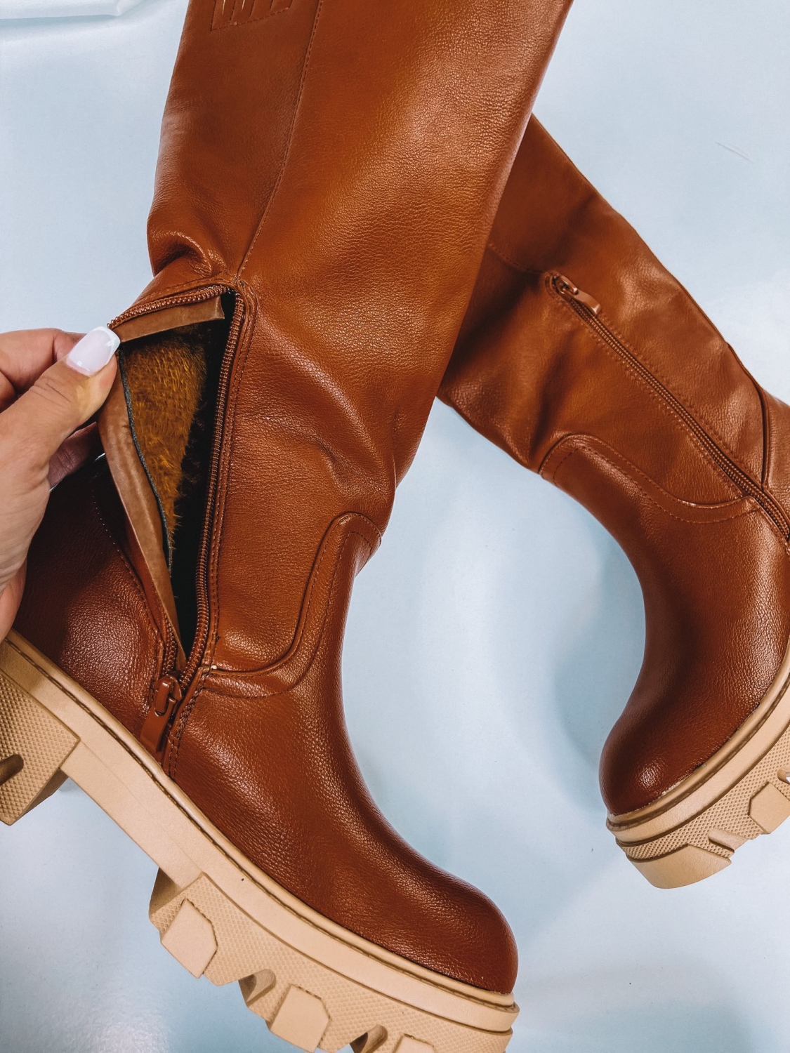 Trendy kúsok dámskych vysokých camel čižiem pod kolená, ktoré sú maximálne pohodlné, zateplené a zapínajú sa zvnútra na zips. Ešte ste nenašli vhodné čižmy, ktoré využijete od septembra do apríla? Tak my ich máme! Je to tento jedinečný kúsok zimných čižiem so širším vrchom. Vďaka pohodlnej platforme sa stanú Vašim obľúbeným kúskom v chladnejšom aj prechodnom období. Mierne elastický materiál sa prispôsobí každej nôžke. Vnútro je zateplené. Trendová vrubkovaná platforma je hitom posledných zím a tento rok tomu nebude inak. Bezpečné a trendové zároveň. Ak hľadáte niečo nadčasové a pohodlné - ste na správnej adrese. V tomto štýlovom kúsku určite neostanete bez povšimnutia. Trendový model na každodenné nosenie, či do práce, školy alebo len tak do mesta na kávu. Obujete si ich všade.