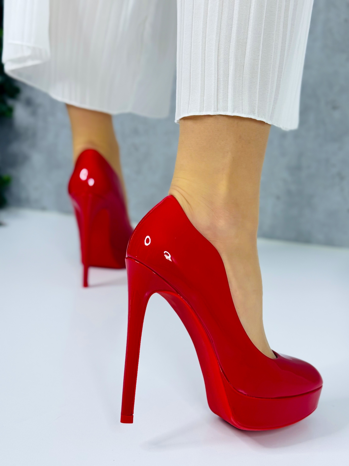 Tieto nádherné dámske lodičky sú stelesnením ženskosti, elegancie a sebavedomia. Nadčasový dizajn doplnený o vysoký štíhly podpätok a jemnú platformu zaručuje, že v nich budeš neprehliadnuteľná pri každej príležitosti. Lakovaný povrch pôsobí luxusne a dodáva topánkam sofistikovaný vzhľad. Vďaka univerzálnemu štýlu sa ľahko kombinujú s rôznymi outfitmi – či už si ich obuješ k šatám, sukni, kostýmu alebo úzkym rifliam. Sú ideálnou voľbou na svadby, oslavy, plesy, pracovné stretnutia aj večerné príležitosti. Vďaka premyslenému tvaru krásne obopnú nohu a zvýraznia ženské krivky. Sú stvorené pre ženy, ktoré sa chcú cítiť výnimočne, sebavedomo a štýlovo.