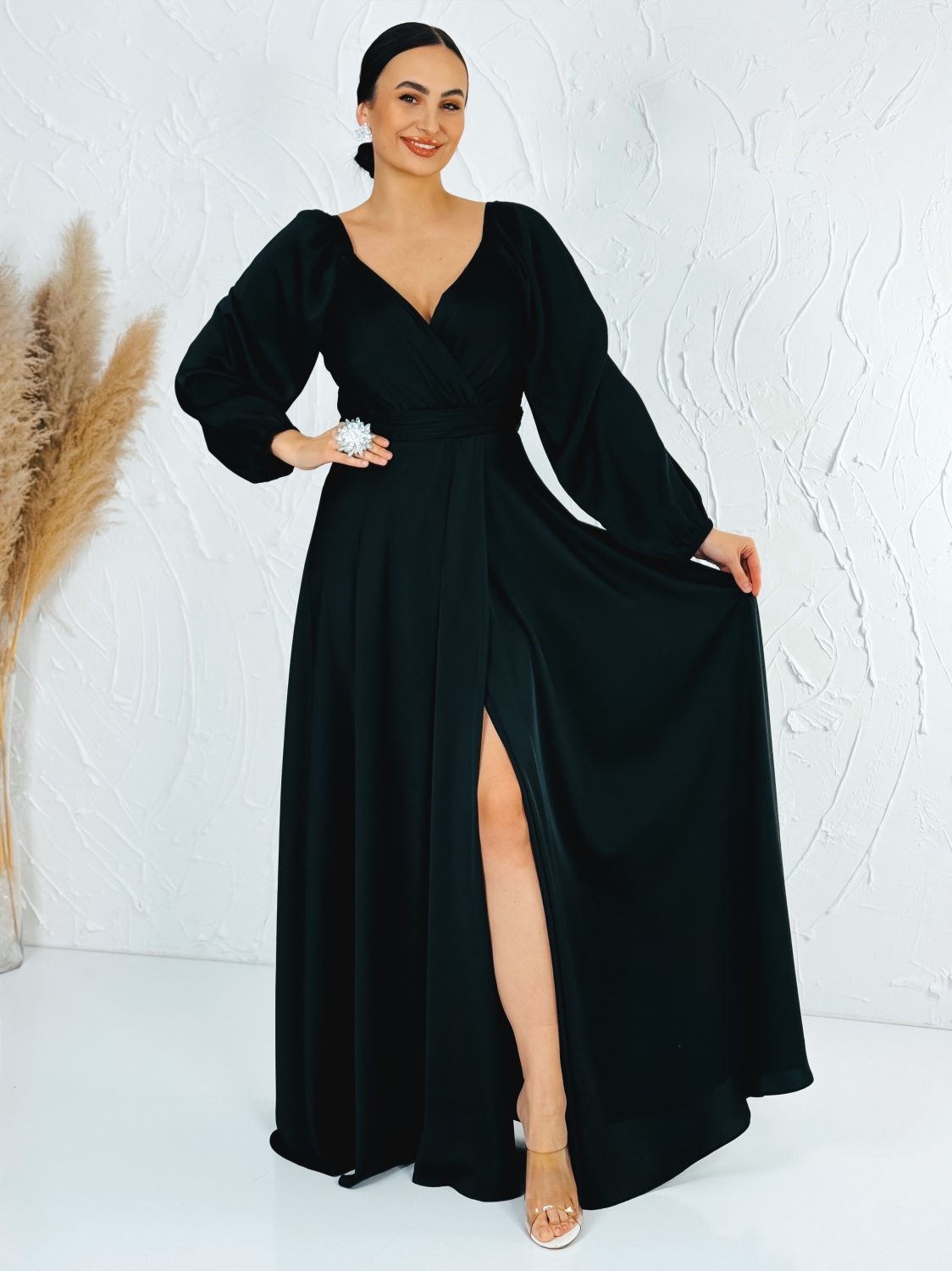 Dámske dlhé saténové spoločenské šaty s rozparkom sú navrhnuté tak, aby zvýraznili ženské krivky, poskytli maximálny komfort a dodali sebavedomie každej žene s plnšími tvarmi. Tento model spája nadčasovú eleganciu so zmyselnými detailmi a je ideálnou voľbou na plesy, svadby, spoločenské večery, stužkové, oslavy či iné výnimočné príležitosti, kde chcete pôsobiť noblesne a zároveň sa cítiť pohodlne. Jemný saténový materiál má luxusný lesk, krásne splýva po postave a opticky ju zoštíhľuje. Premyslený strih je prispôsobený potrebám moletiek – šaty elegantne obopnú krivky, netlačia a zároveň vytvárajú vyváženú a ženskú siluetu. Dlhá sukňa s rozparkom dodáva modelu šmrnc a zmyselnosť, zároveň umožňuje pohodlný pohyb a ľahkosť pri chôdzi či tanci. Zapínanie na zips vzadu je diskrétne, praktické a zabezpečuje jednoduché obliekanie bez narušenia čistého dizajnu šiat. Vrchná časť je navrhnutá tak, aby poskytovala dostatočnú oporu a komfort aj pri dlhšom nosení, vďaka čomu sa budete cítiť sebavedomo počas celého večera.