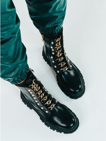 Dámske extravagantné vysoké čierne kanady, ktoré majú zateplené vnútro a sú doplnené zlatou reťazou, sa stanú Vašim obľúbeným kúskom pre toto zimné obdobie. Unikátne strihom. Tento štýlový kúsok je zaručene #bestseller pre túto sezónu a určite s ním neostanete bez povšimnutia. Veľmi pohodlný a trendový model dámskych čižiem na každodenné nosenie. Tento rok zabodujete s kanadami na akýkoľvek štýl. Obujete si ich všade. Čižmy majú zateplené vnútro. Pevná a vyvýšená podrážka Vám zabezpečí maximálny komfort. Kanady sa zapínajú z boku na zips. Veľkosti sedia presne.