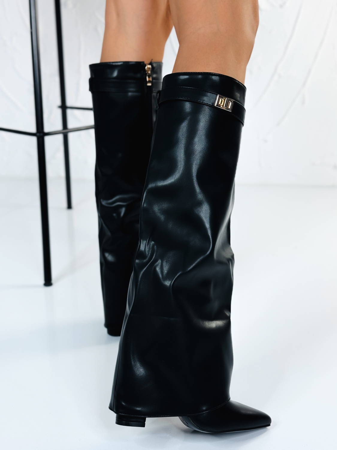 Dámske čierne čižmy v modernom štýle so zlatým detailom – jednoducho must-have tejto sezóny. Tieto čižmy kombinujú nadčasovú eleganciu s aktuálnymi trendmi. Vyrobené z mäkkej, na dotyk príjemnej koženky s jemným leskom, pôsobia luxusne, no stále zostávajú mimoriadne pohodlné. Ich špičatý tvar opticky predlžuje nohy a dodáva celému outfitu sofistikovaný nádych. V hornej časti majú decentnú zlatú ozdobu so zapínaním, ktorá okamžite pritiahne pozornosť – drobný detail, ktorý robí veľký rozdiel. Bočné zapínanie na zips zaručí jednoduché obúvanie a dokonalé prispôsobenie lýtku, zatiaľ čo opätok poskytuje stabilitu a pohodlie na každý deň. Či už ich skombinuješ s úzkymi džínsami, krátkou sukňou alebo pletenými šatami, vždy vytvoria dojem čistého, elegantného a premysleného štýlu. Sú ideálne na dni, keď chceš vyzerať žensky, ale bez zbytočného preháňania – jednoducho štýl, ktorý hovorí sám za seba.