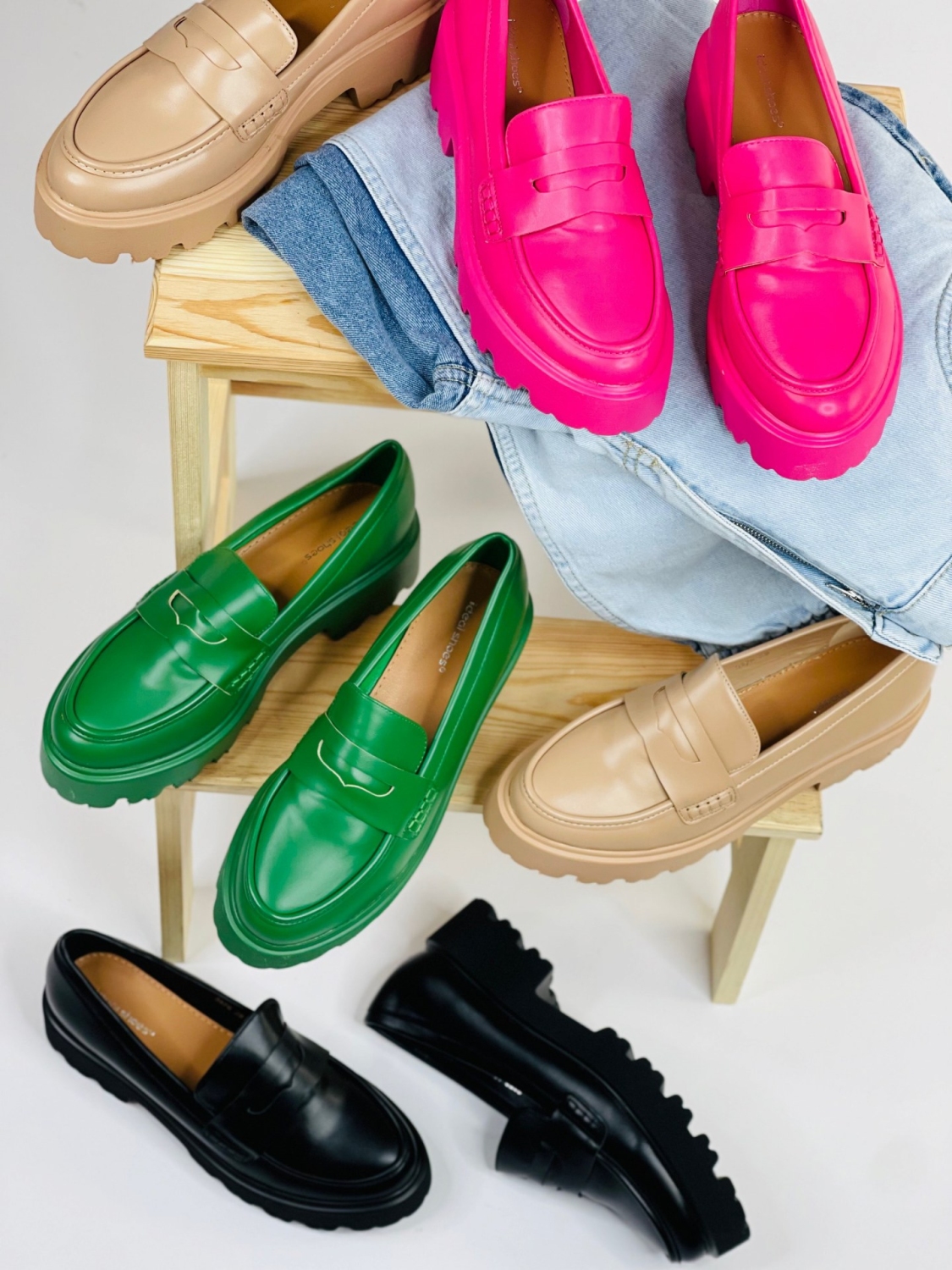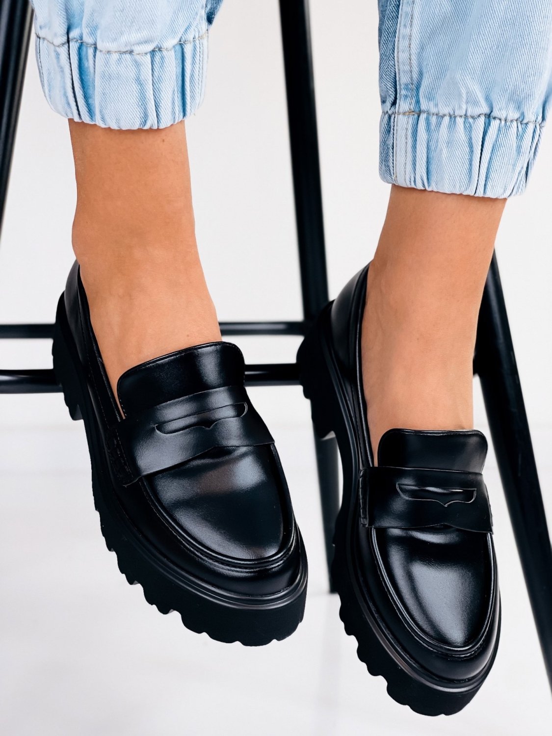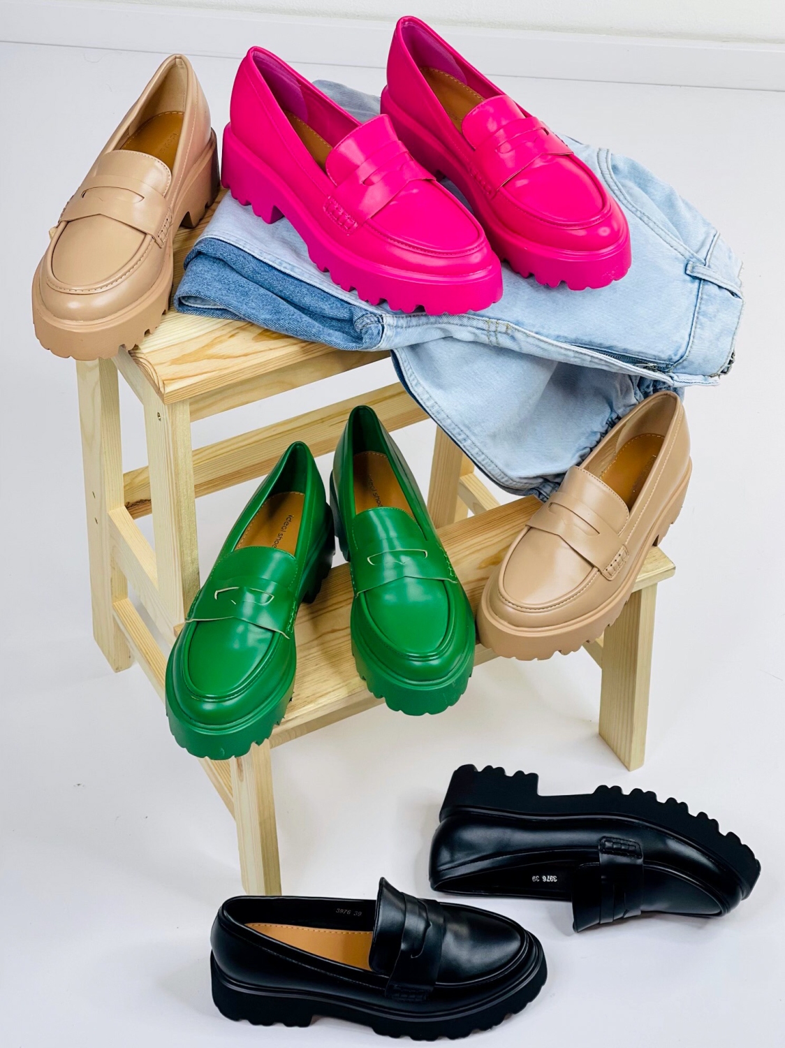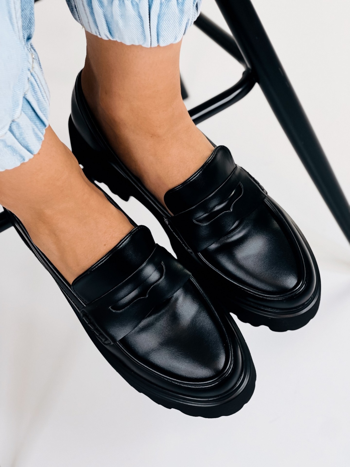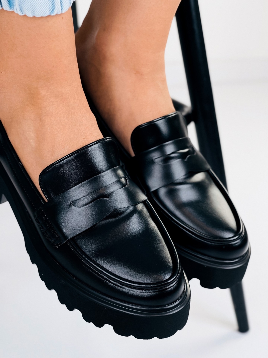 Dámske koženkové mokasíny na platforme OXI, ktoré Vám túto sezónu nesmú chýbať. Veľmi príjemná pohodlná stielka. Mokasíny, s ktorými vytvoríte mnoho nádherných štylizácií. Majú vysokú podrážku a podpätok, ktorý nám zdvihne postavu. Ak chcete získať trochu na výške, zvoľte si tieto mokasíny. Budú sa Vám skvelo hodiť k obyčajnej blúzke, ale aj k množstvo iným outfitom. Sú stvorené na ležérne i elegantné kombinácie k outfitu, ktorý milujete.
