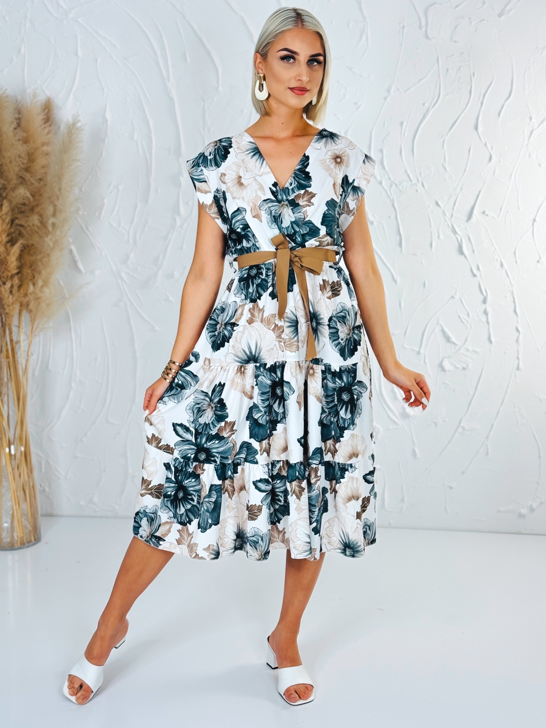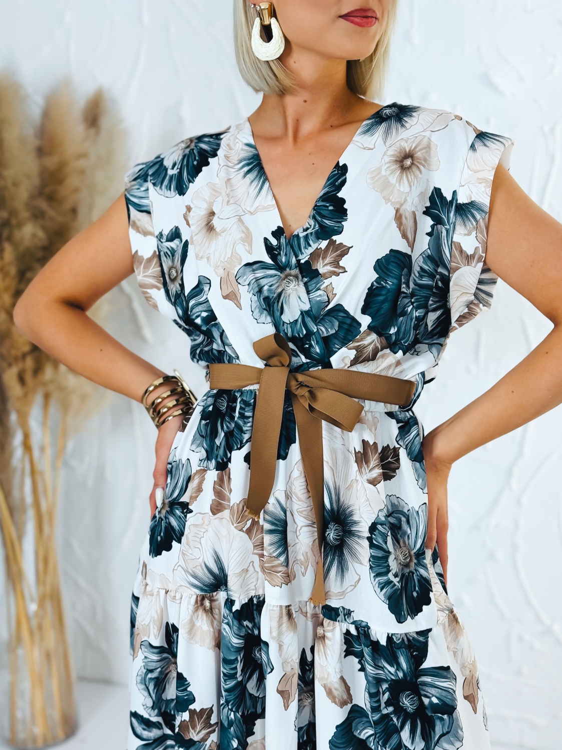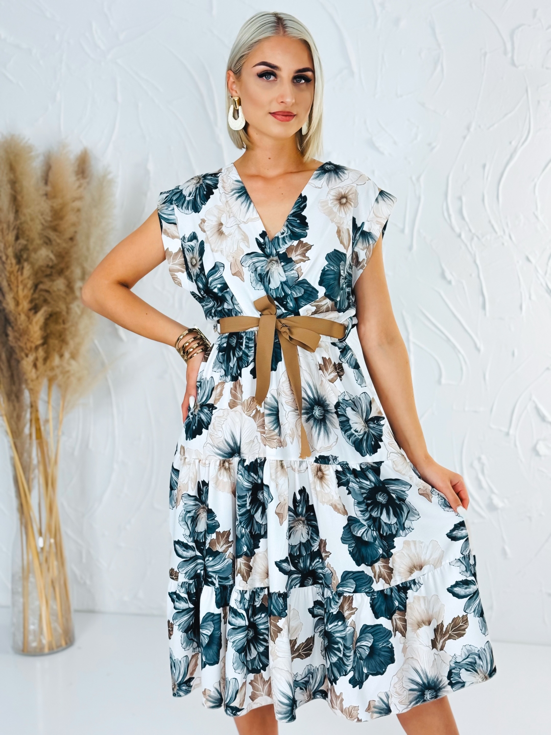 Dámske kvetované šaty áčkového strihu s hnedým opaskom a véčkovým výstrihom sú ideálnou voľbou na letné dni, dovolenky aj chvíle oddychu, keď sa chceš cítiť pohodlne a zároveň vyzerať štýlovo. Ich ženský dizajn spája ľahkosť, sviežosť a praktickosť v jednom kúsku, ktorý si rýchlo obľúbiš. Áčkový strih je obľúbený pre svoju schopnosť krásne lichotiť rôznym typom postavy. Jemne zvýrazní hornú časť siluety a voľne splýva smerom nadol, čím poskytuje pohodlie pri pohybe a príjemný pocit počas celého dňa. Hnedý opasok zvýrazní pás a dodáva šatám upravený a harmonický vzhľad. Véčkový výstrih pôsobí elegantne a žensky, opticky predlžuje krk a dodáva celému modelu jemnosť. Kvetovaný vzor prináša romantický a letný nádych, vďaka čomu sú šaty perfektné na prechádzky pri mori, večerné posedenia, výlety, záhradné oslavy alebo bežné nosenie počas teplých dní.